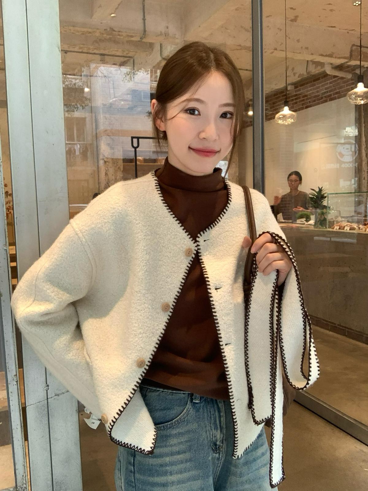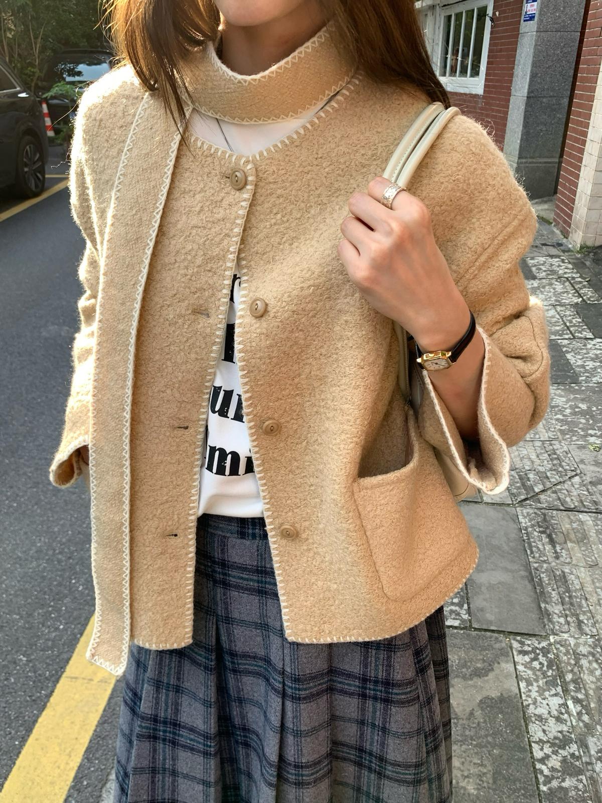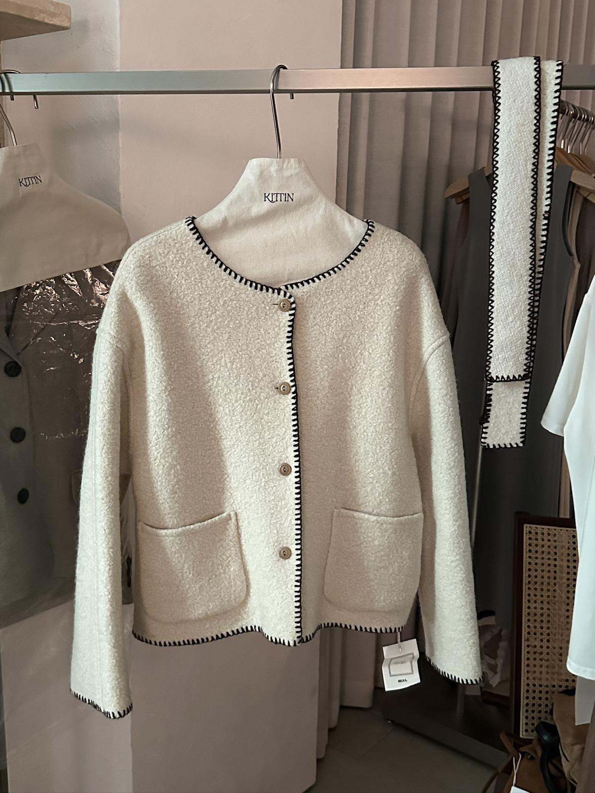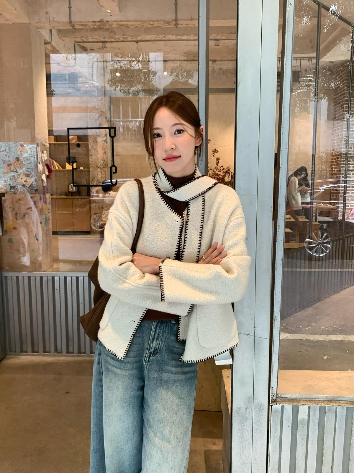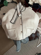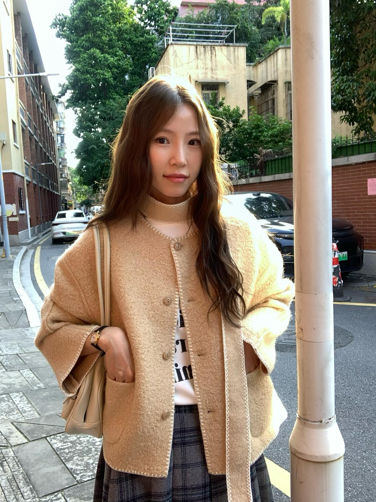 3. 【C7456】韓系小香風肌理感毛呢料短外套(配飄帶)
