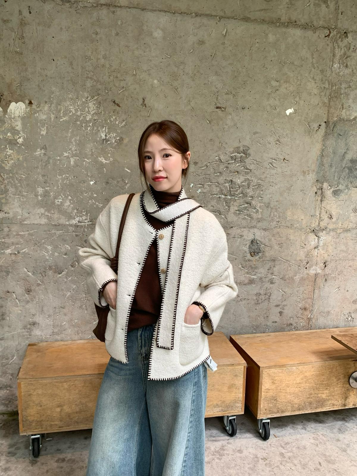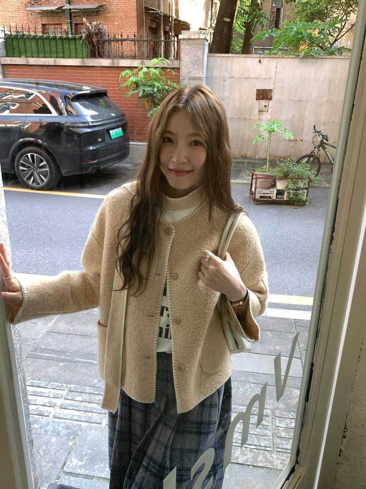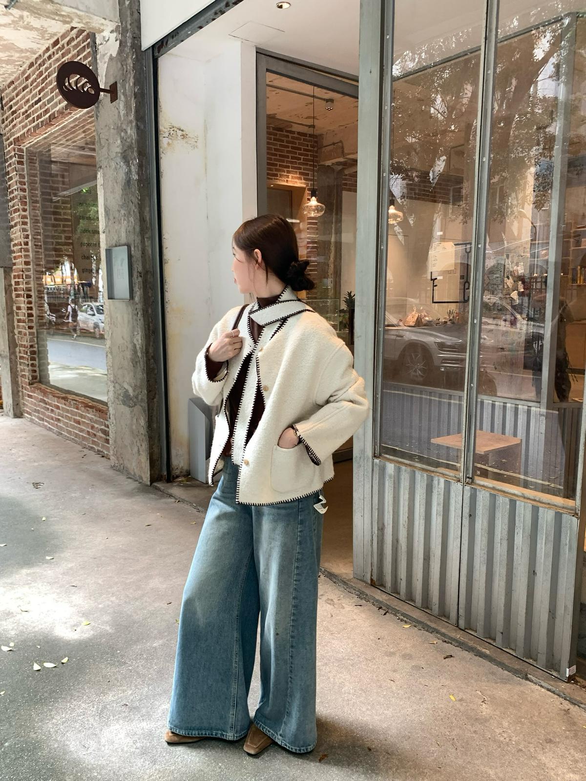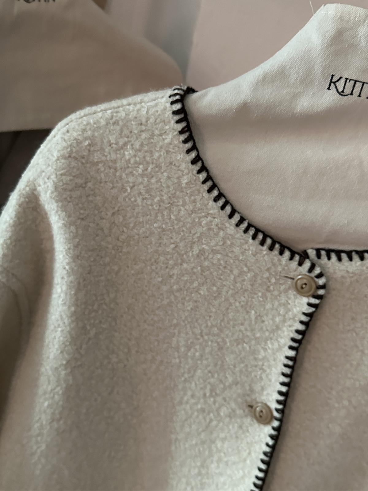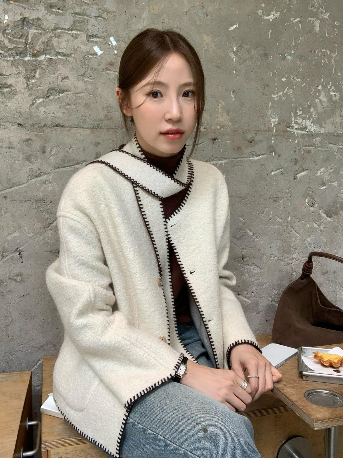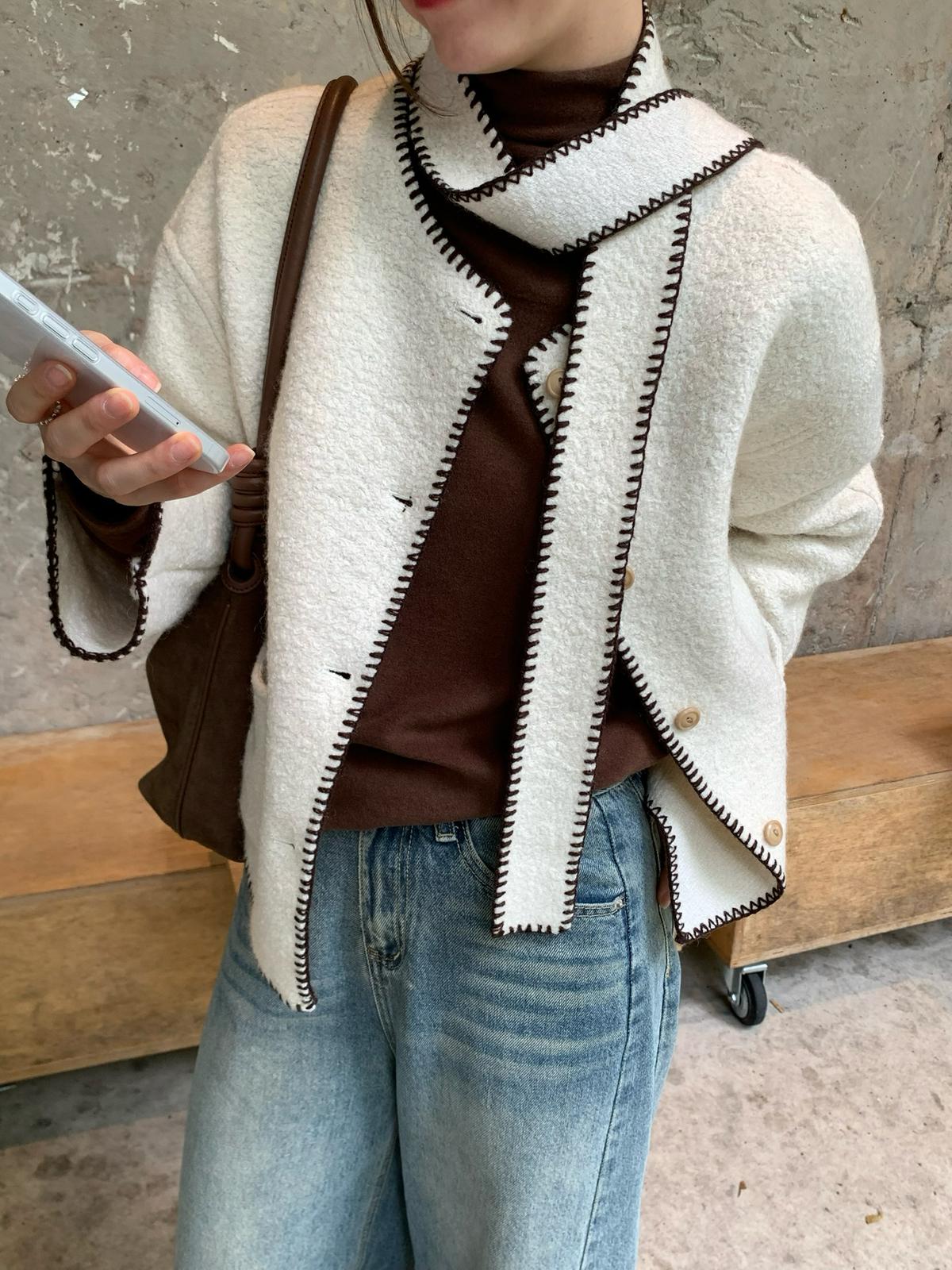 3. 【C7456】韓系小香風肌理感毛呢料短外套(配飄帶)