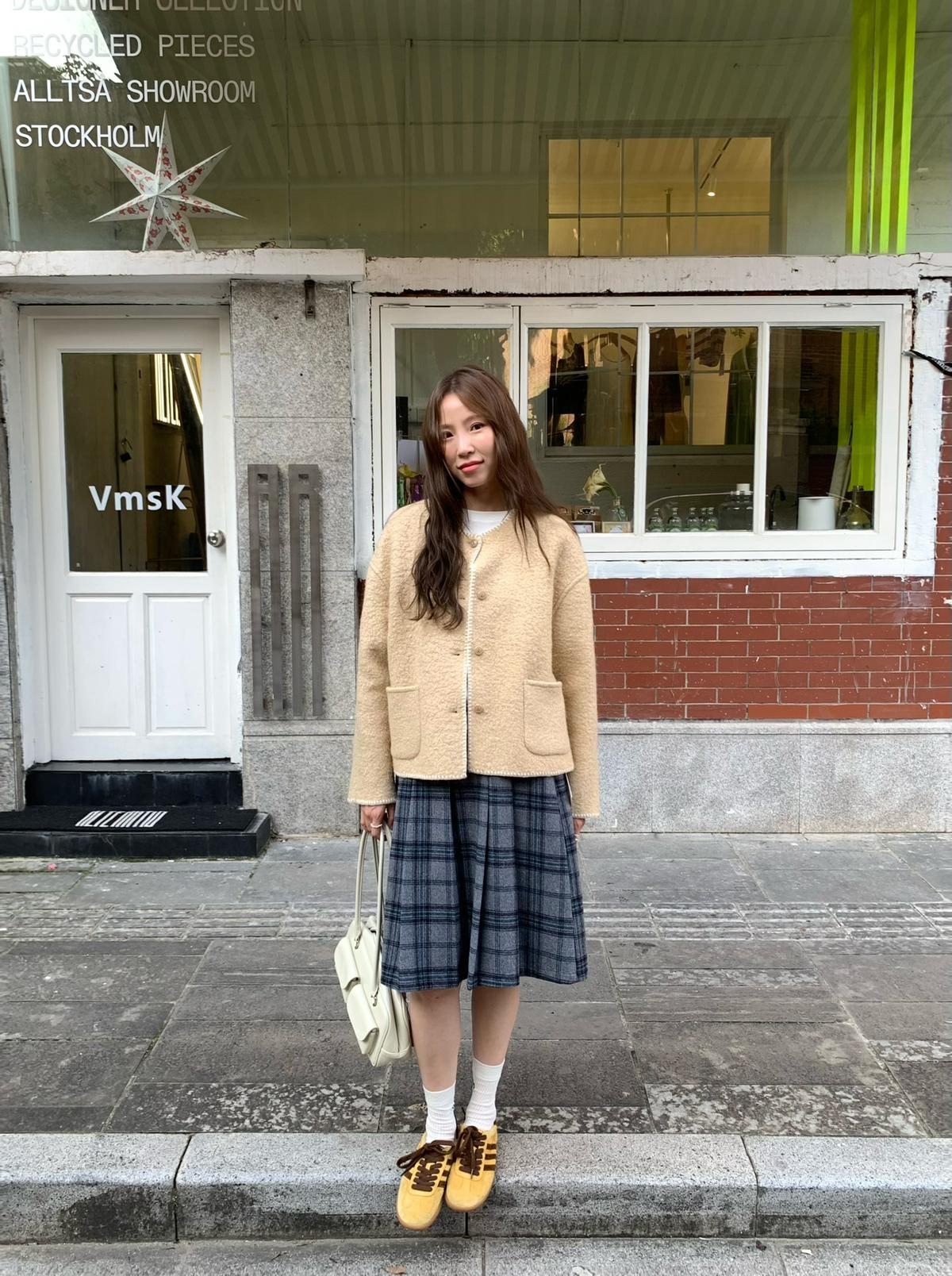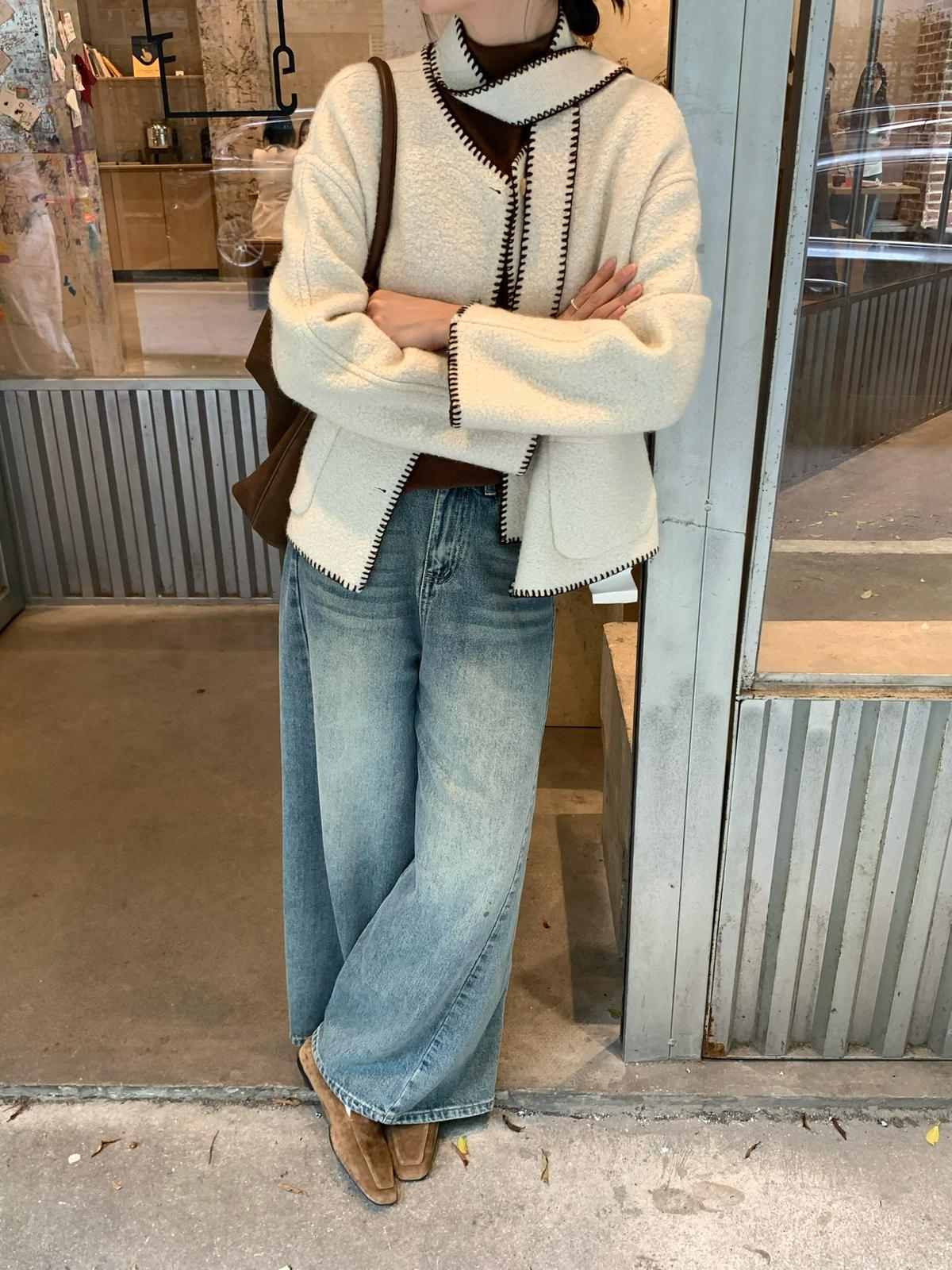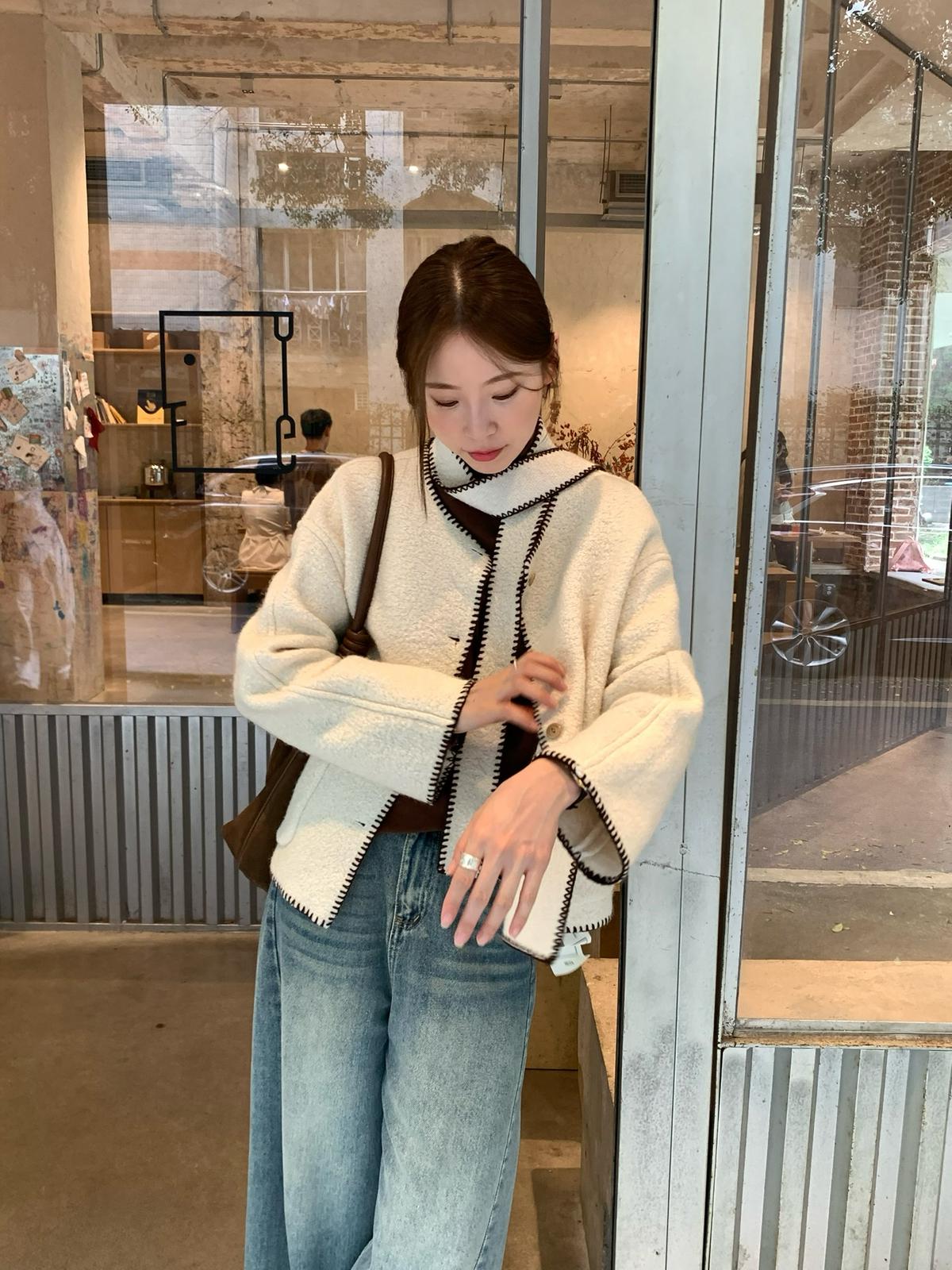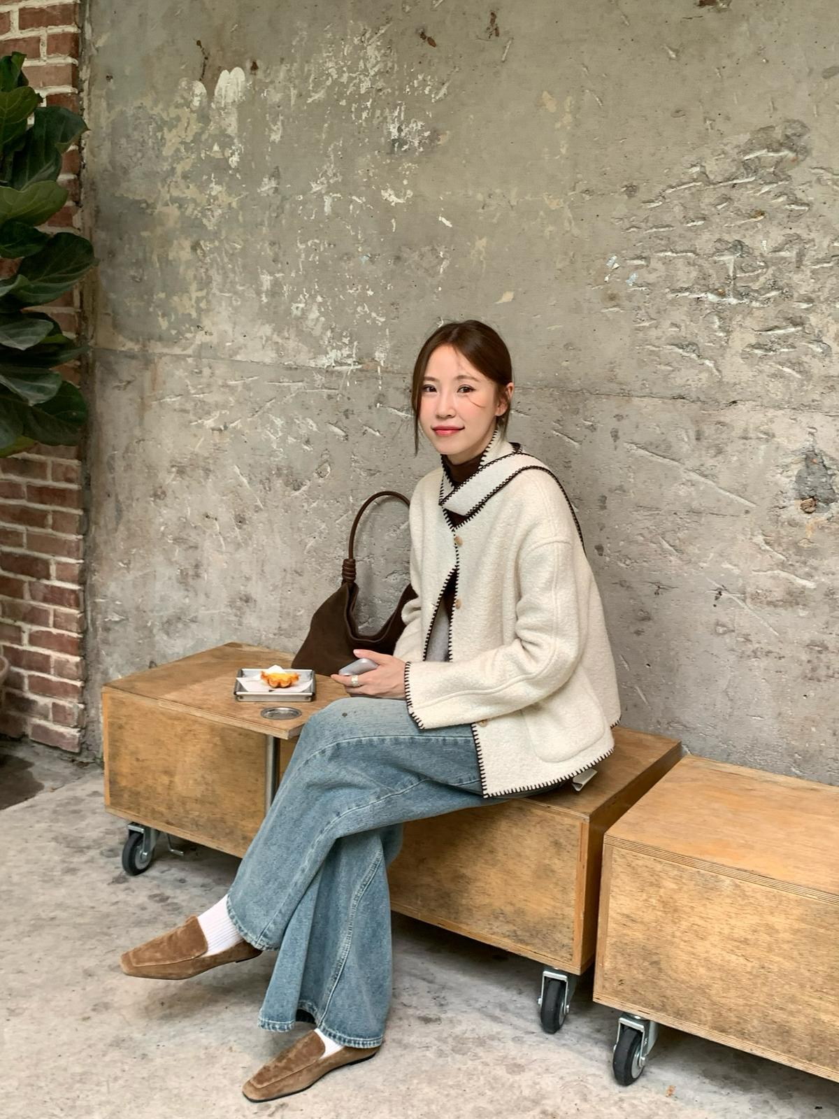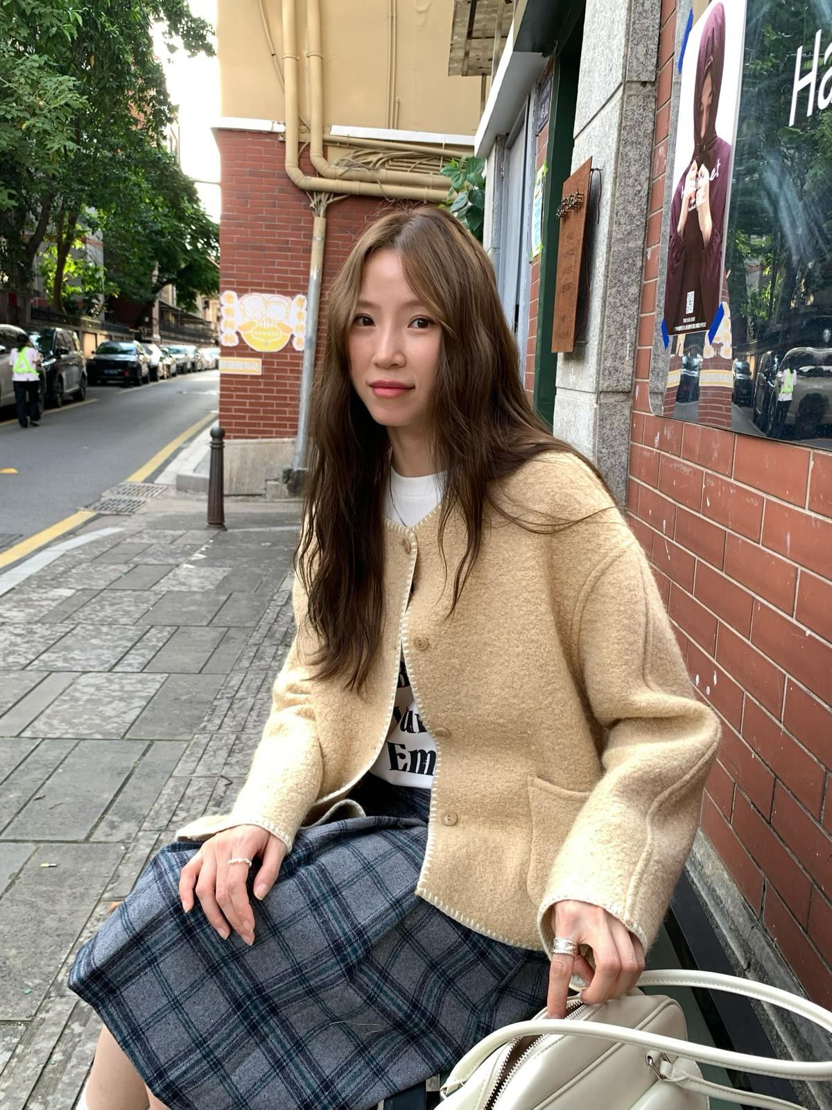 3. 【C7456】韓系小香風肌理感毛呢料短外套(配飄帶)