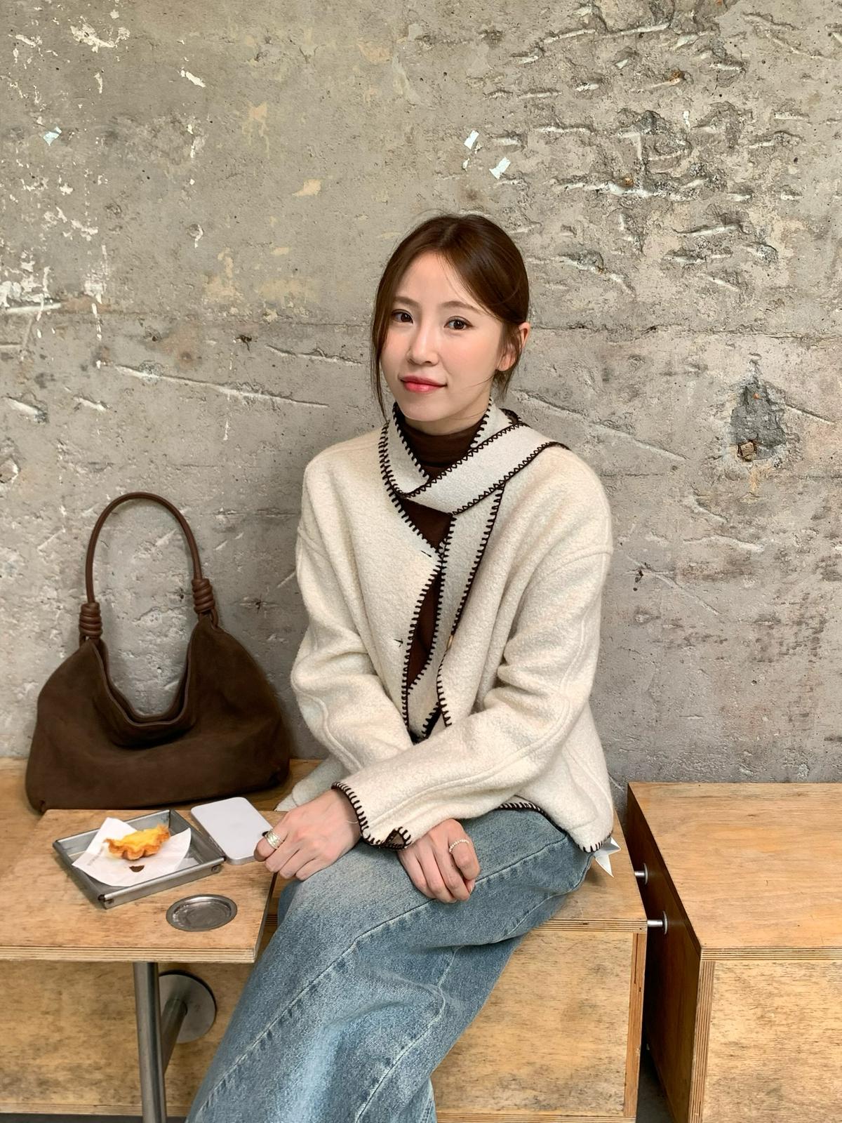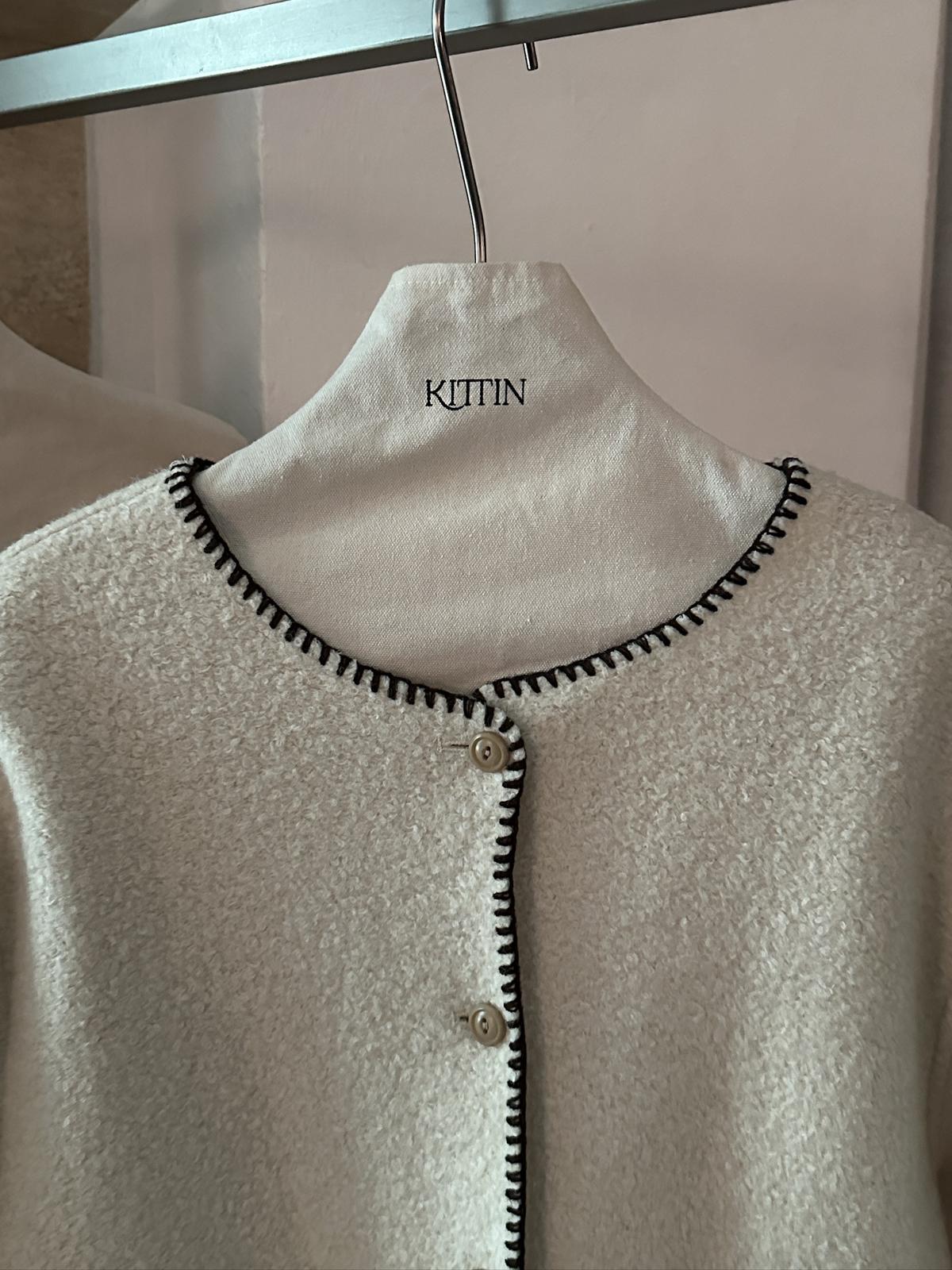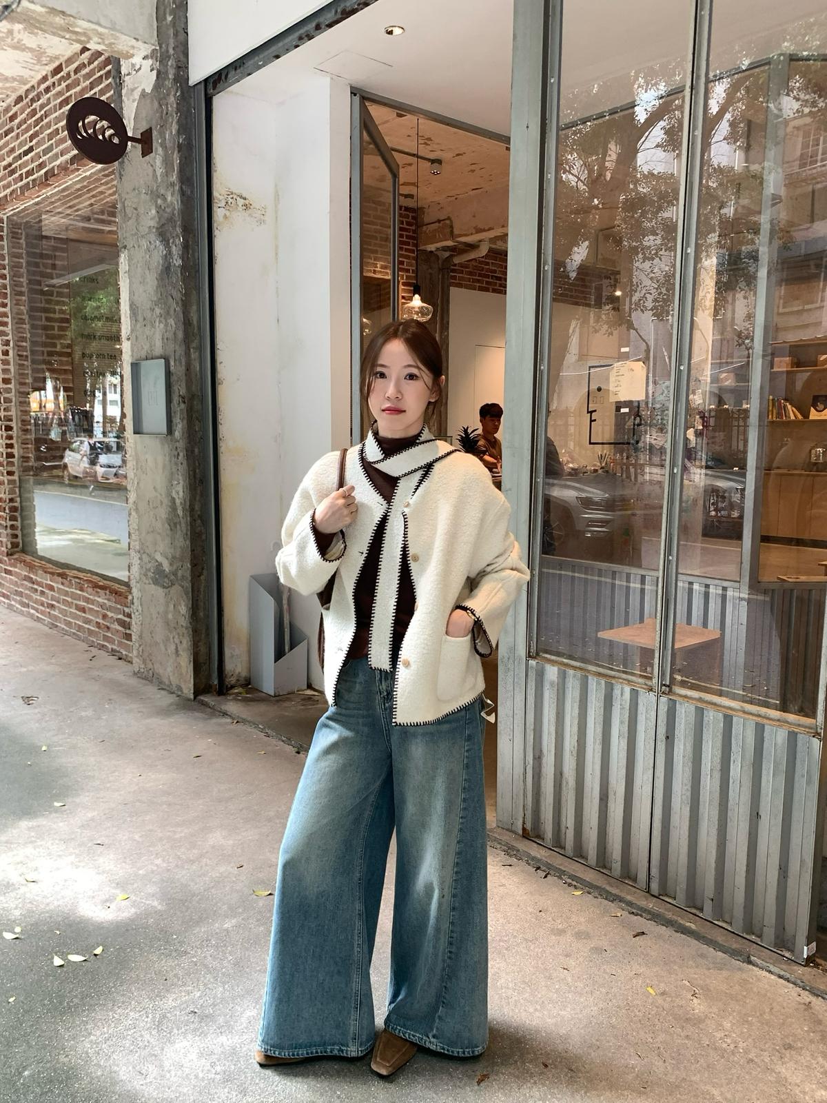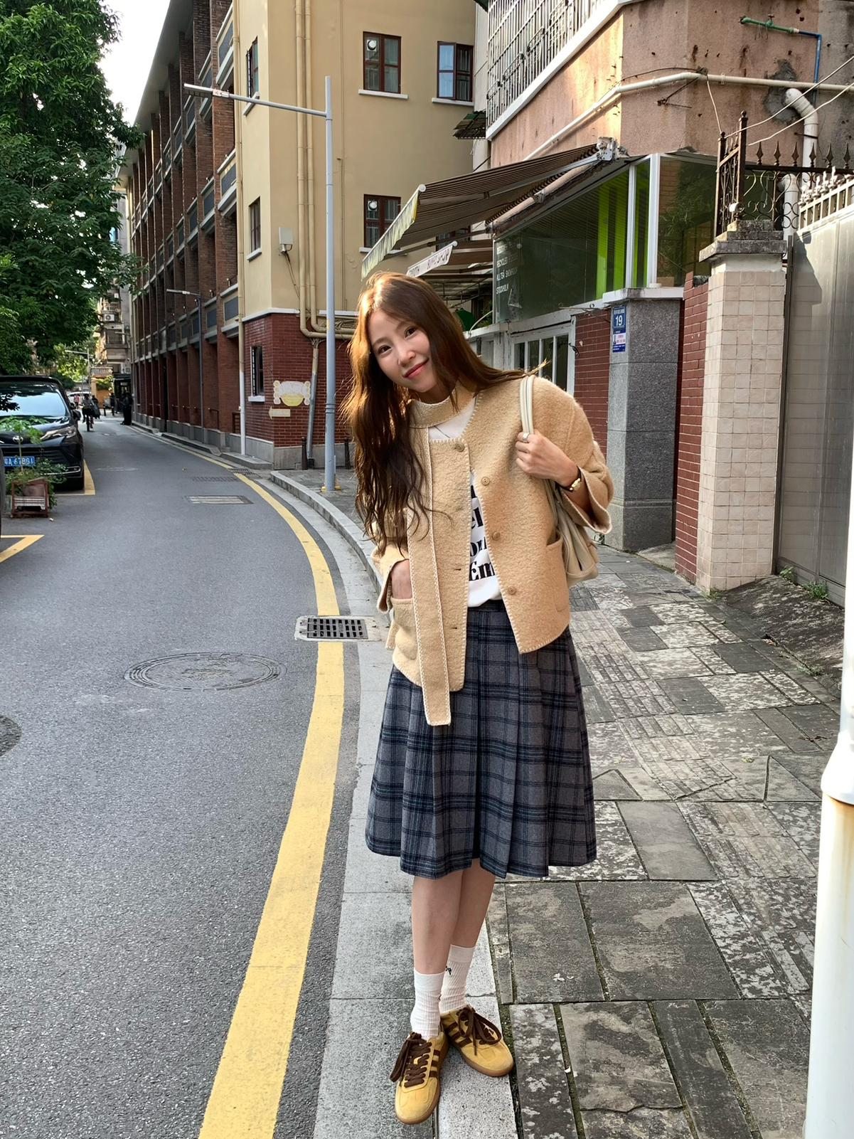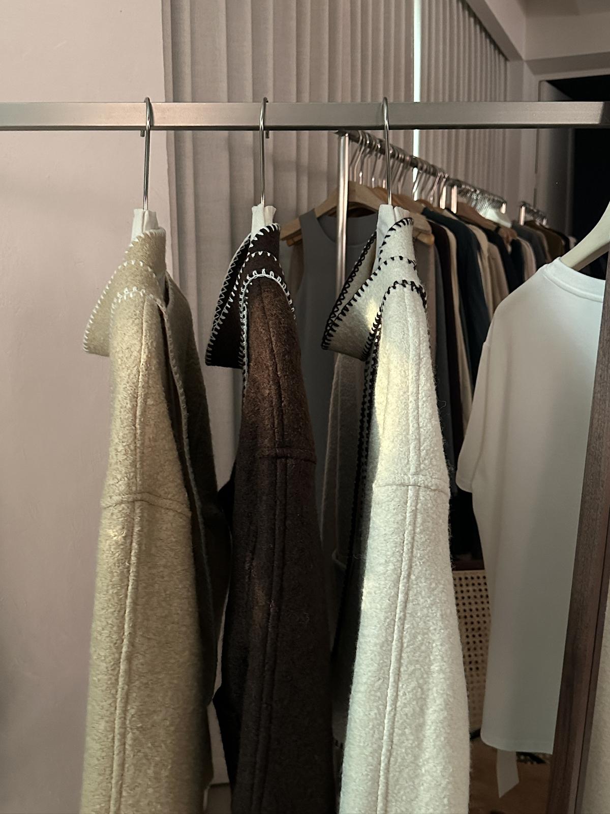 3. 【C7456】韓系小香風肌理感毛呢料短外套(配飄帶)