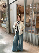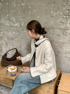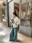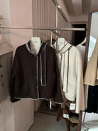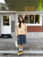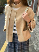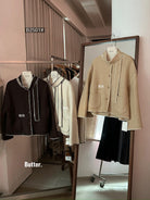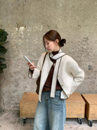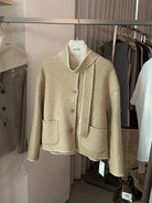 【C7456】韓系小香風肌理感毛呢料短外套(配飄帶)
