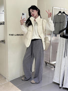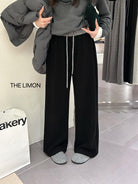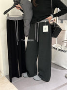 【C7463】羊絨高腰顯瘦撞色拼接休閒褲