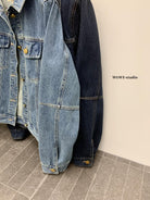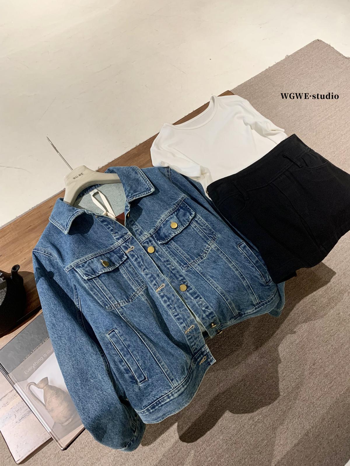 【C7469】復古休閒做舊設計感顯瘦牛仔外套