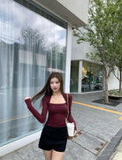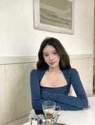 【C7477】簡約時尚設計感內搭休閒長袖T恤