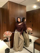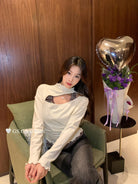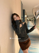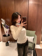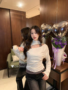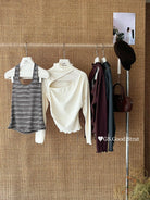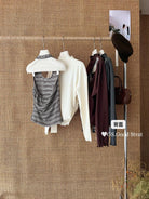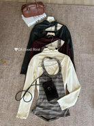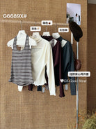 3. 【C7487】解構時髦元素*爆hot!秋季高階雅痞鏤空設計感小衫+條紋背心套裝