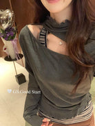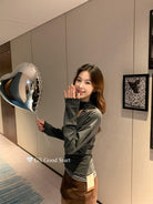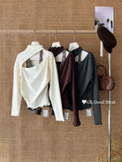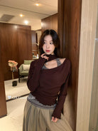 【C7487】解構時髦元素*爆hot!秋季高階雅痞鏤空設計感小衫+條紋背心套裝