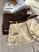 【C7488】女團長腿攻略~愛慘了!秋冬辣妹工裝口袋設計感休閒半身裙(配腰帶)