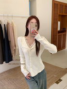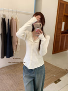 【C7489】大客必拿!完美疊穿內搭·木耳邊翻領蕾絲拼接針織開衫