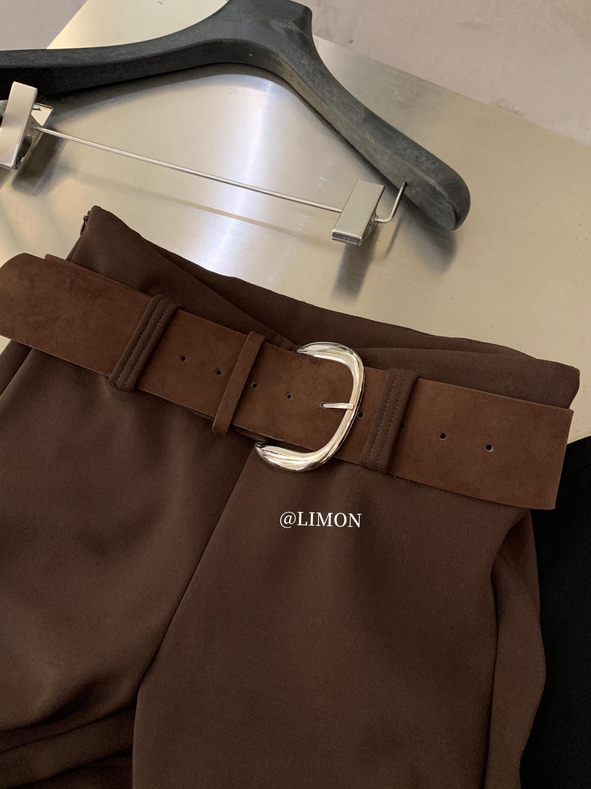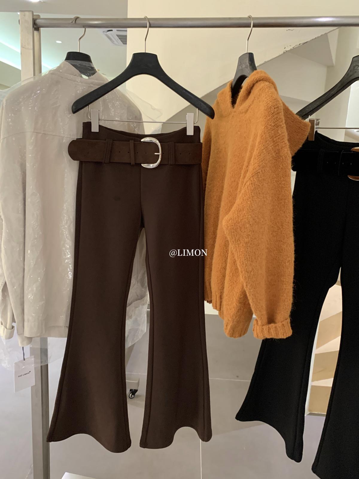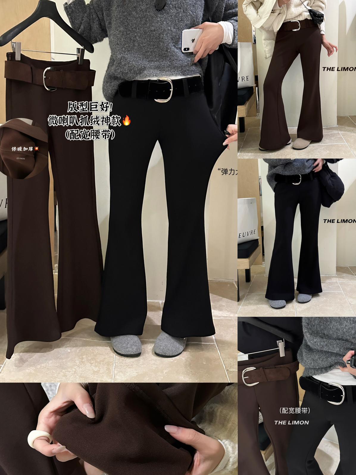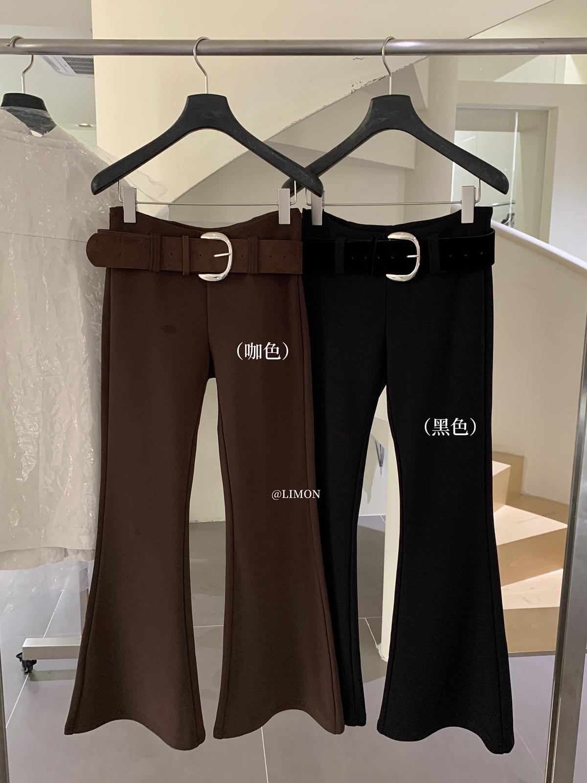 【C7498】簡約氣質微喇高彈抓絨休閒褲(配腰帶)