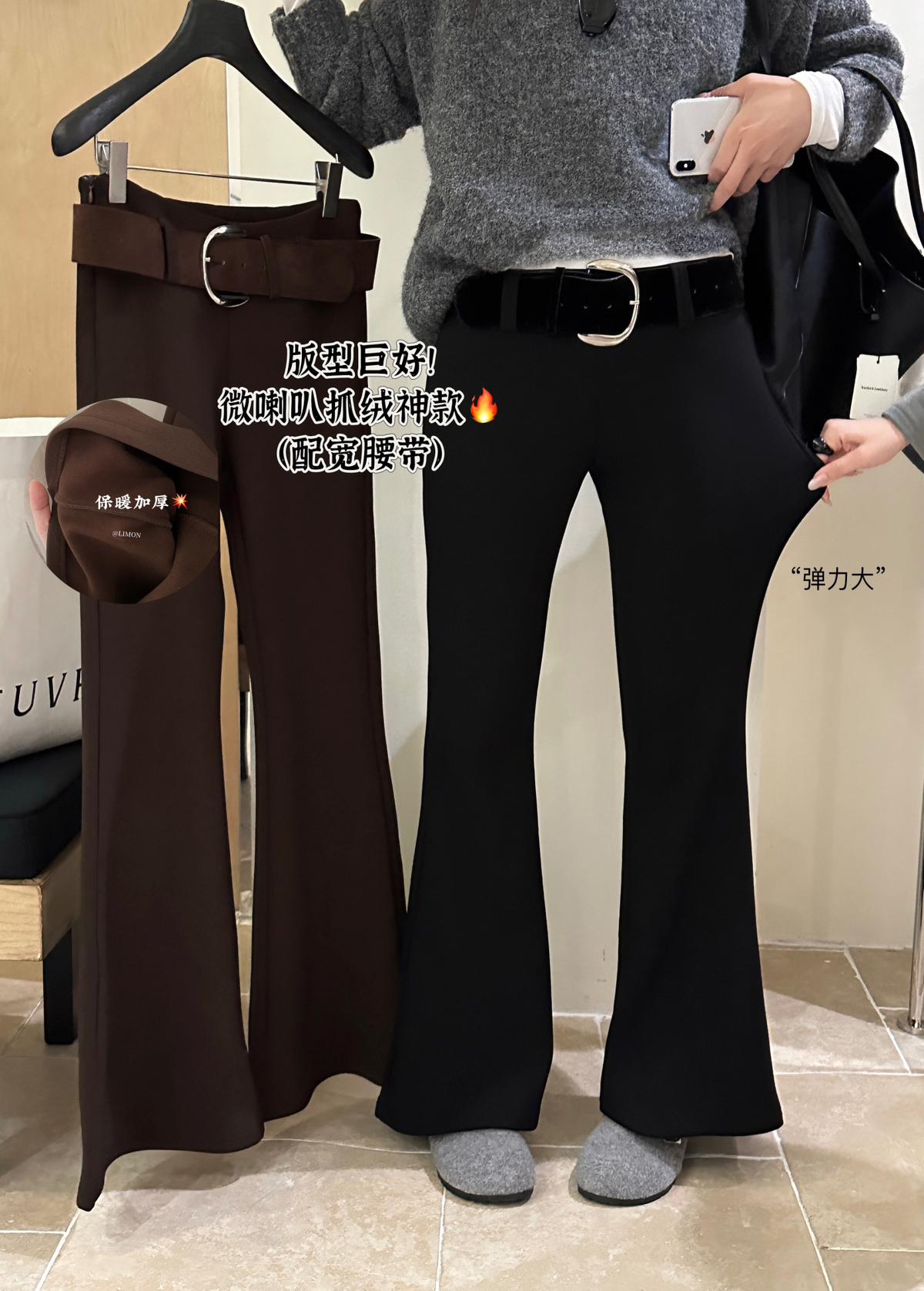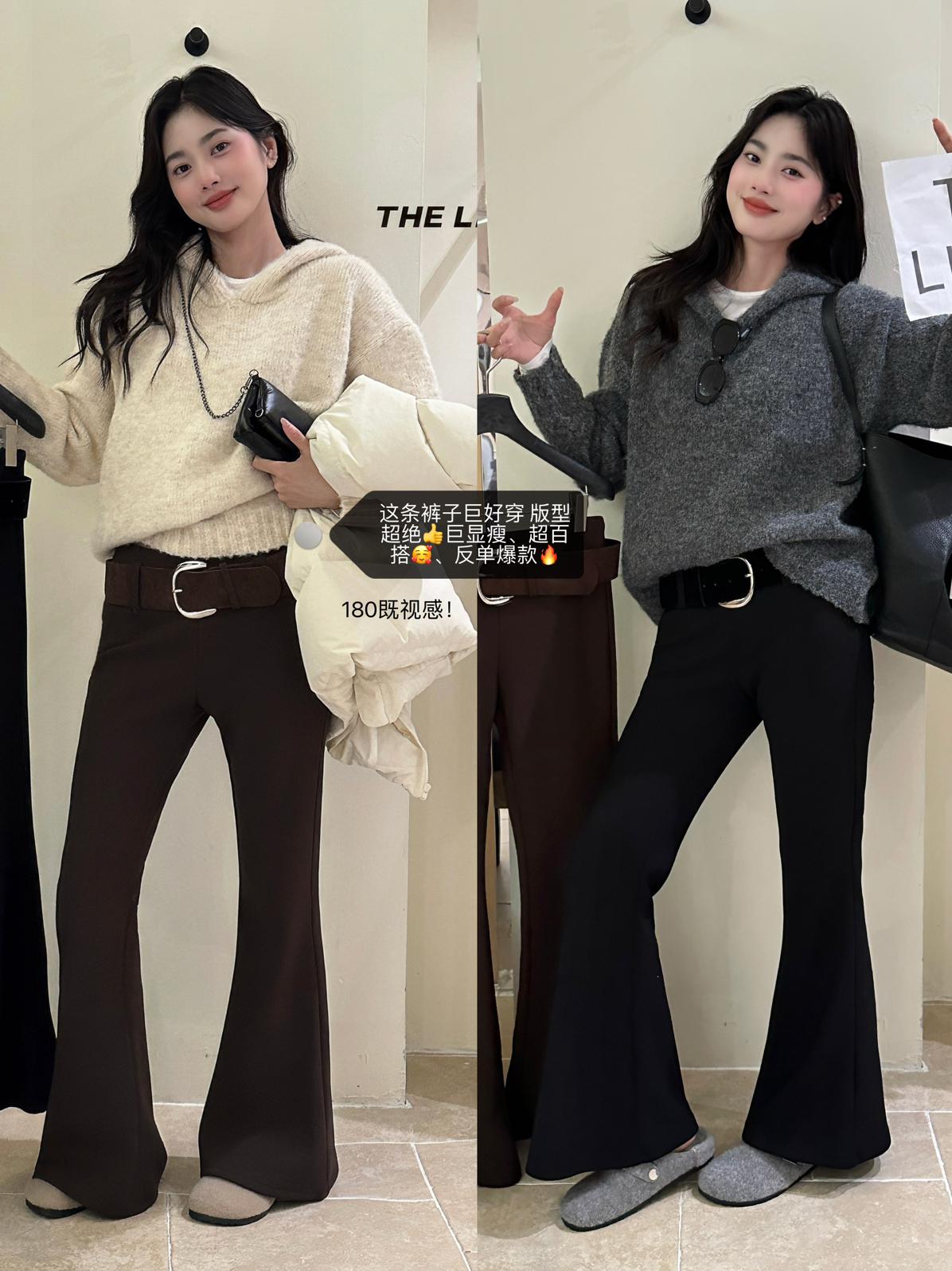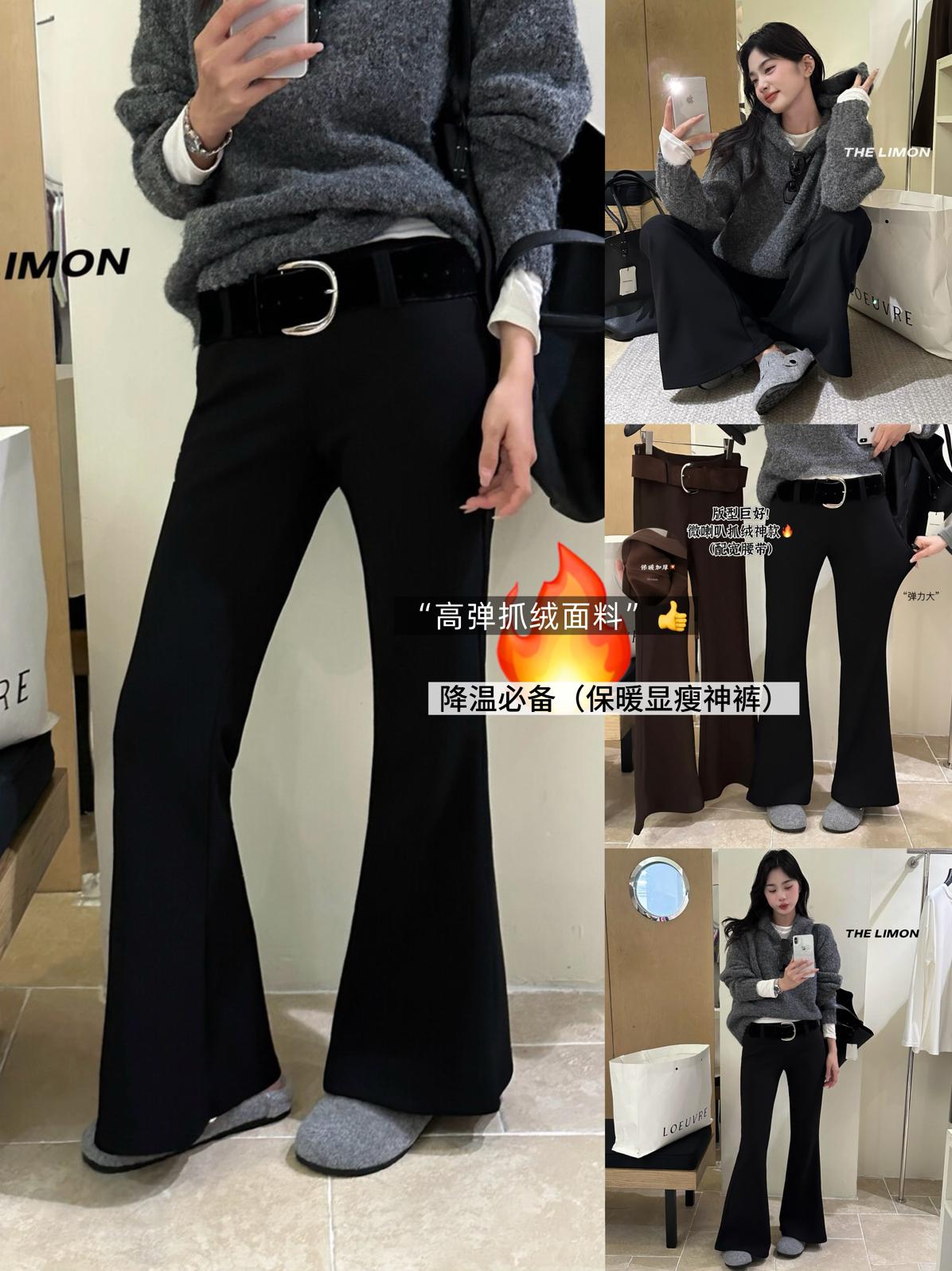 【C7498】簡約氣質微喇高彈抓絨休閒褲(配腰帶)