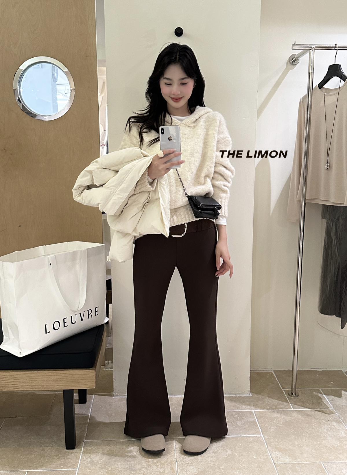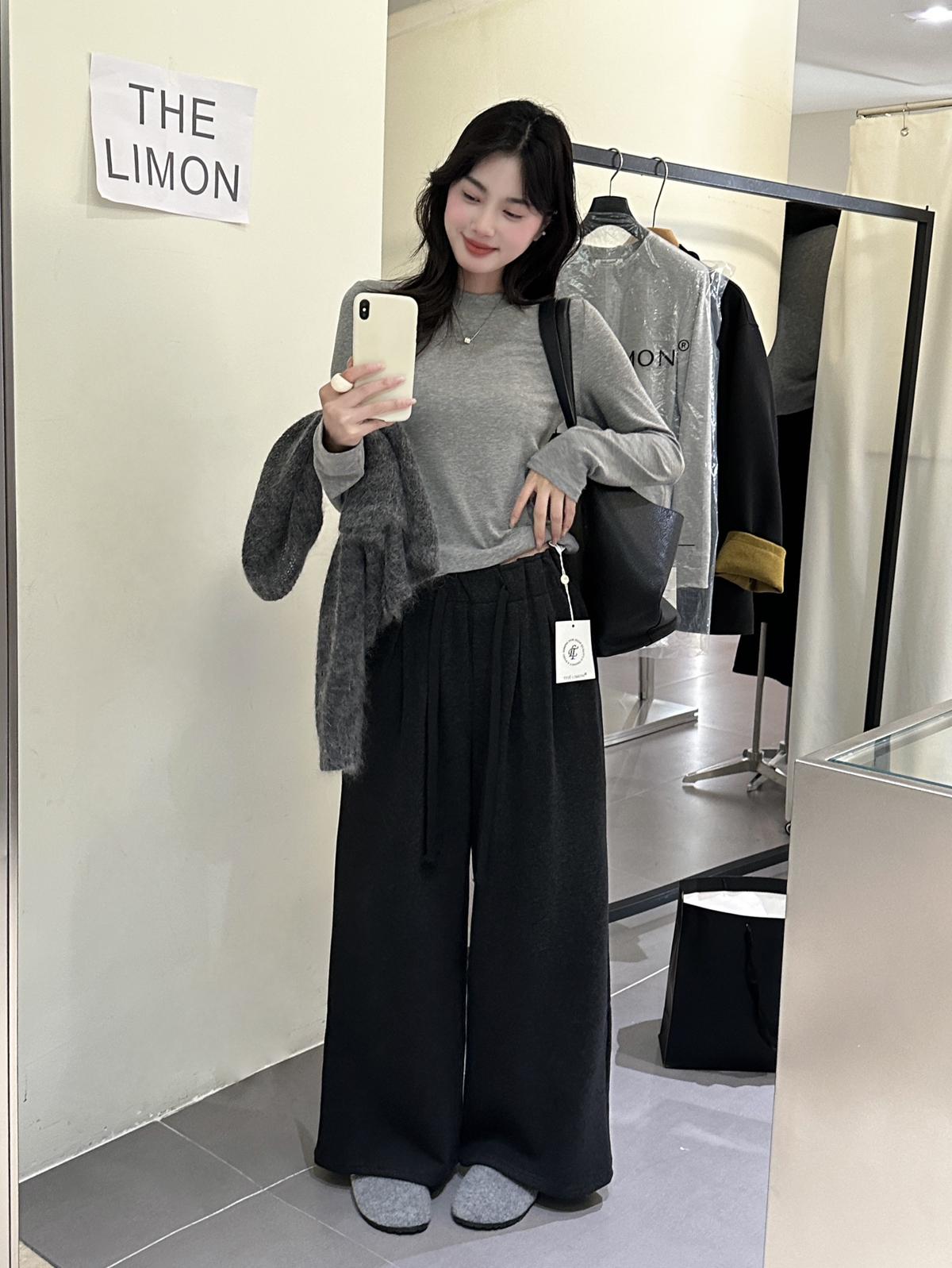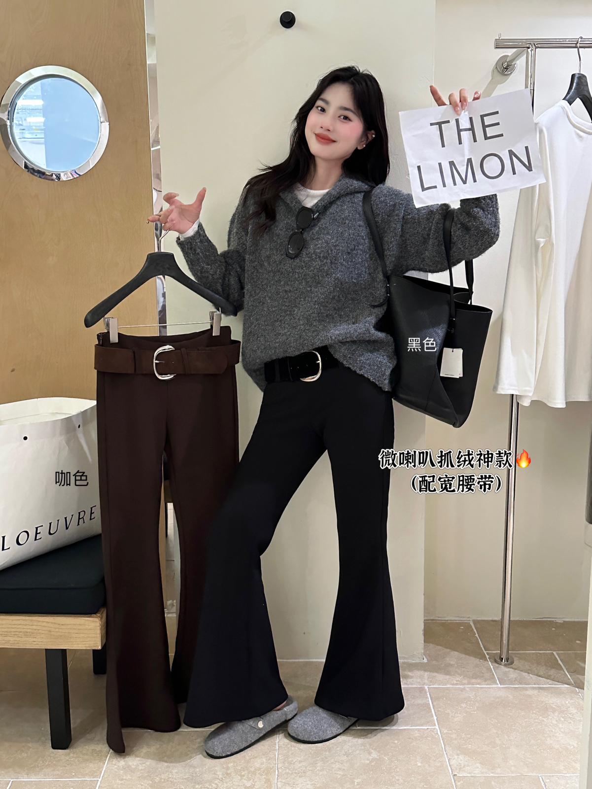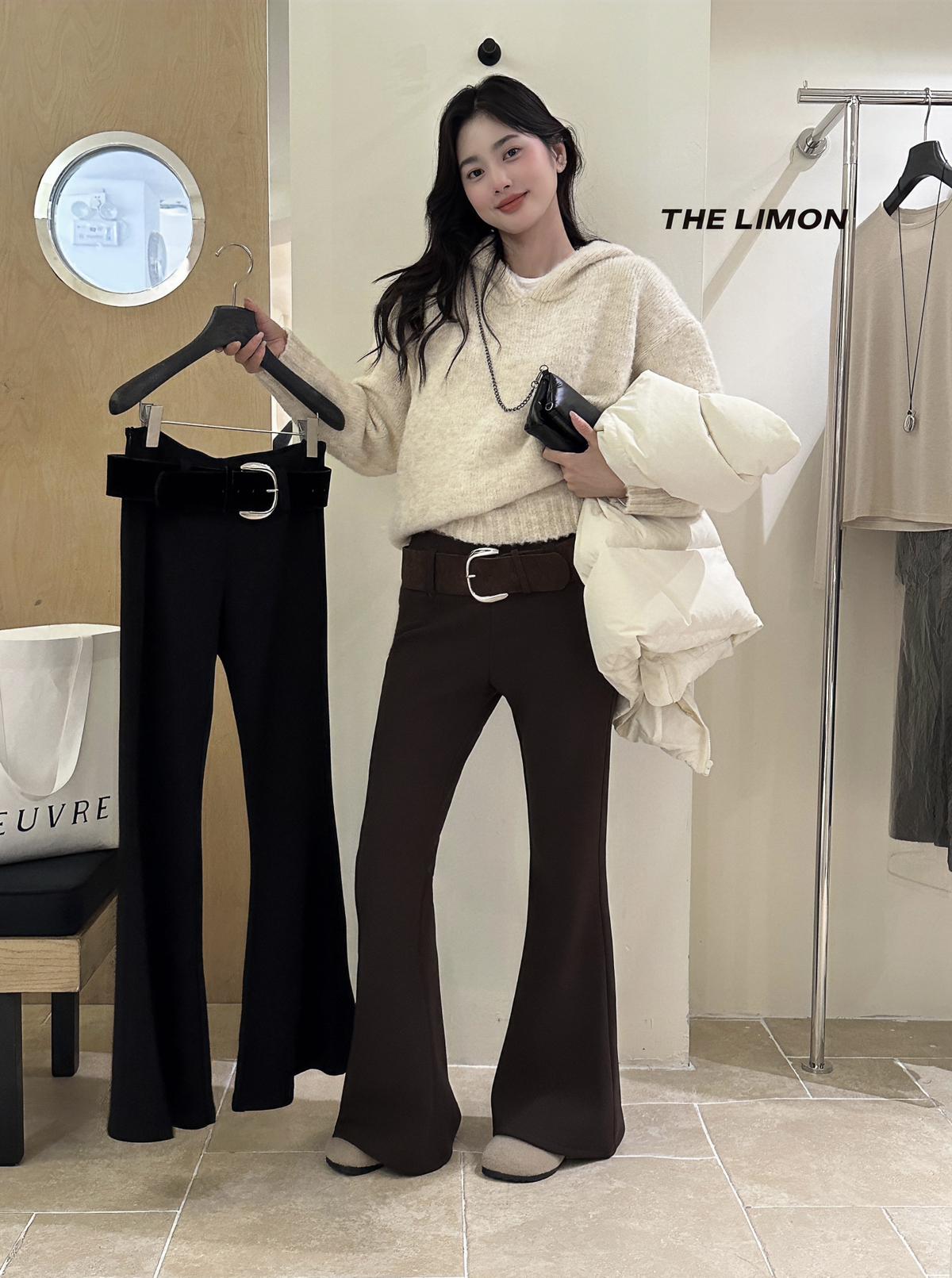 【C7498】簡約氣質微喇高彈抓絨休閒褲(配腰帶)