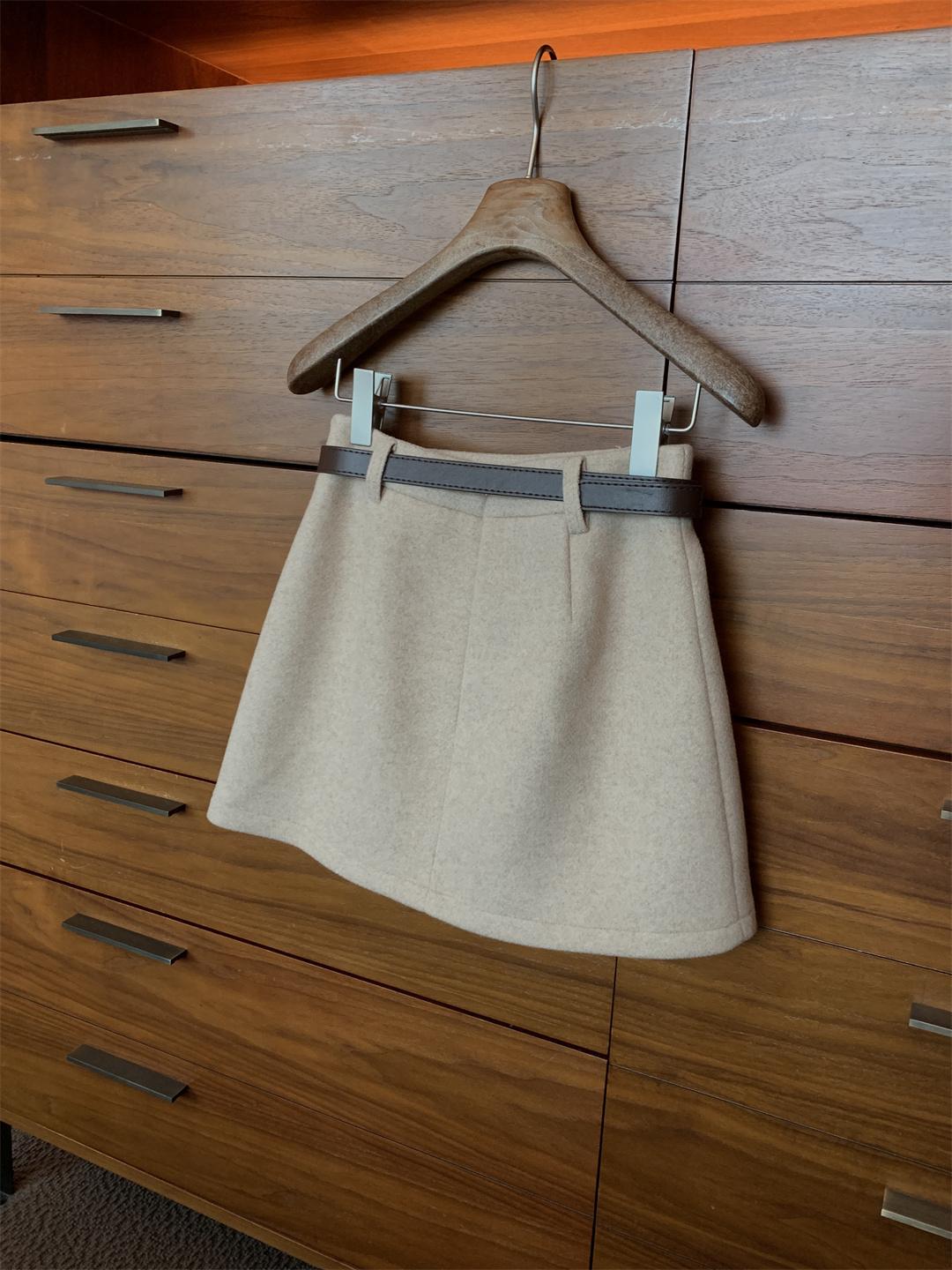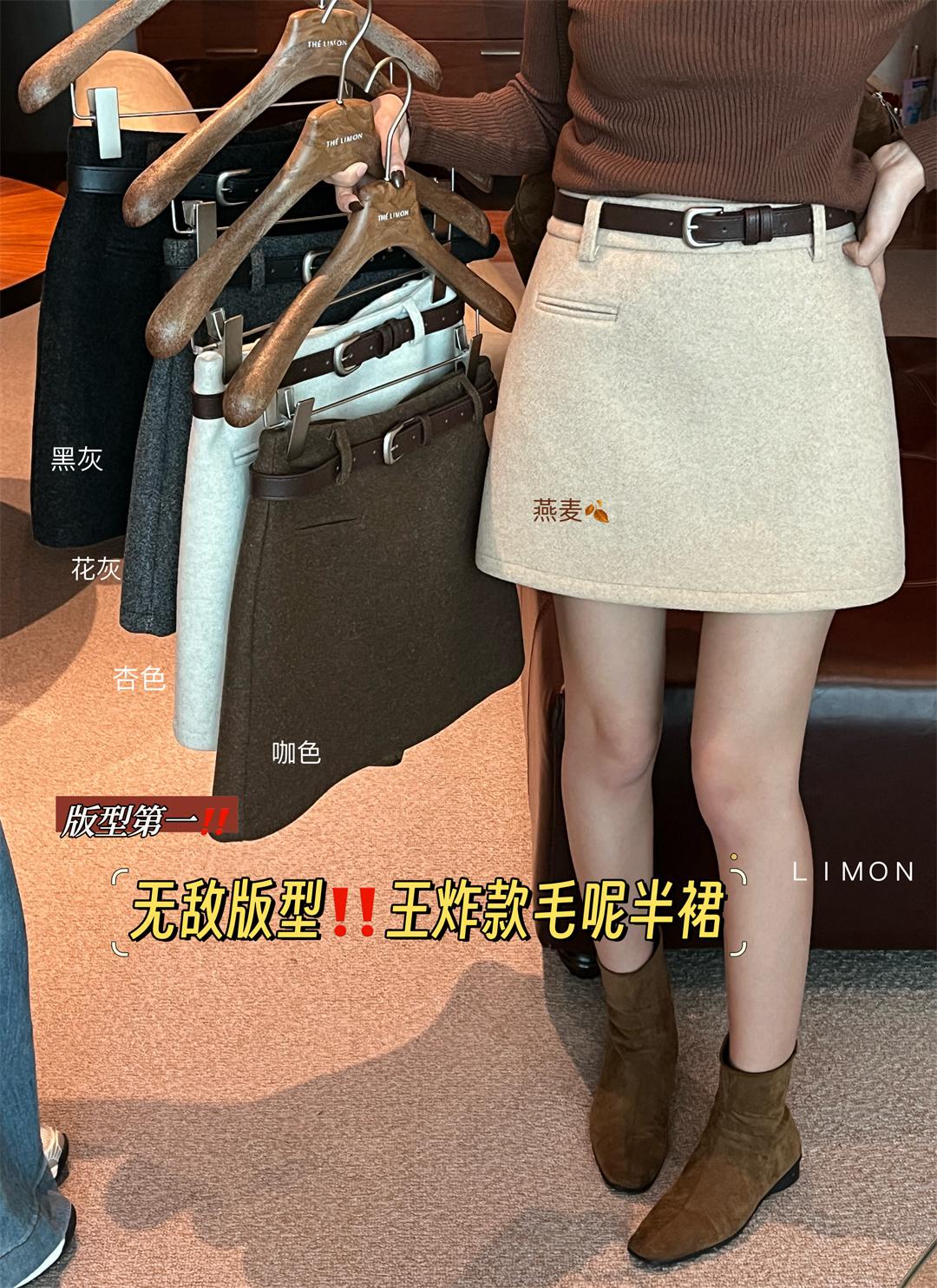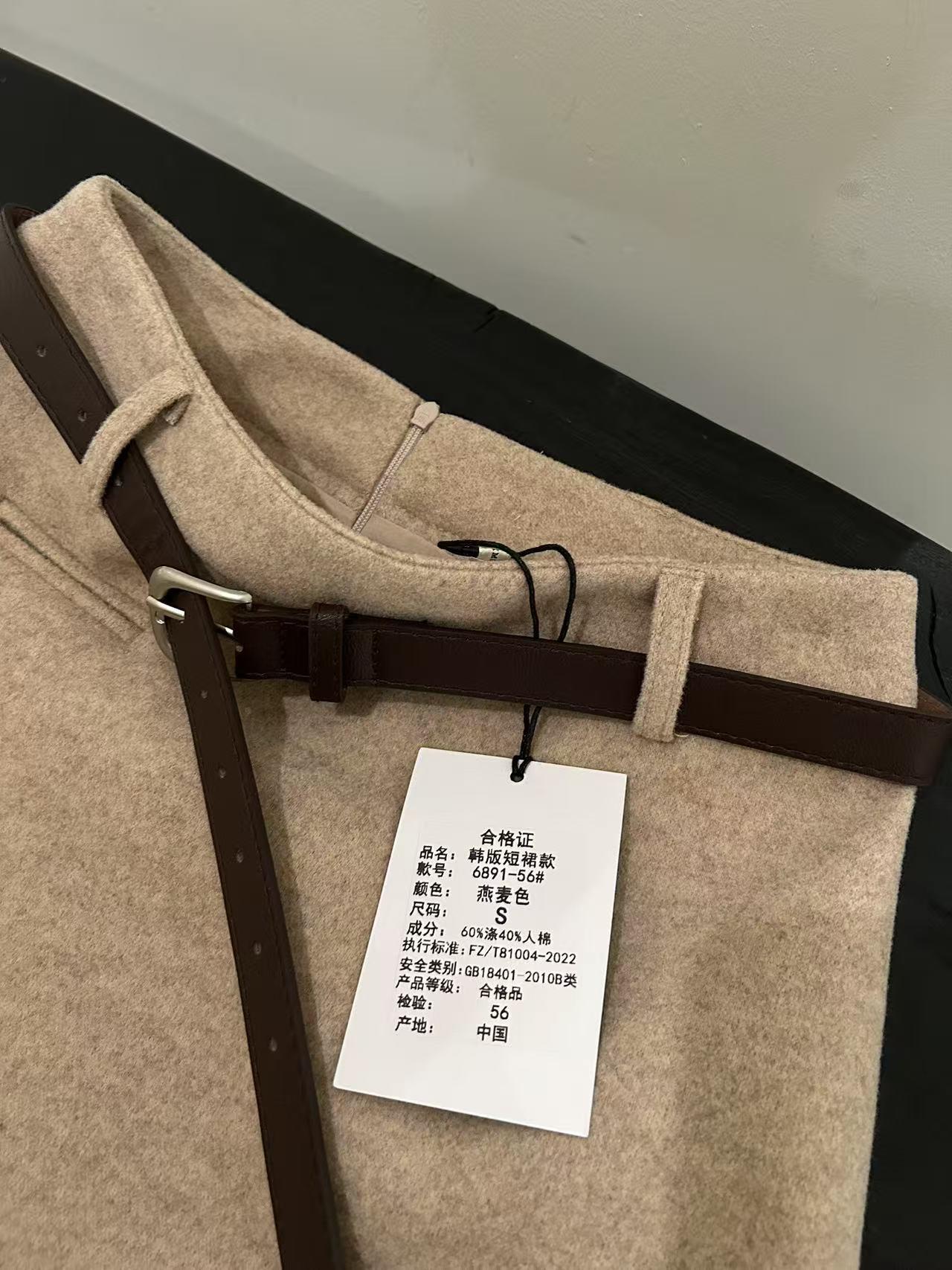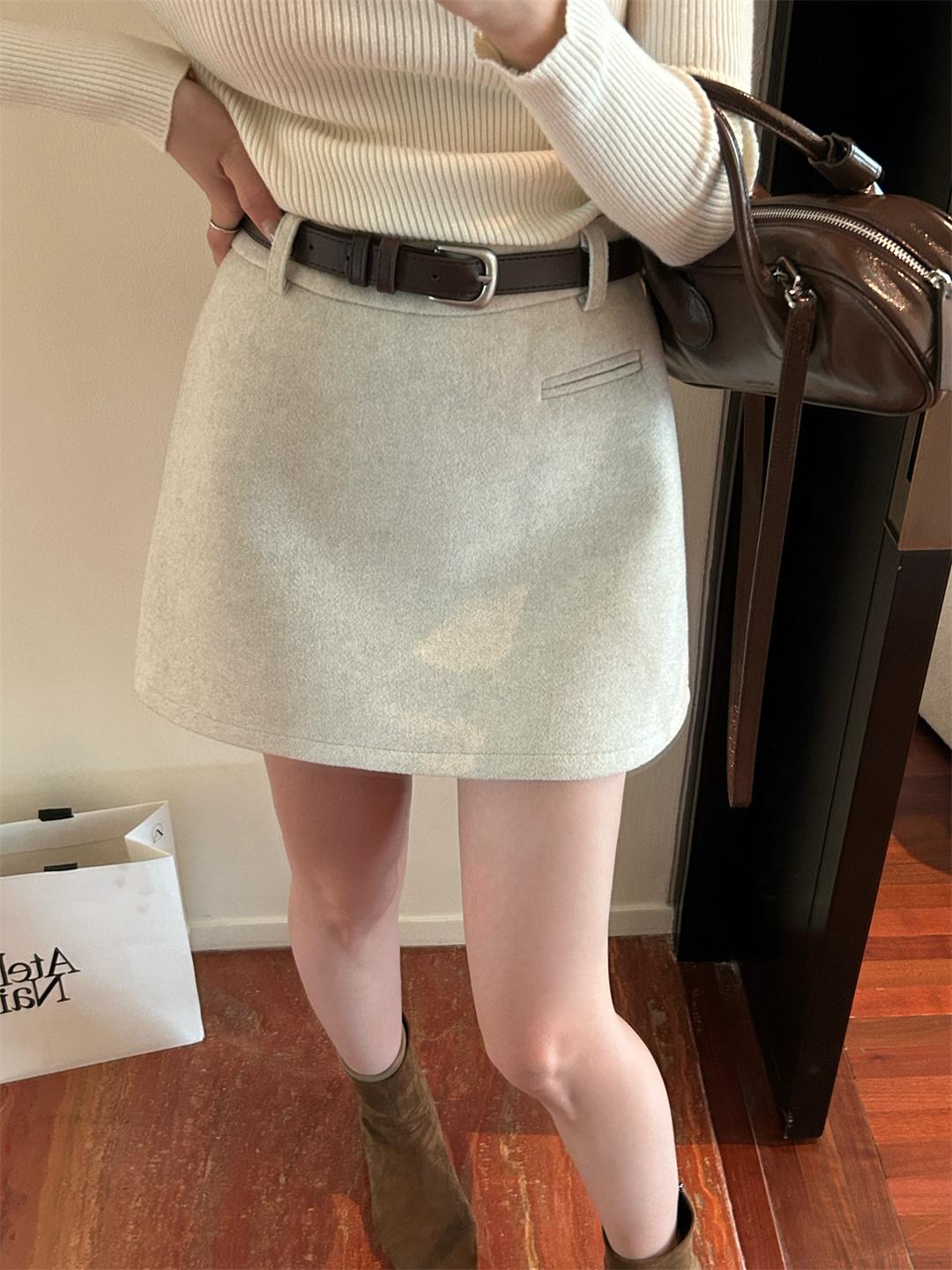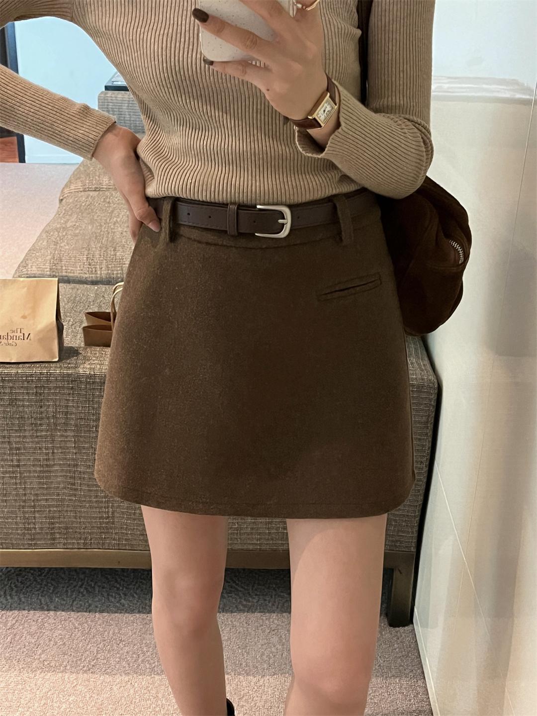 【C7496】王炸款毛呢半裙!高級感高腰顯瘦半身裙(配腰帶)