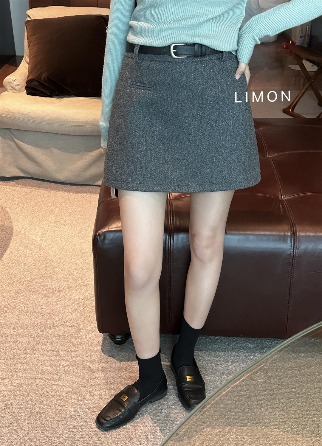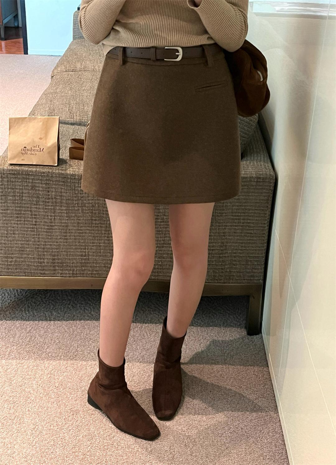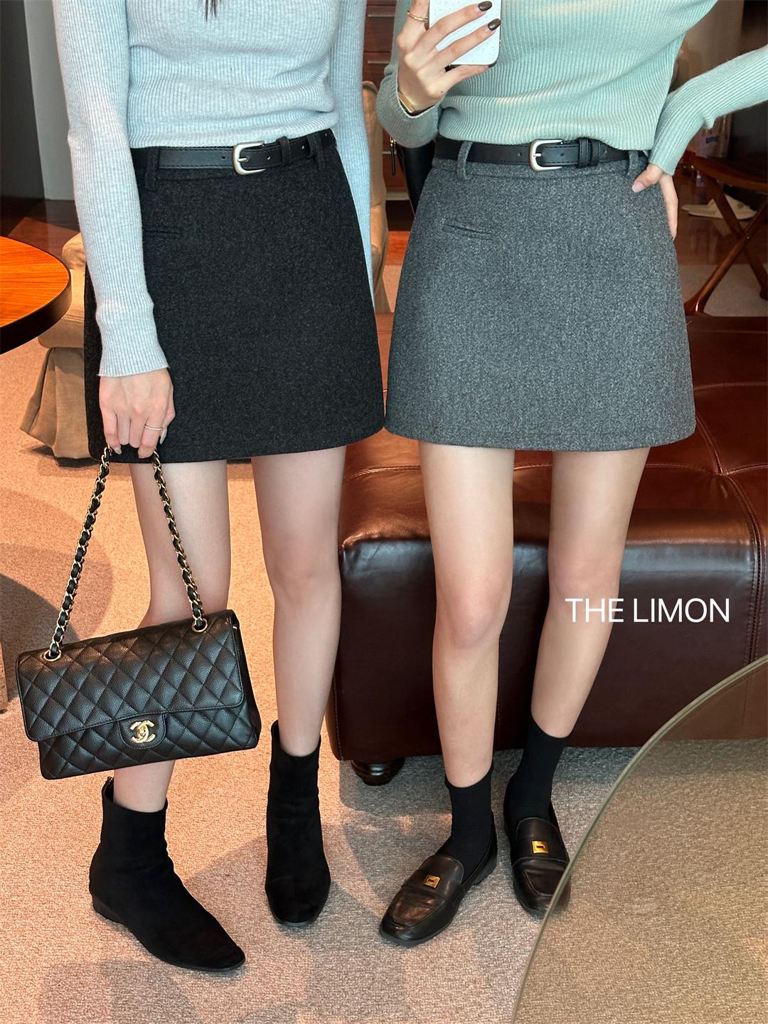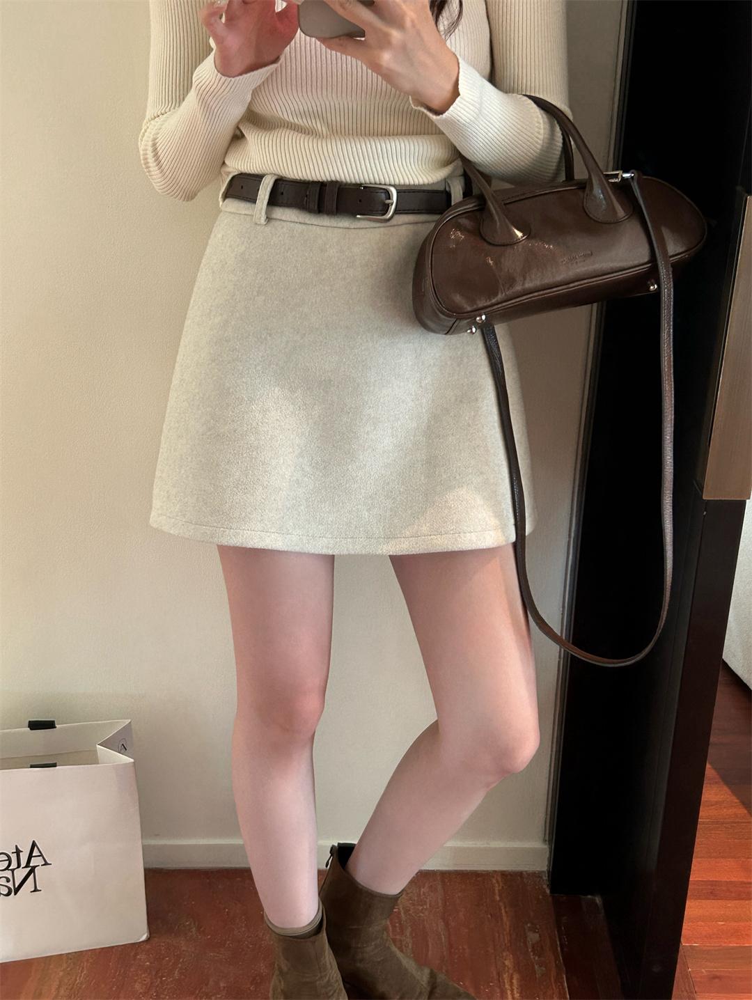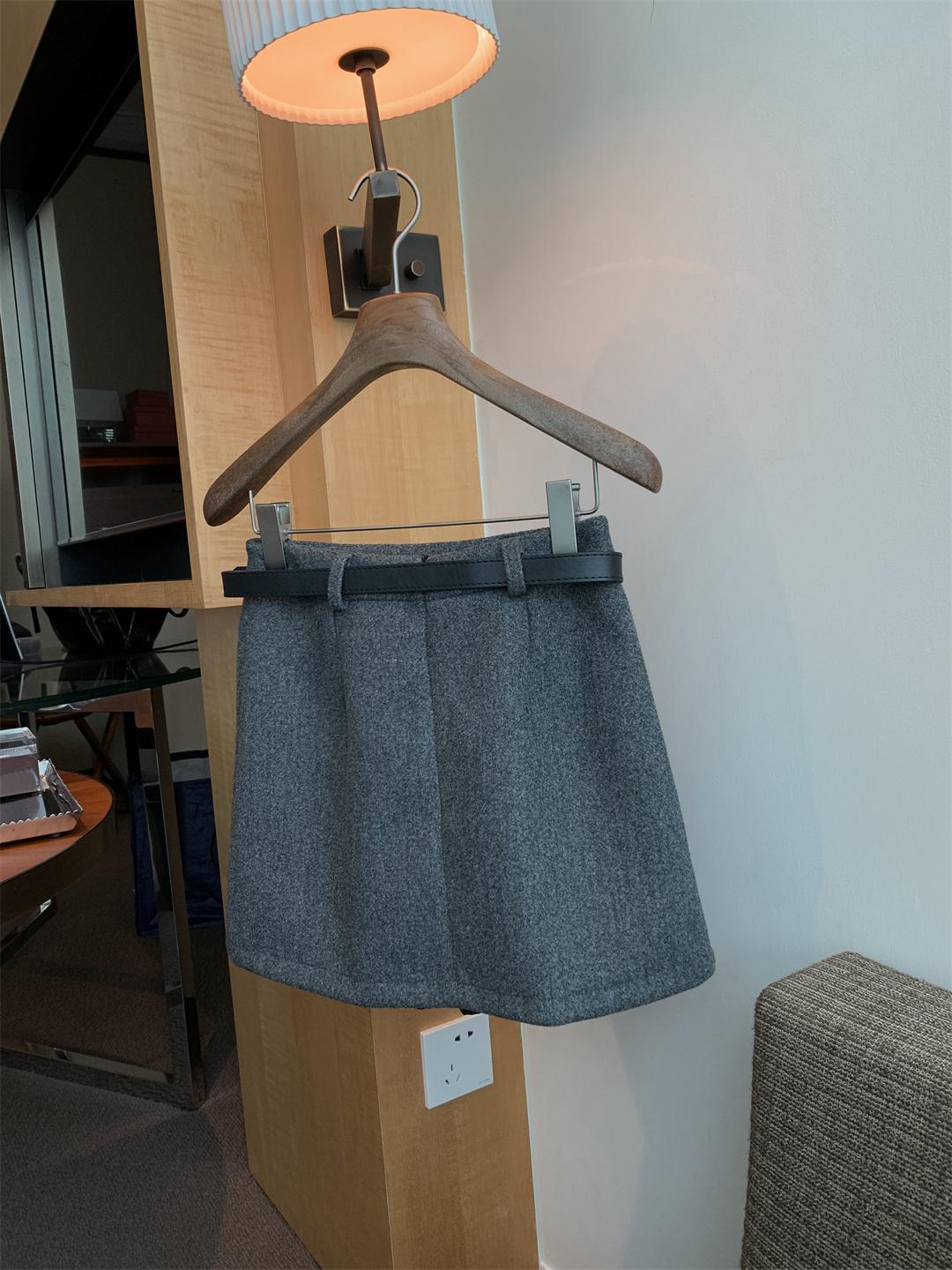 【C7496】王炸款毛呢半裙!高級感高腰顯瘦半身裙(配腰帶)