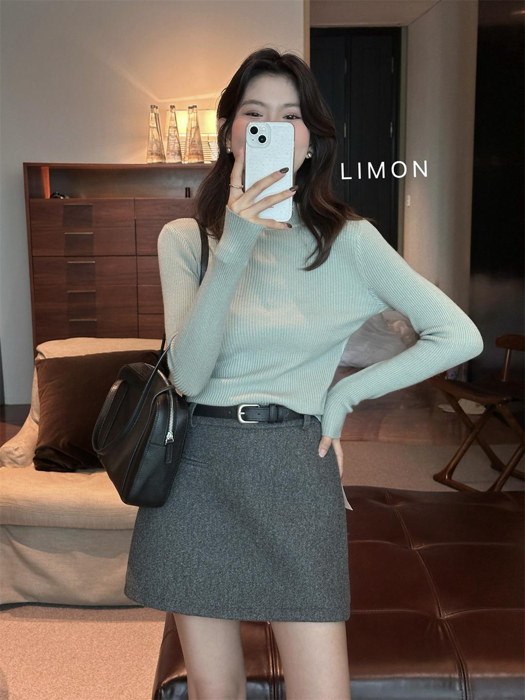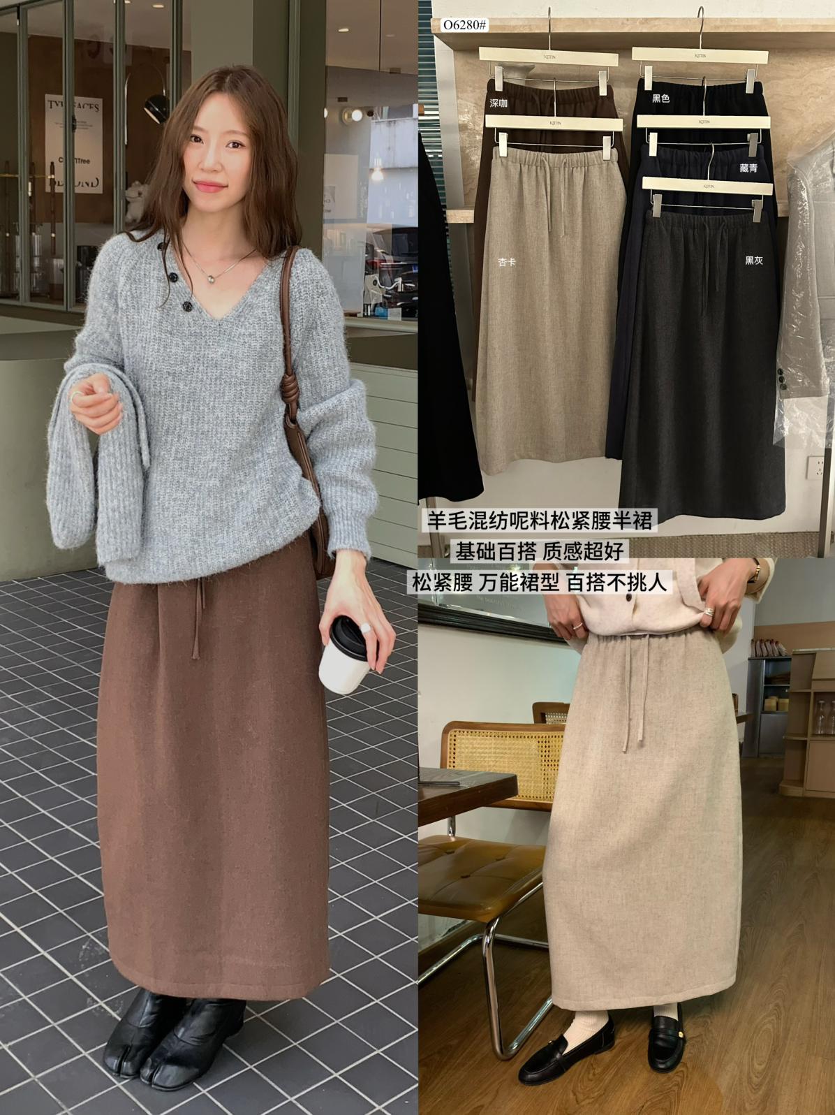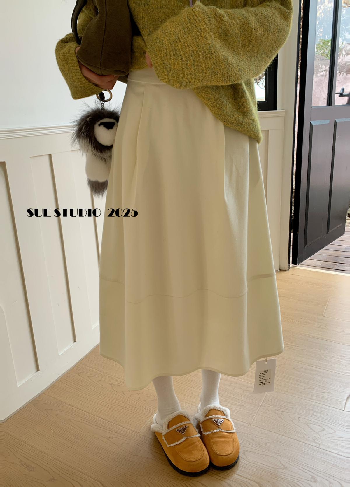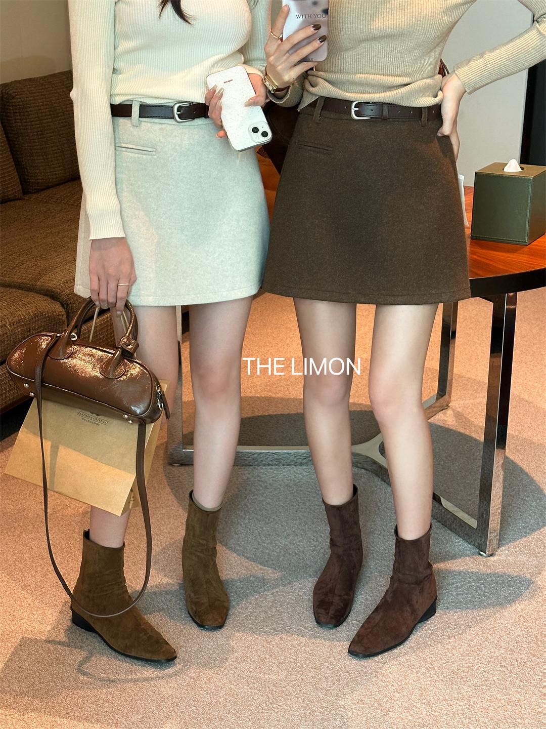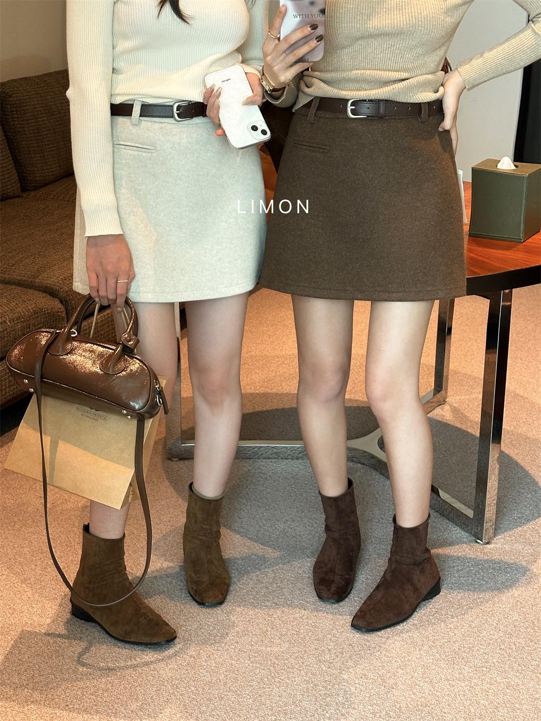 【C7496】王炸款毛呢半裙!高級感高腰顯瘦半身裙(配腰帶)