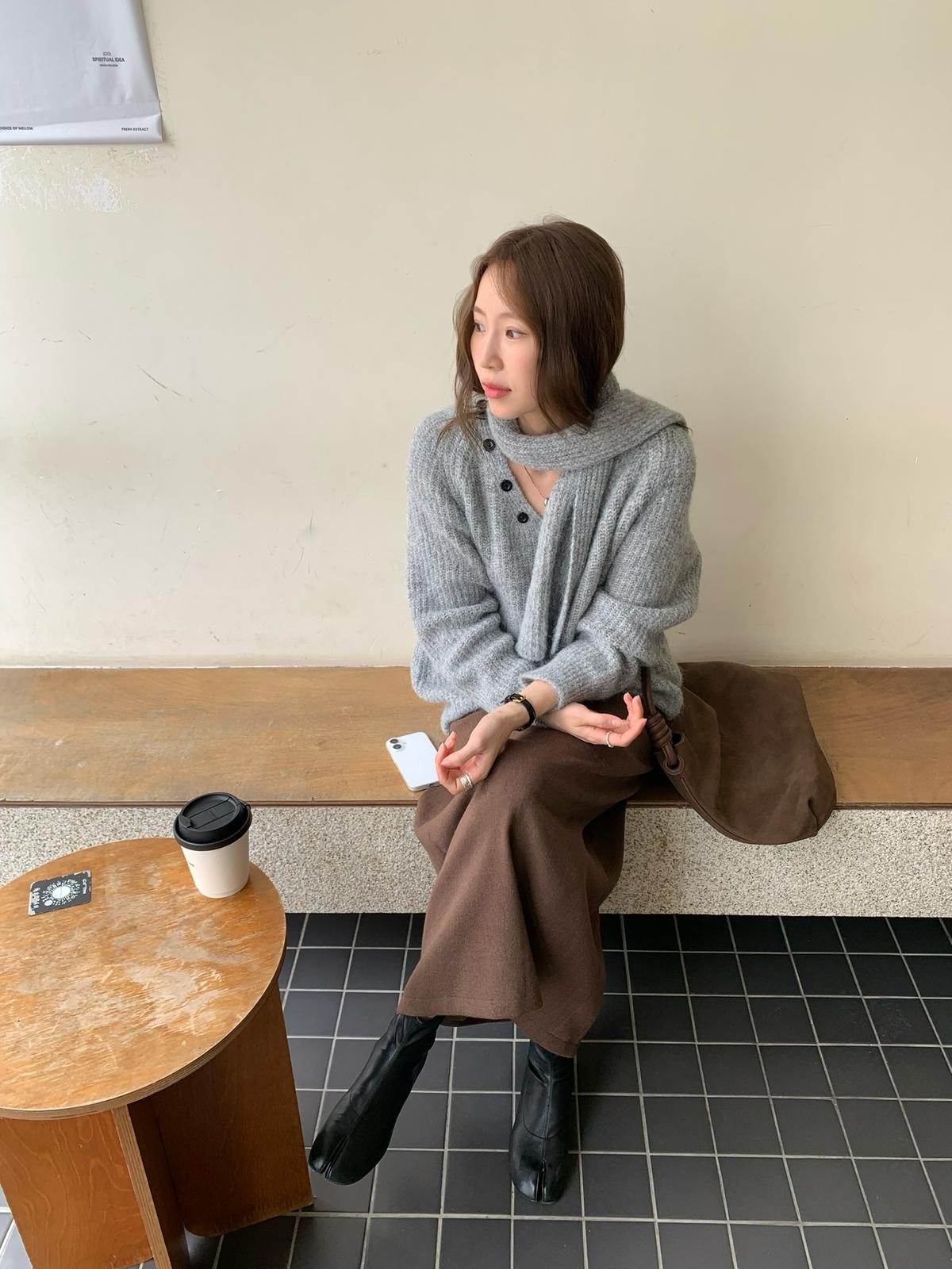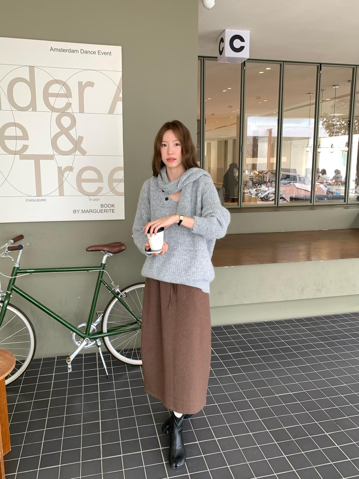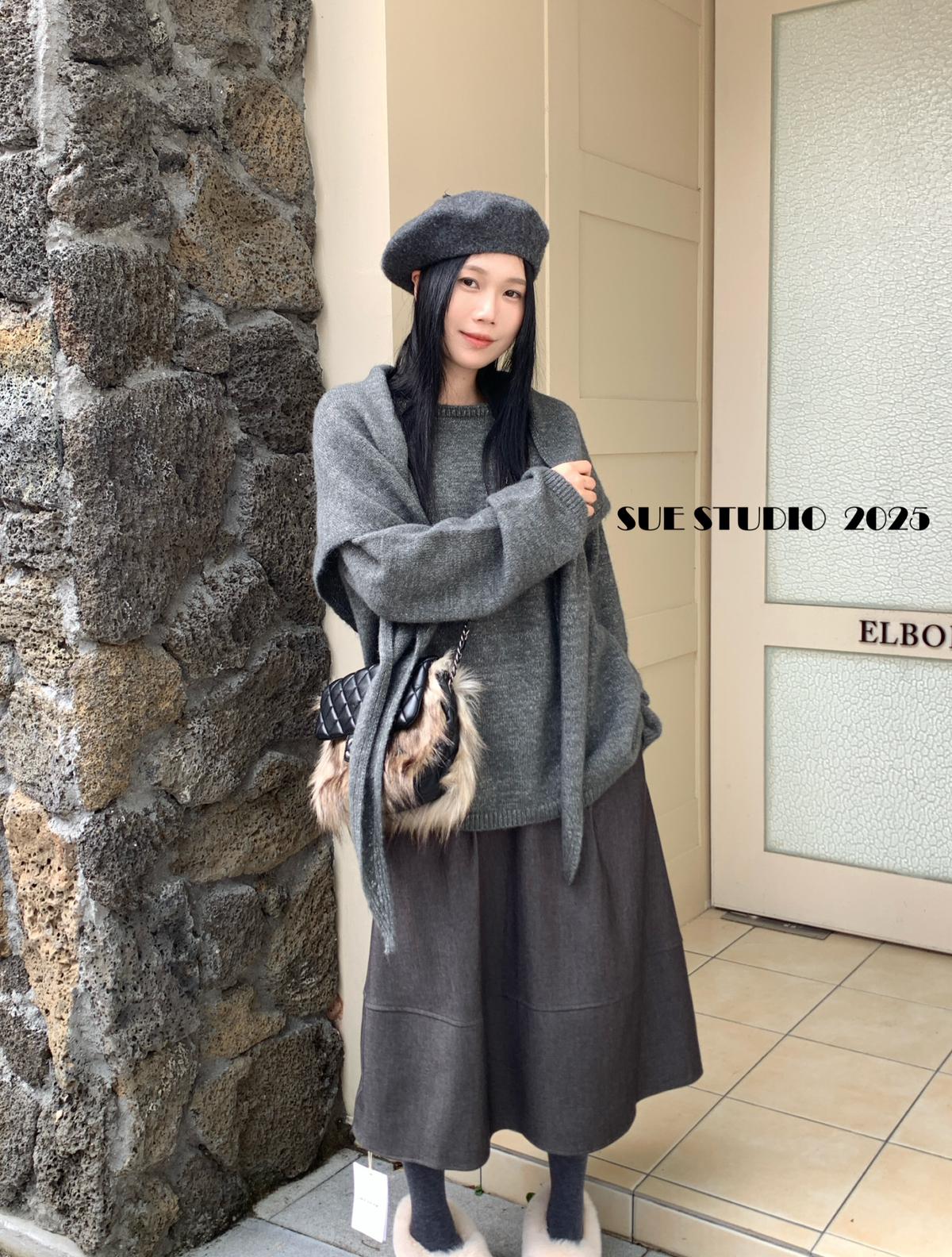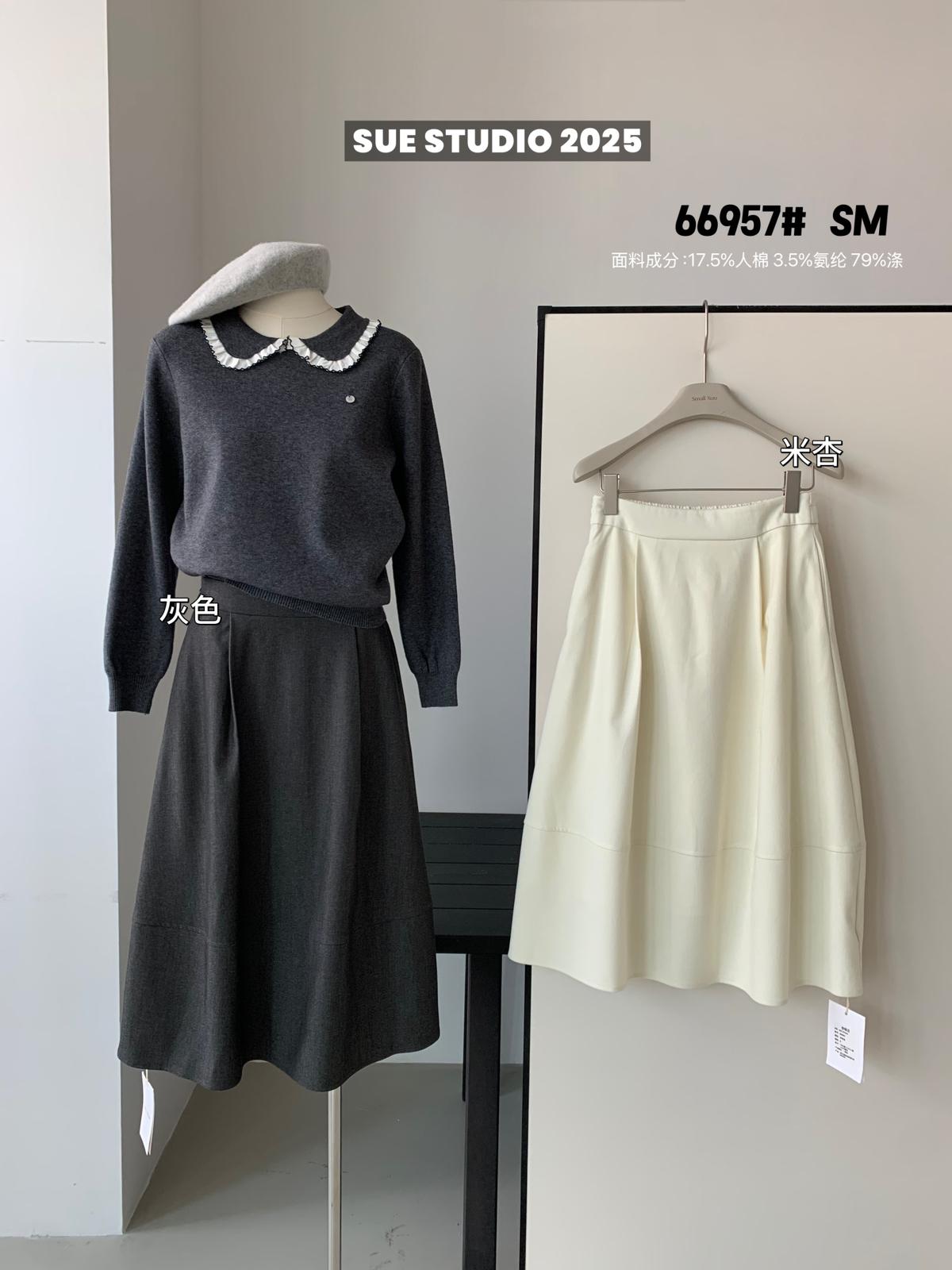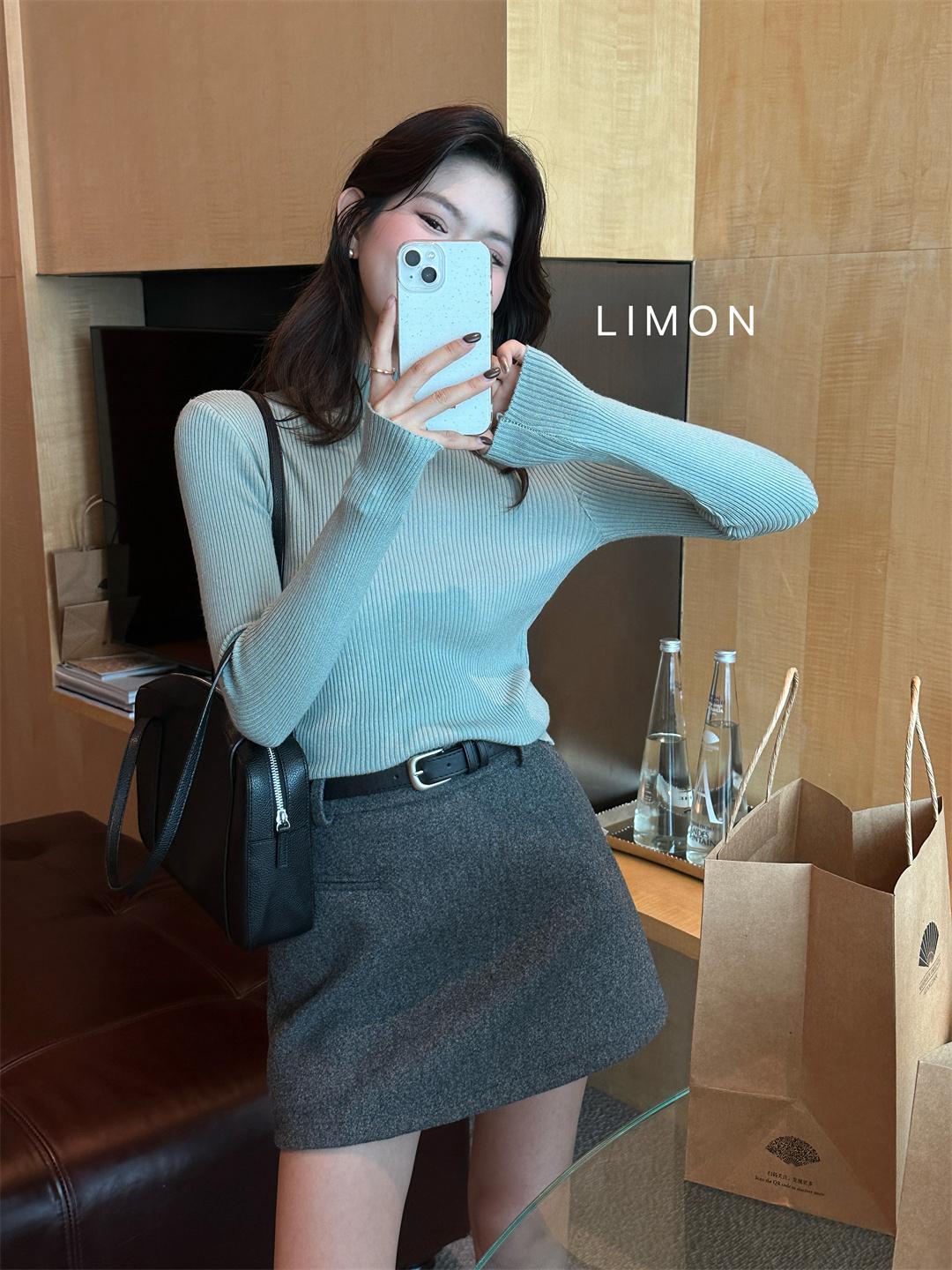 【C7496】王炸款毛呢半裙!高級感高腰顯瘦半身裙(配腰帶)