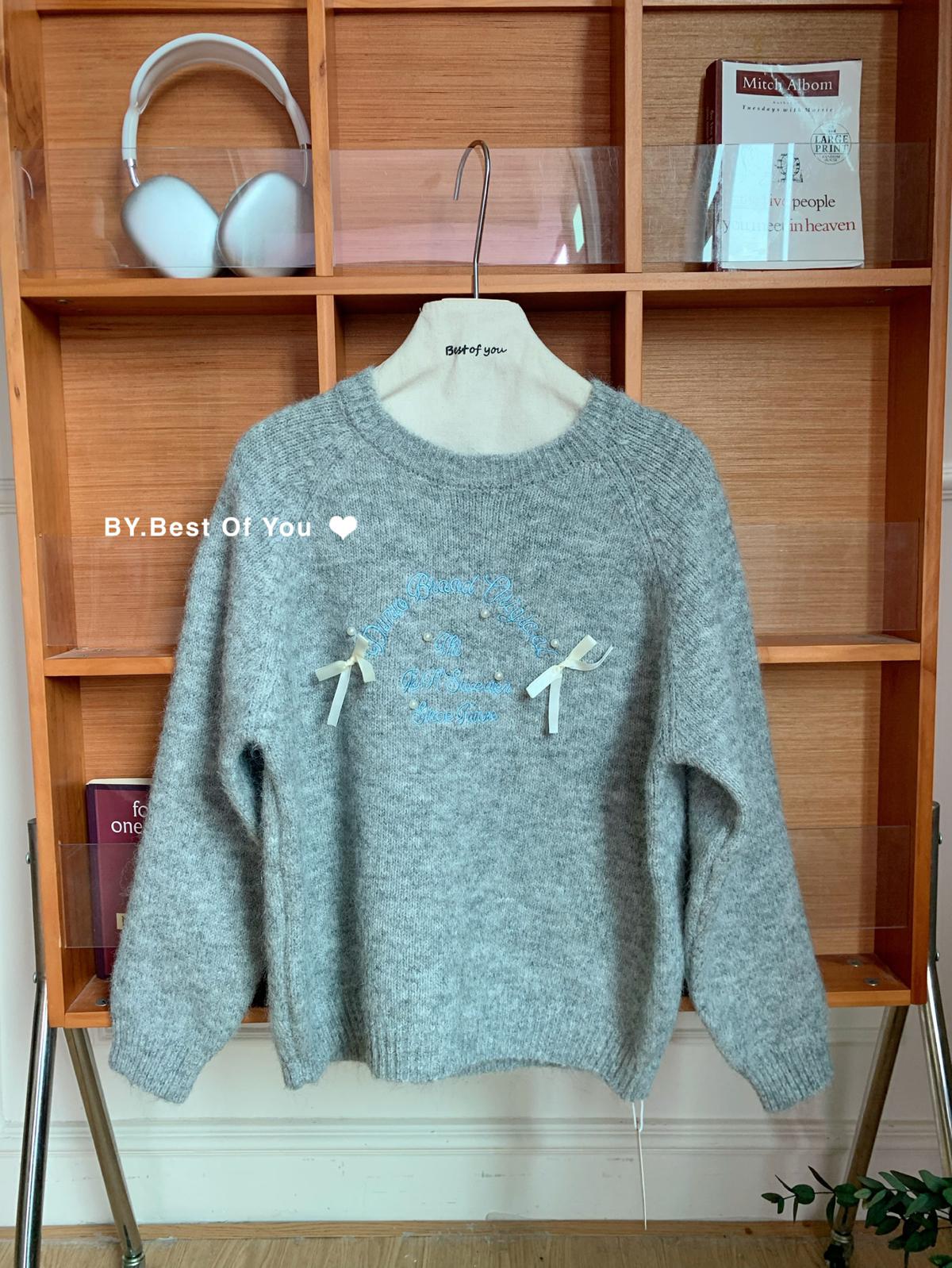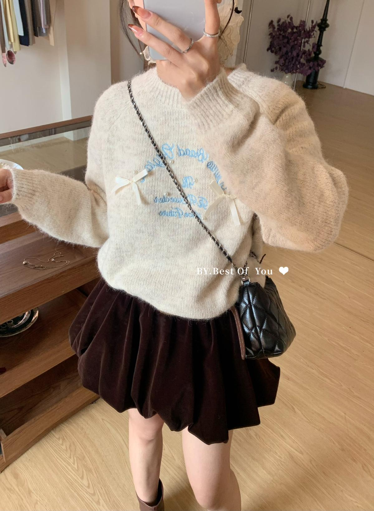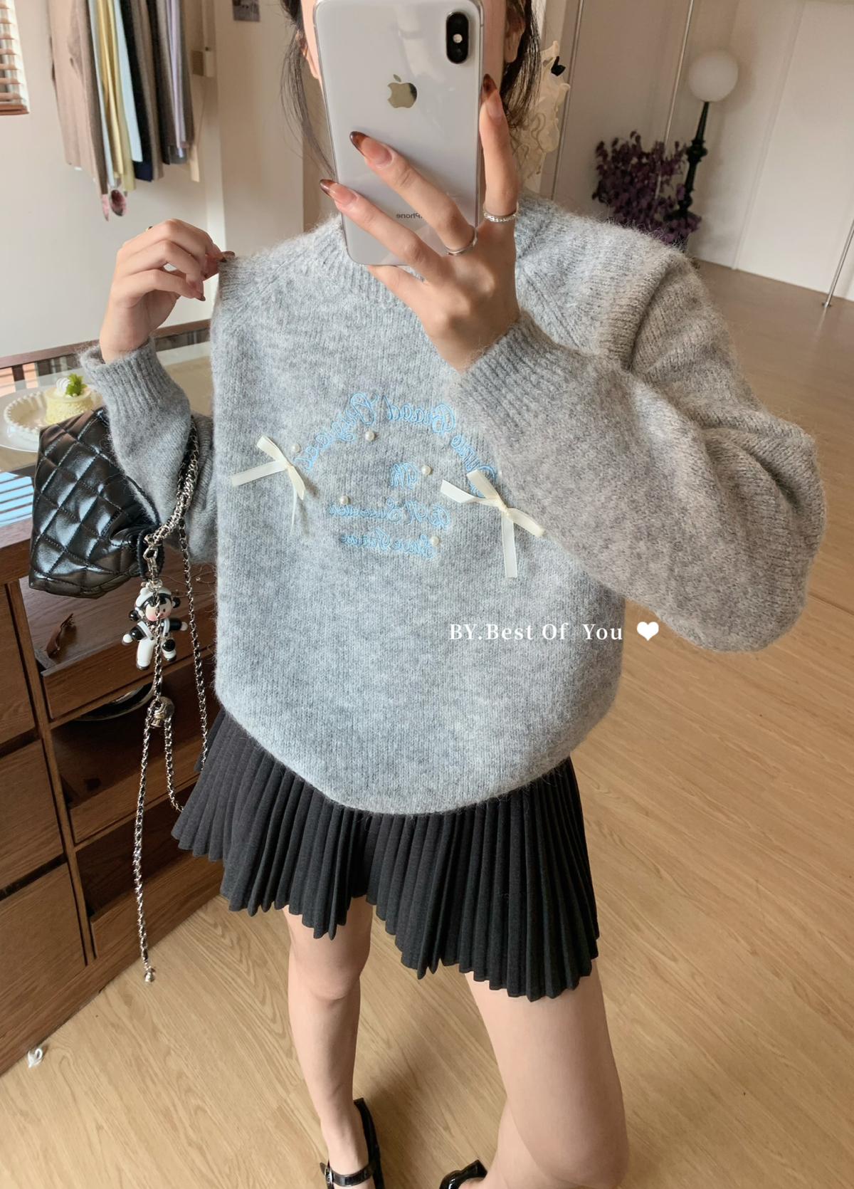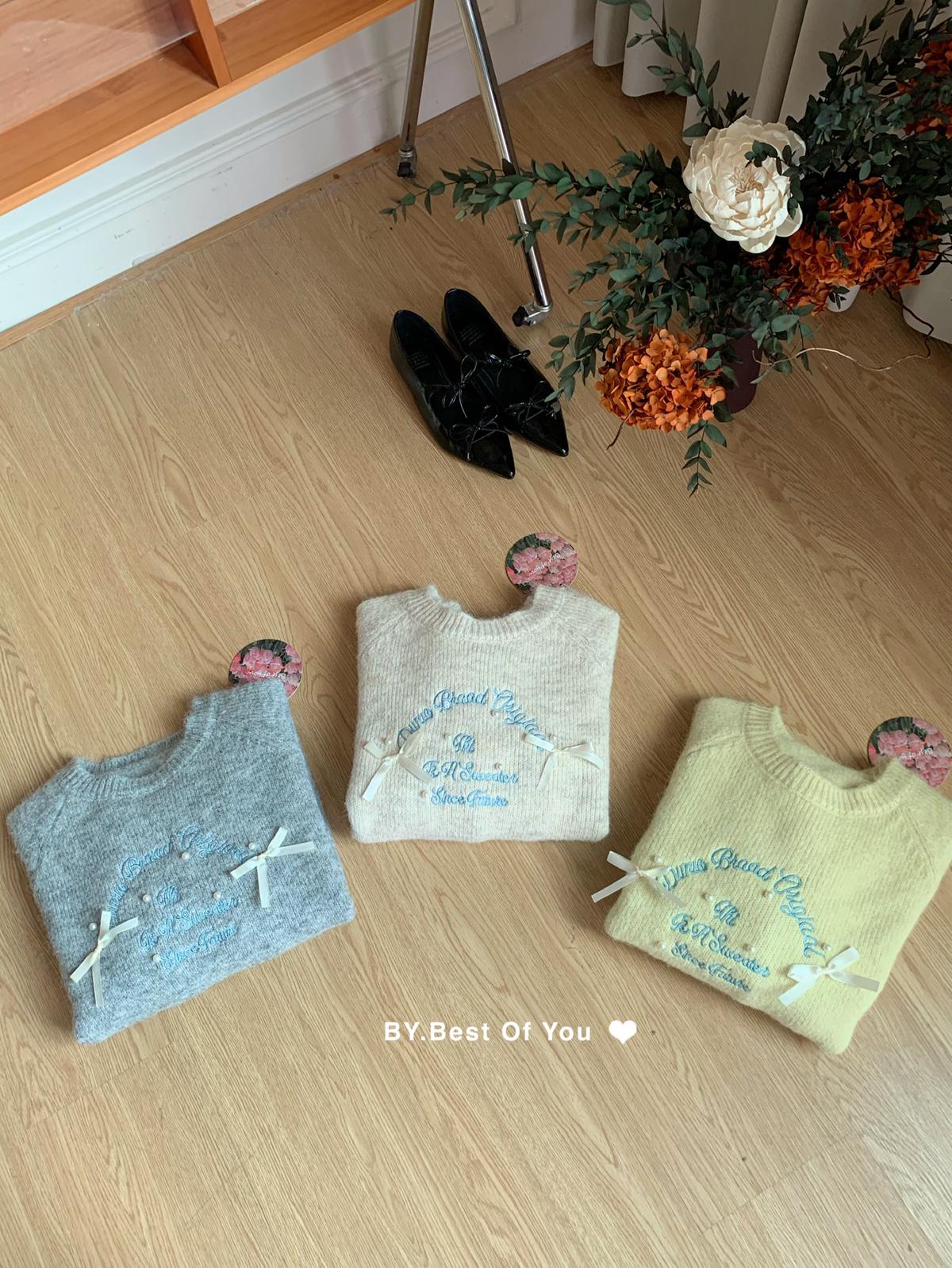 【C7512】韓系圓領蝴蝶結套頭毛衣女秋新款慵懶風軟糯針織衫上衣保暖毛衣
