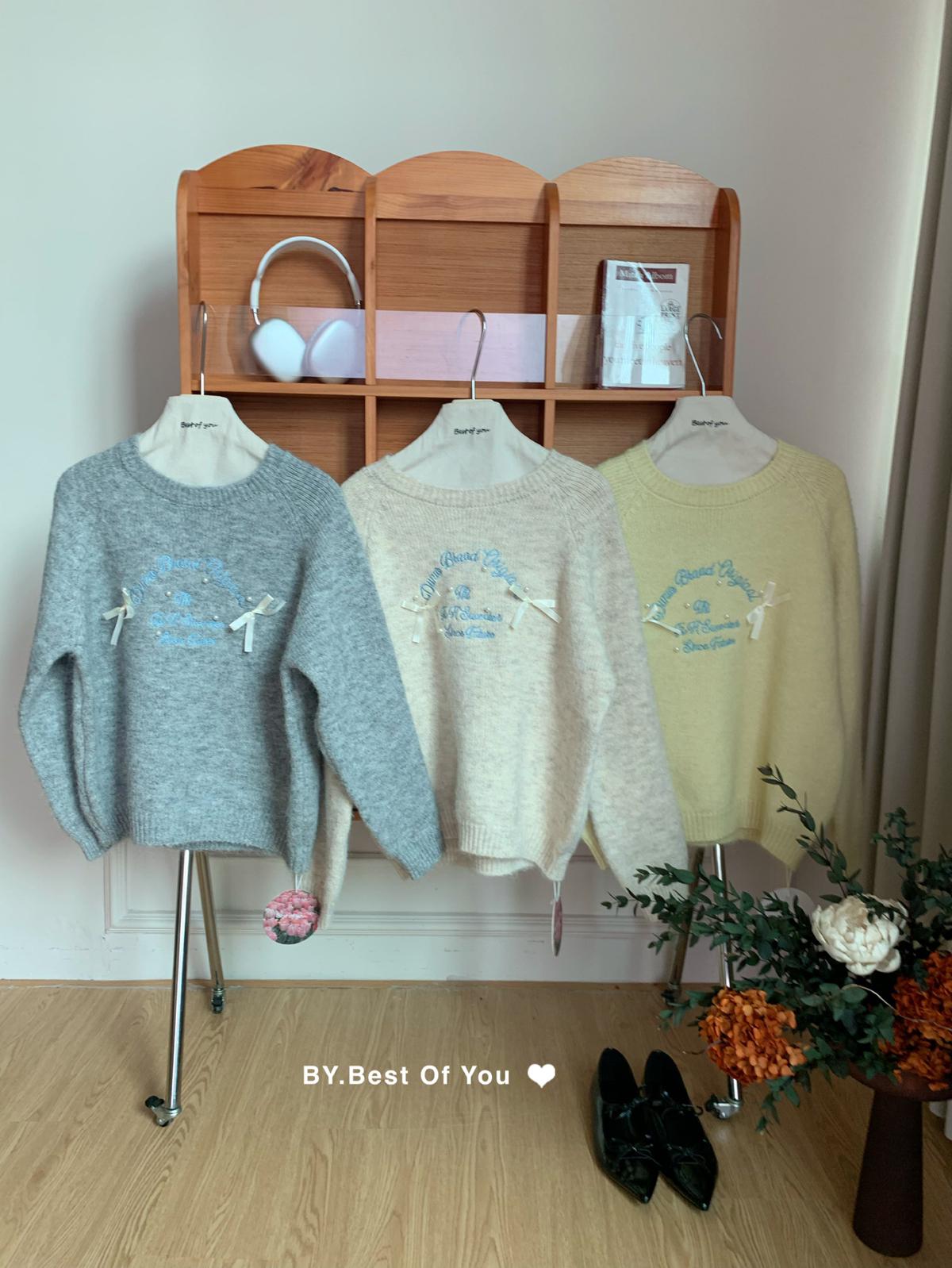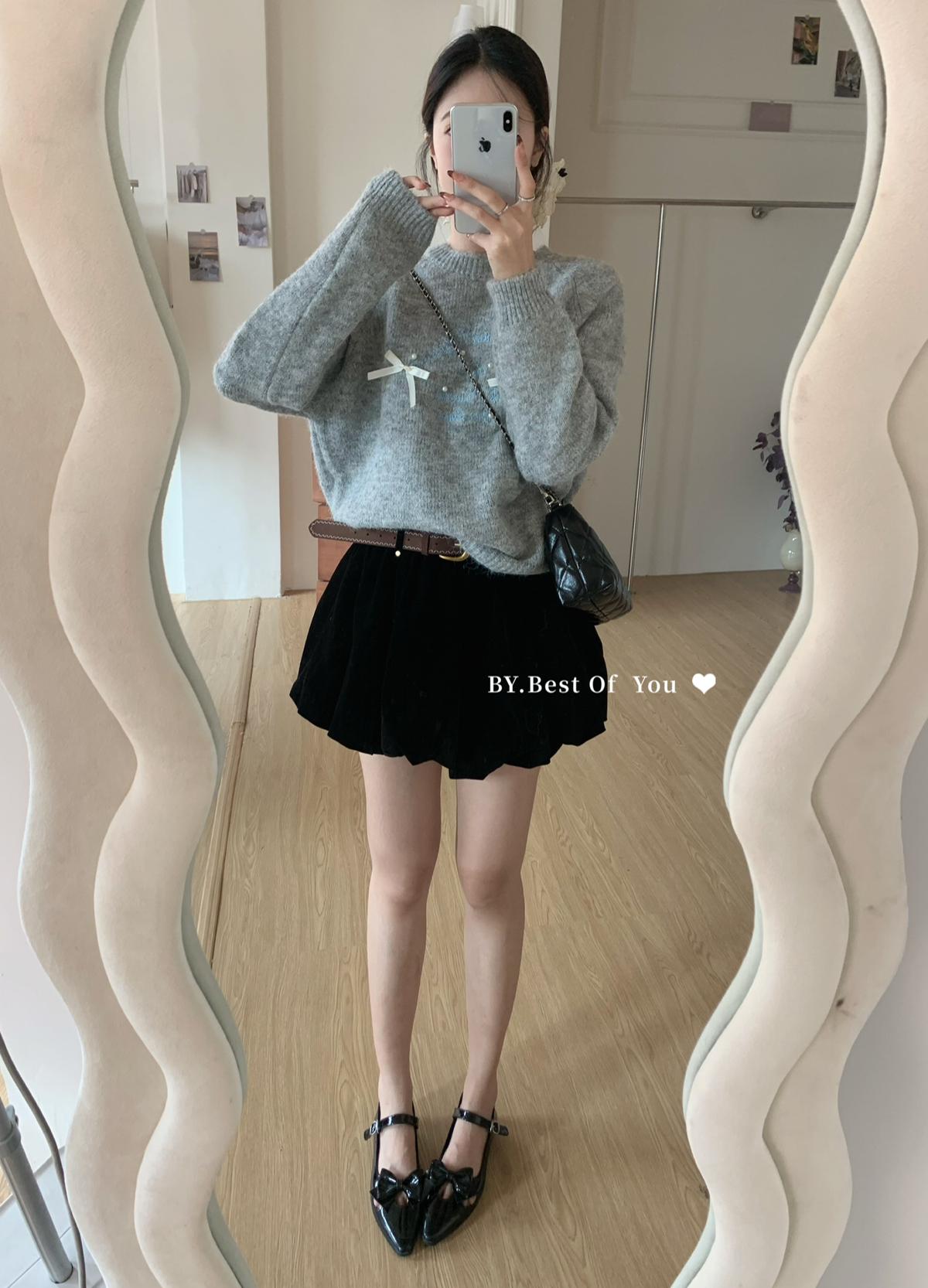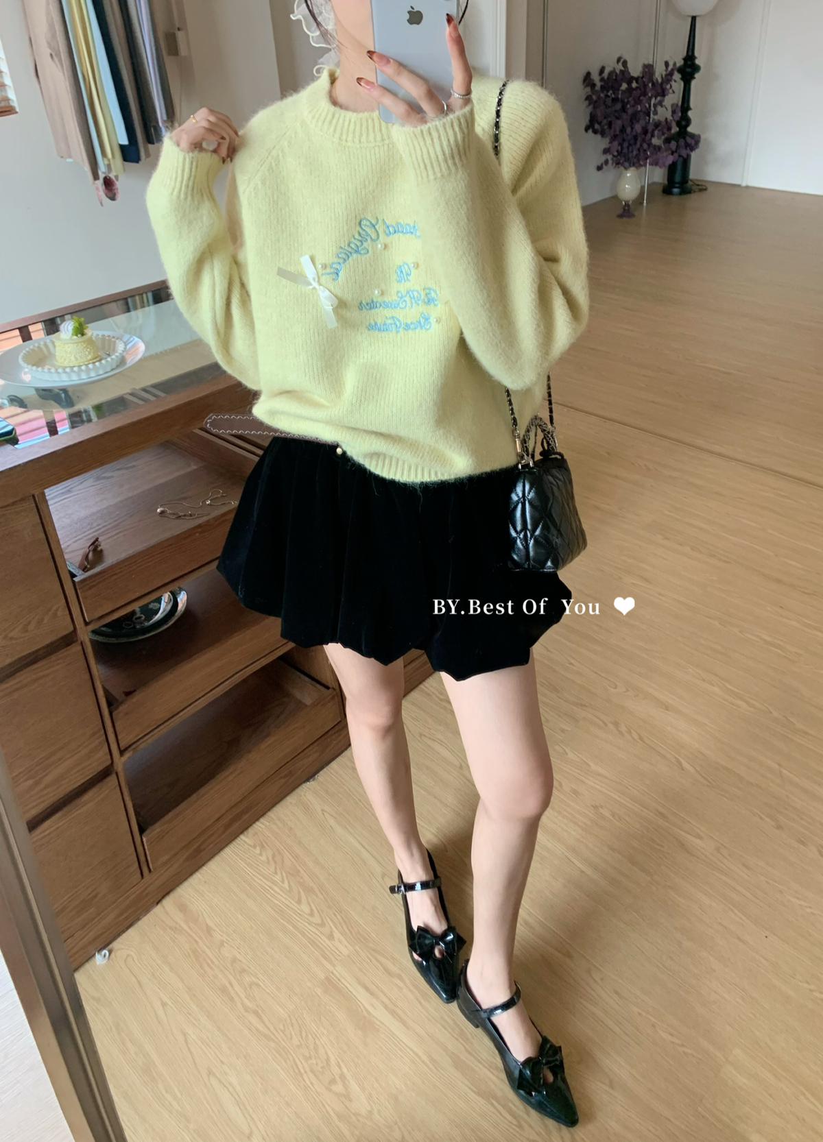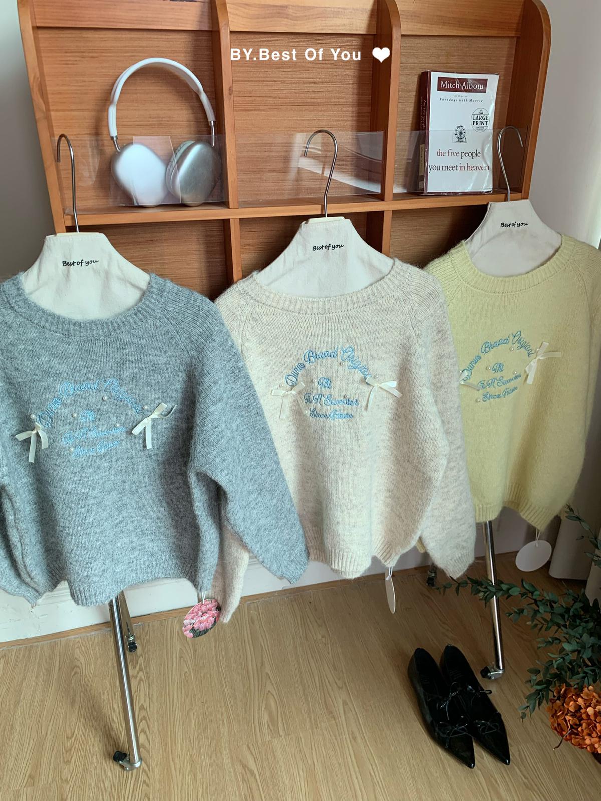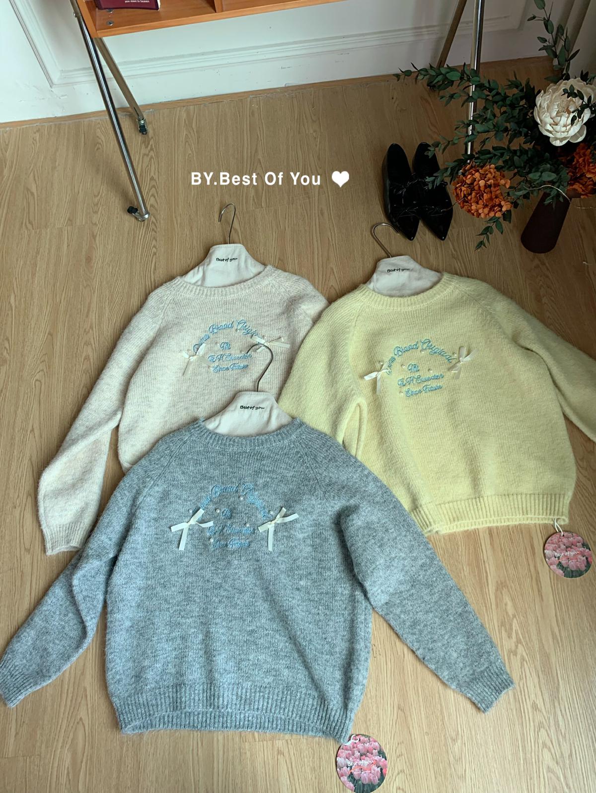 【C7512】韓系圓領蝴蝶結套頭毛衣女秋新款慵懶風軟糯針織衫上衣保暖毛衣