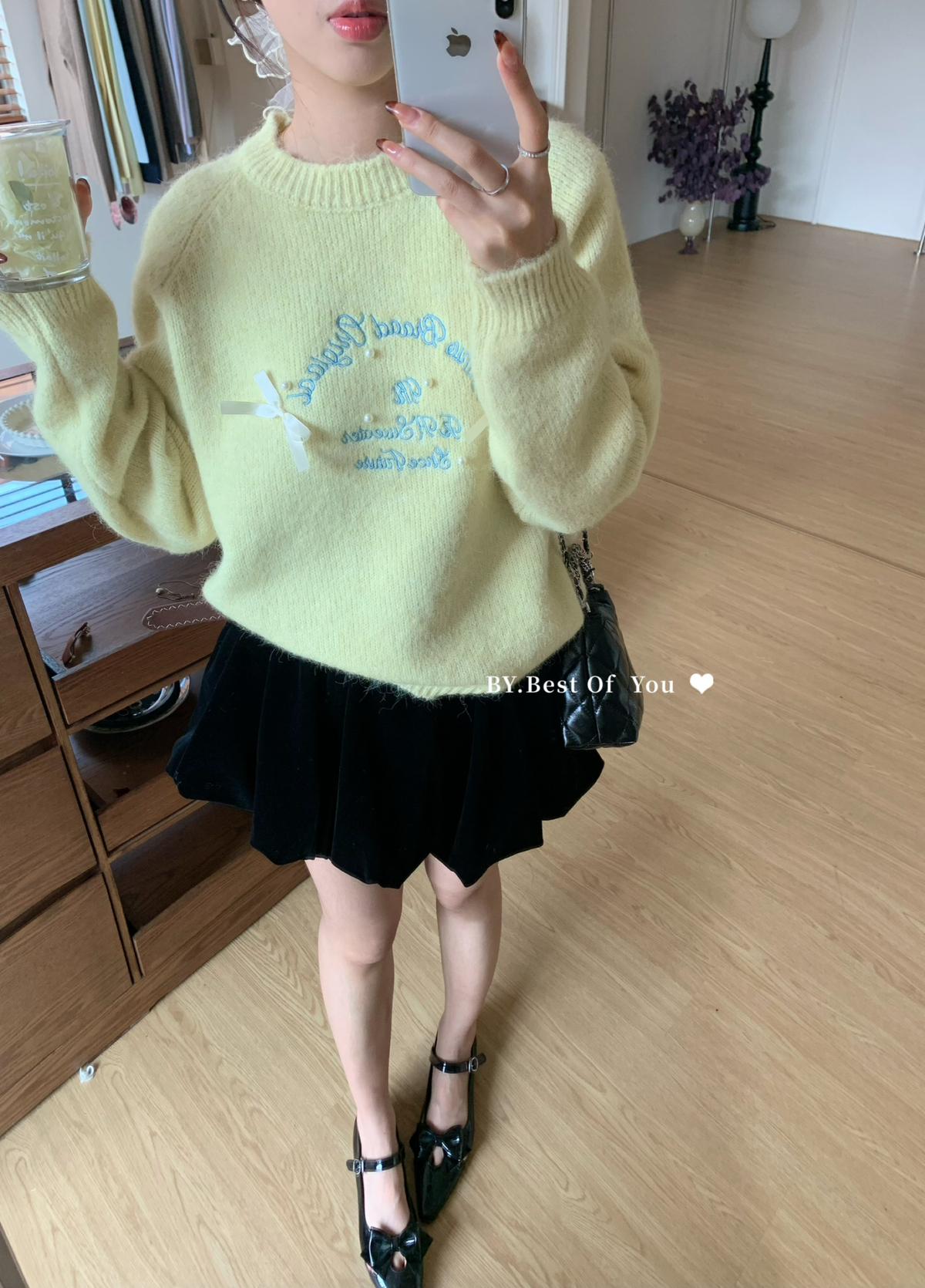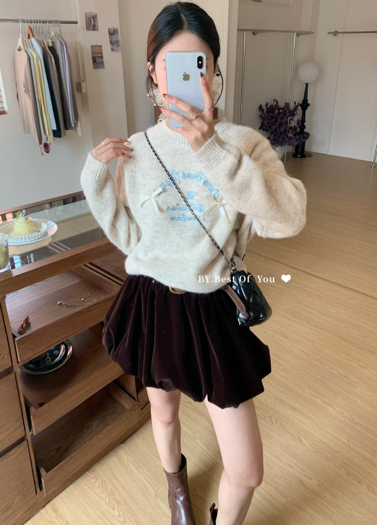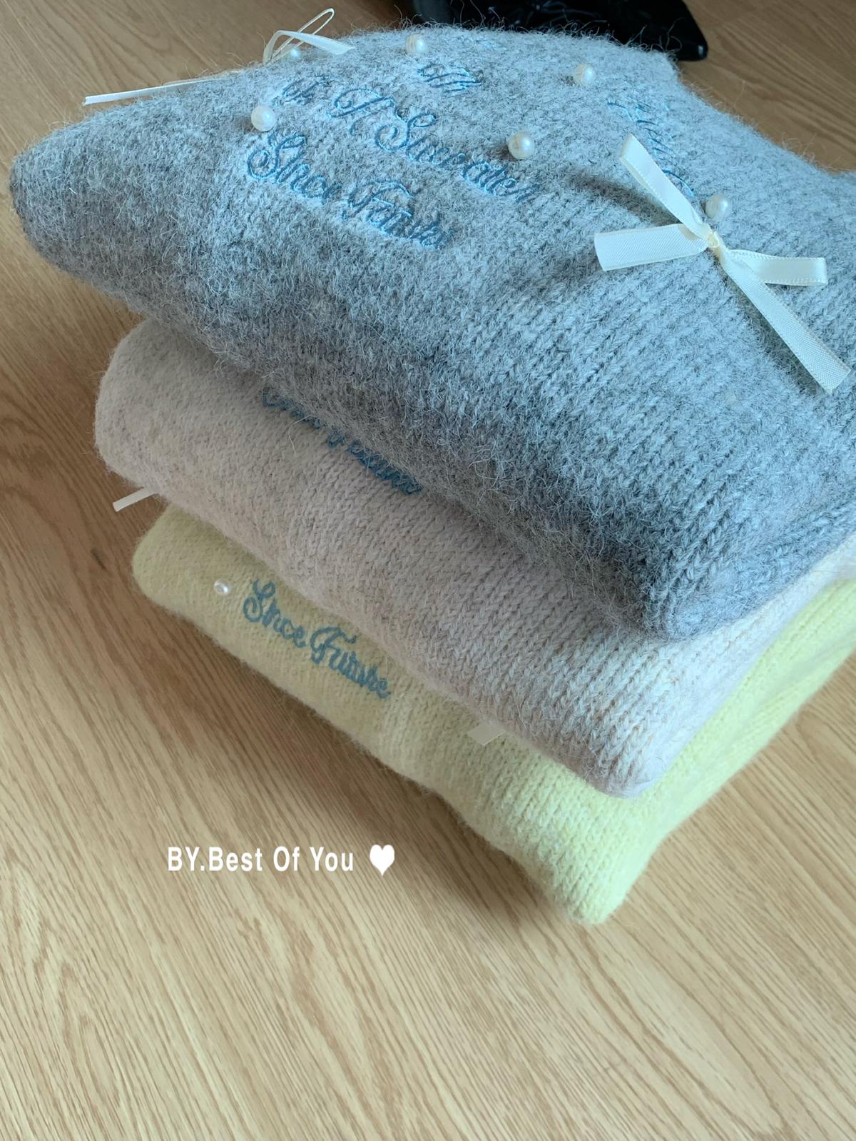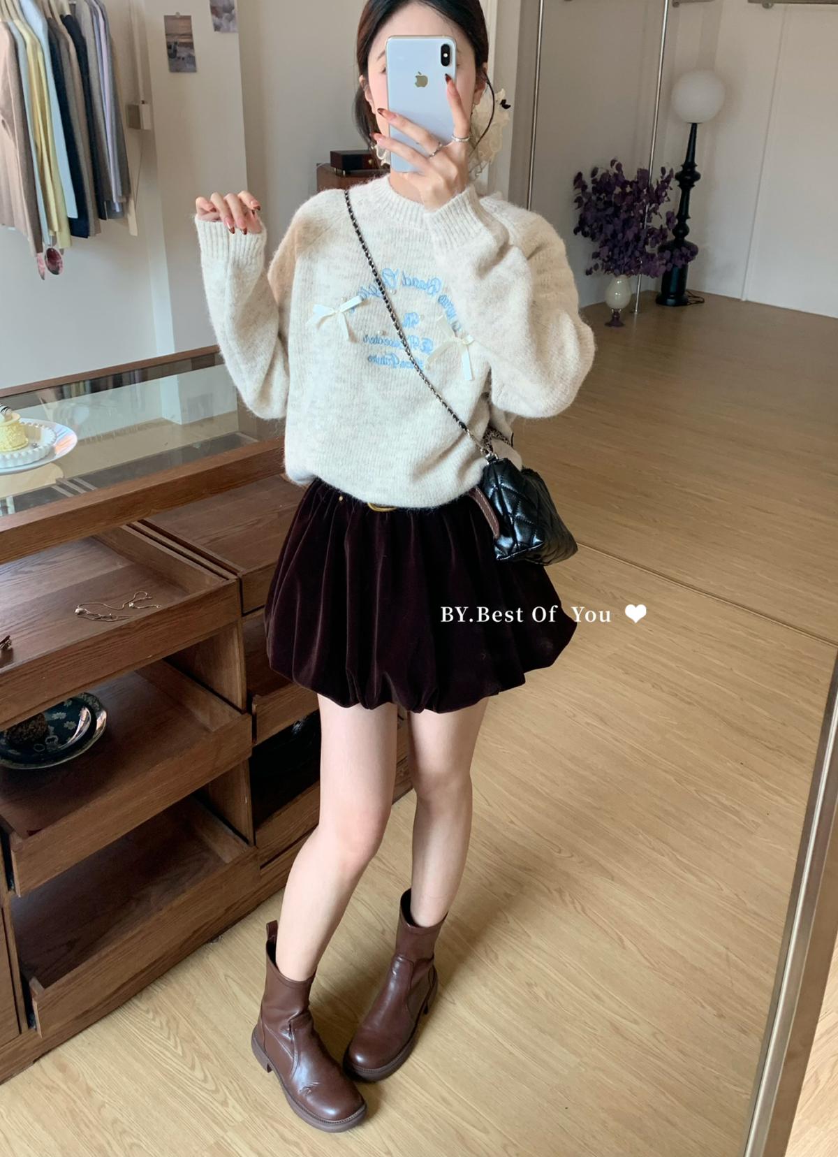 【C7512】韓系圓領蝴蝶結套頭毛衣女秋新款慵懶風軟糯針織衫上衣保暖毛衣