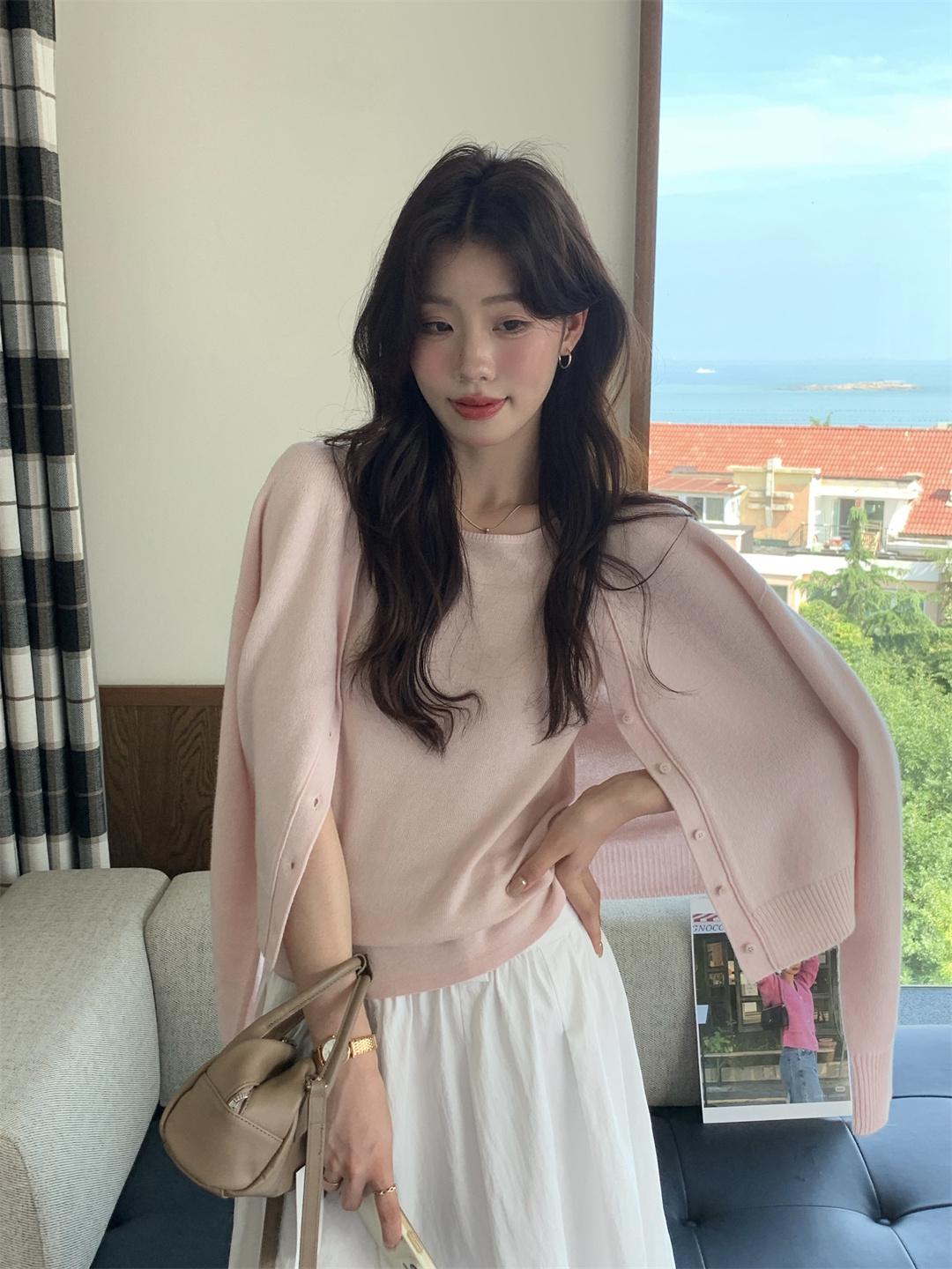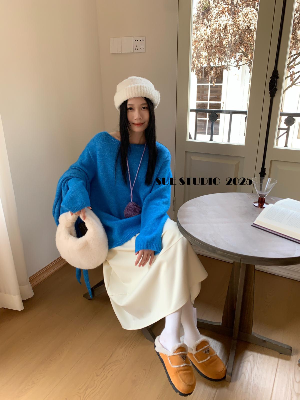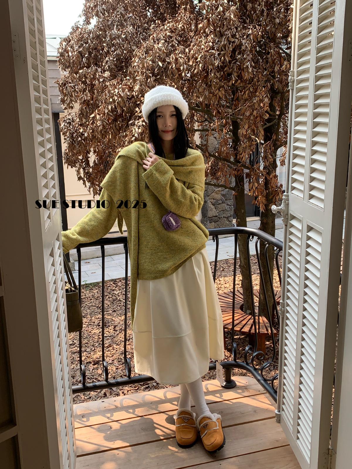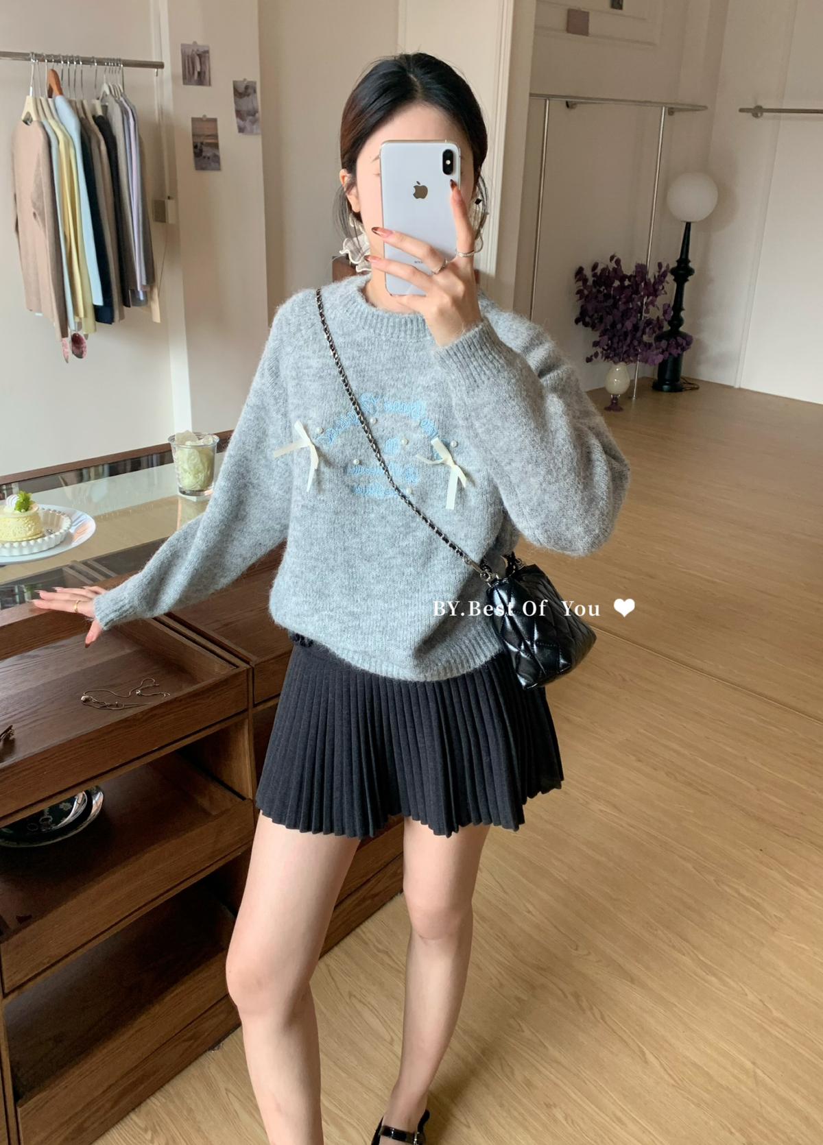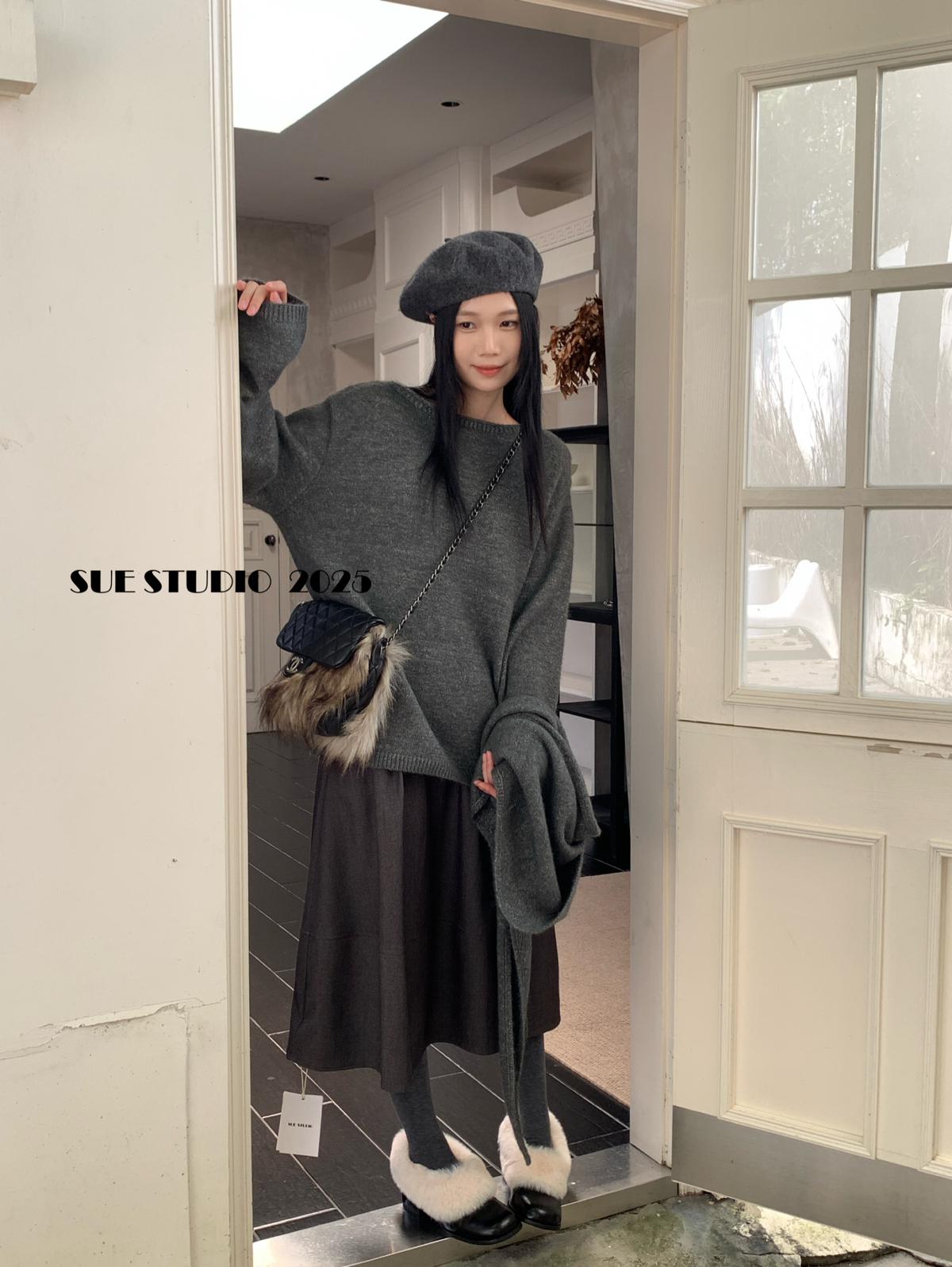 【C7512】韓系圓領蝴蝶結套頭毛衣女秋新款慵懶風軟糯針織衫上衣保暖毛衣