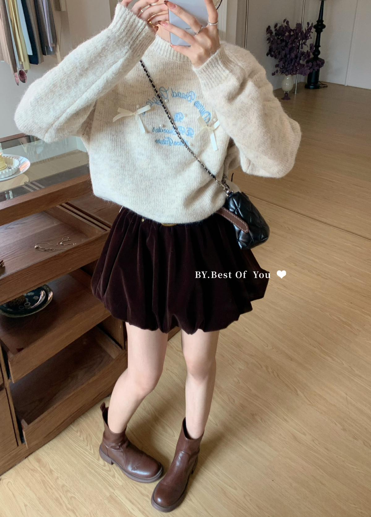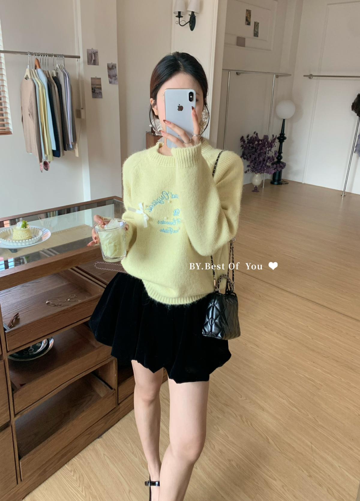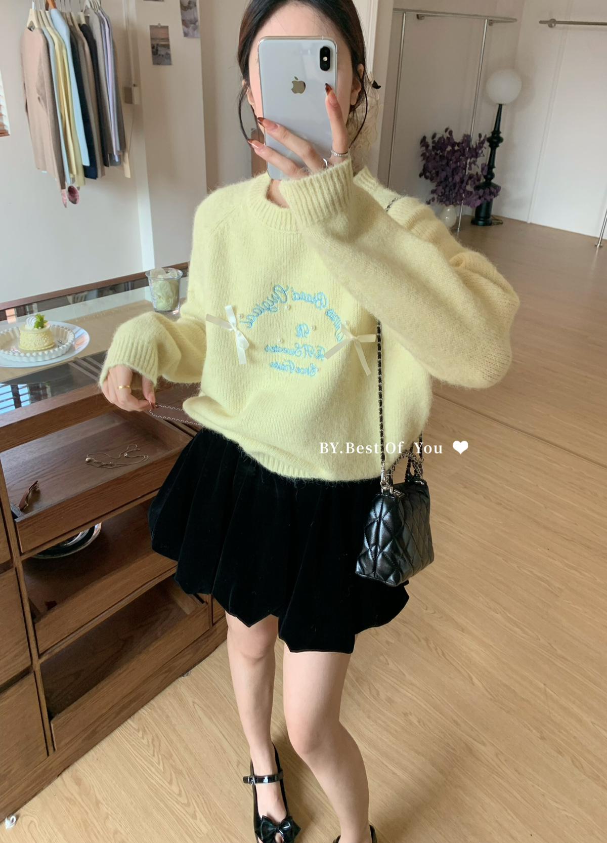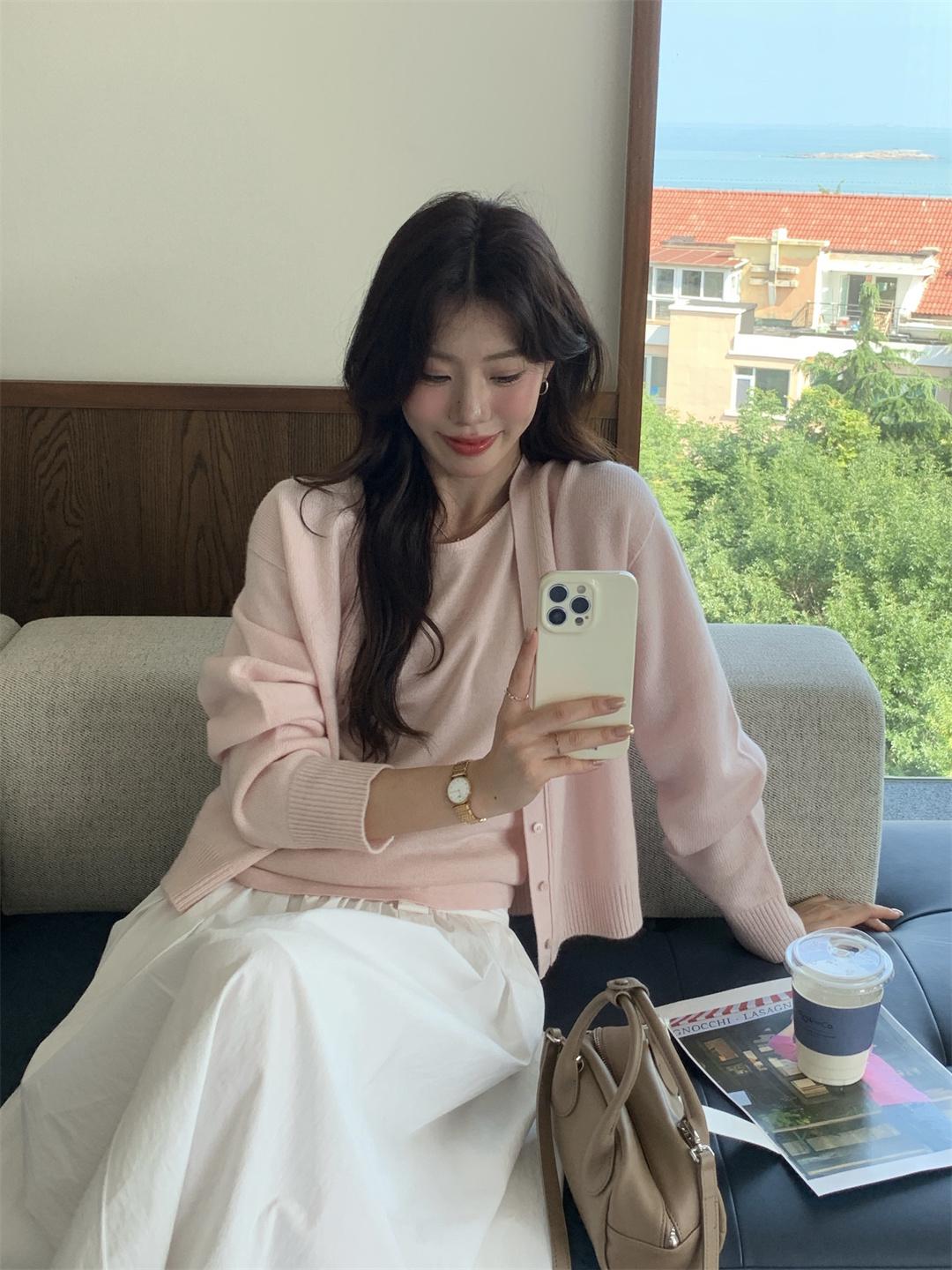 【C7512】韓系圓領蝴蝶結套頭毛衣女秋新款慵懶風軟糯針織衫上衣保暖毛衣
