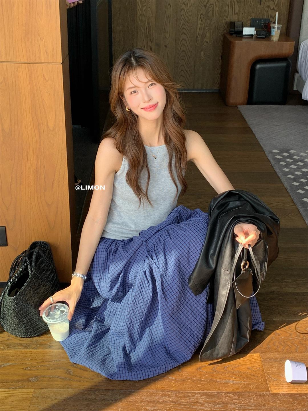 【C7519】韓系簡約百搭顯瘦燈籠裙半身裙