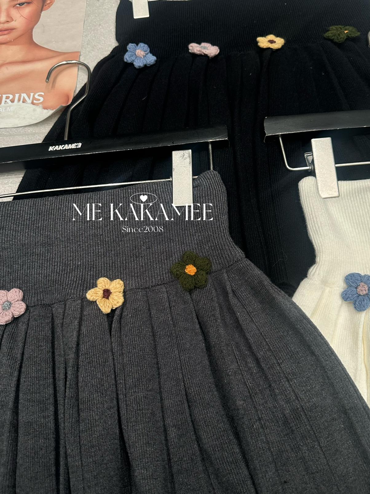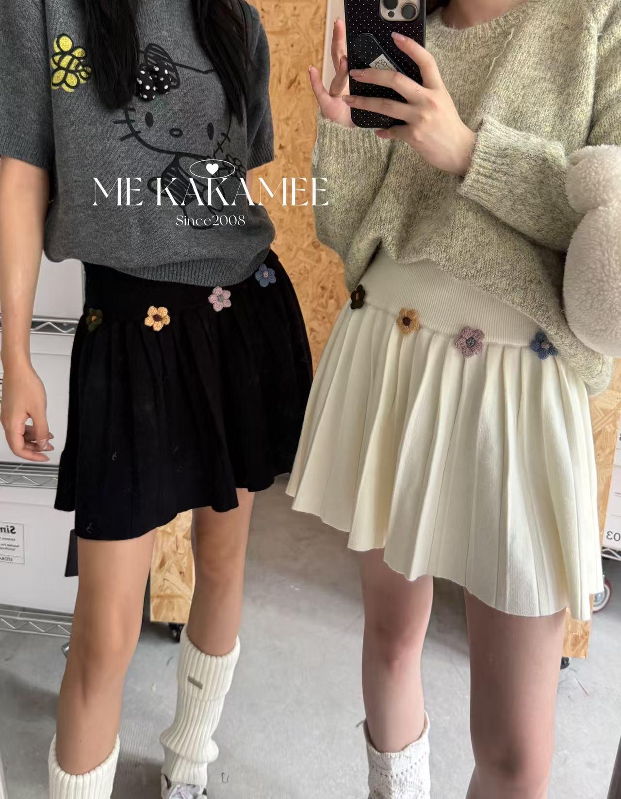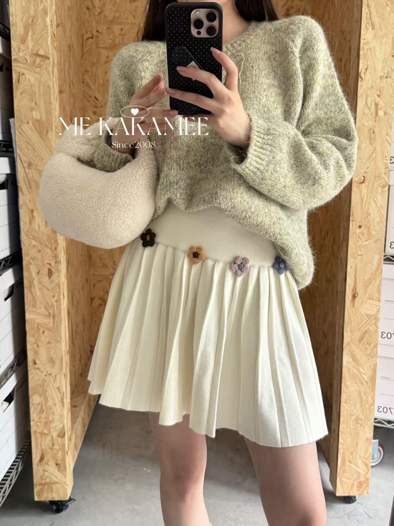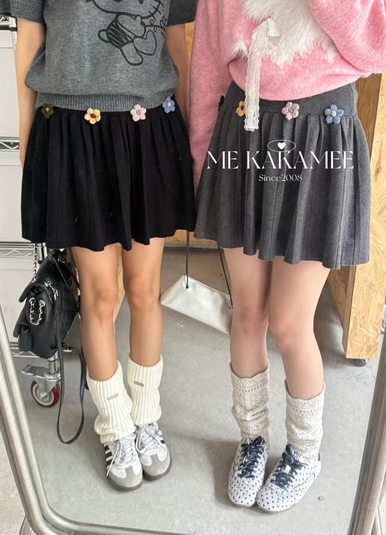 【C7506】秋新品立體花朵百褶針織半身裙