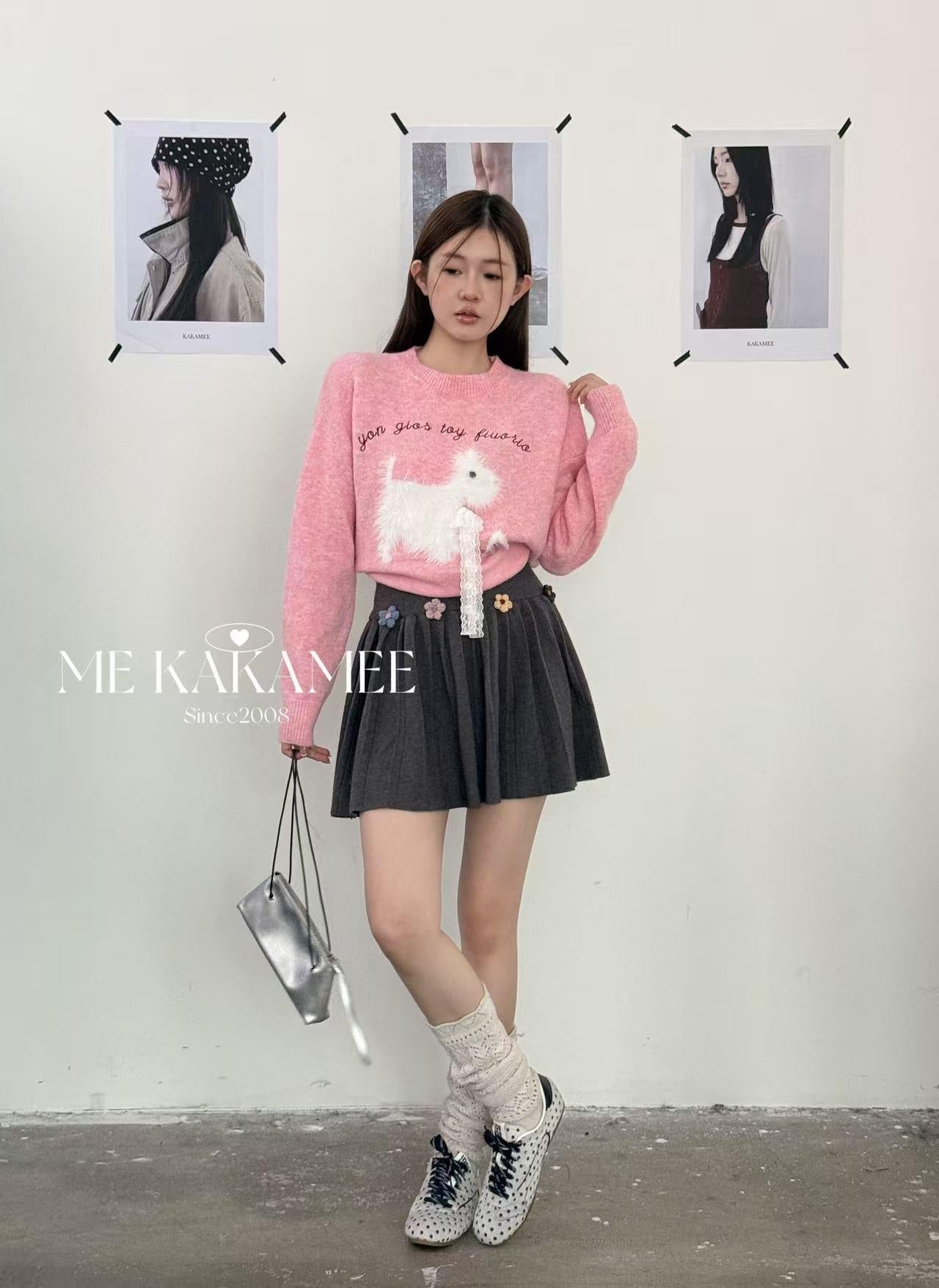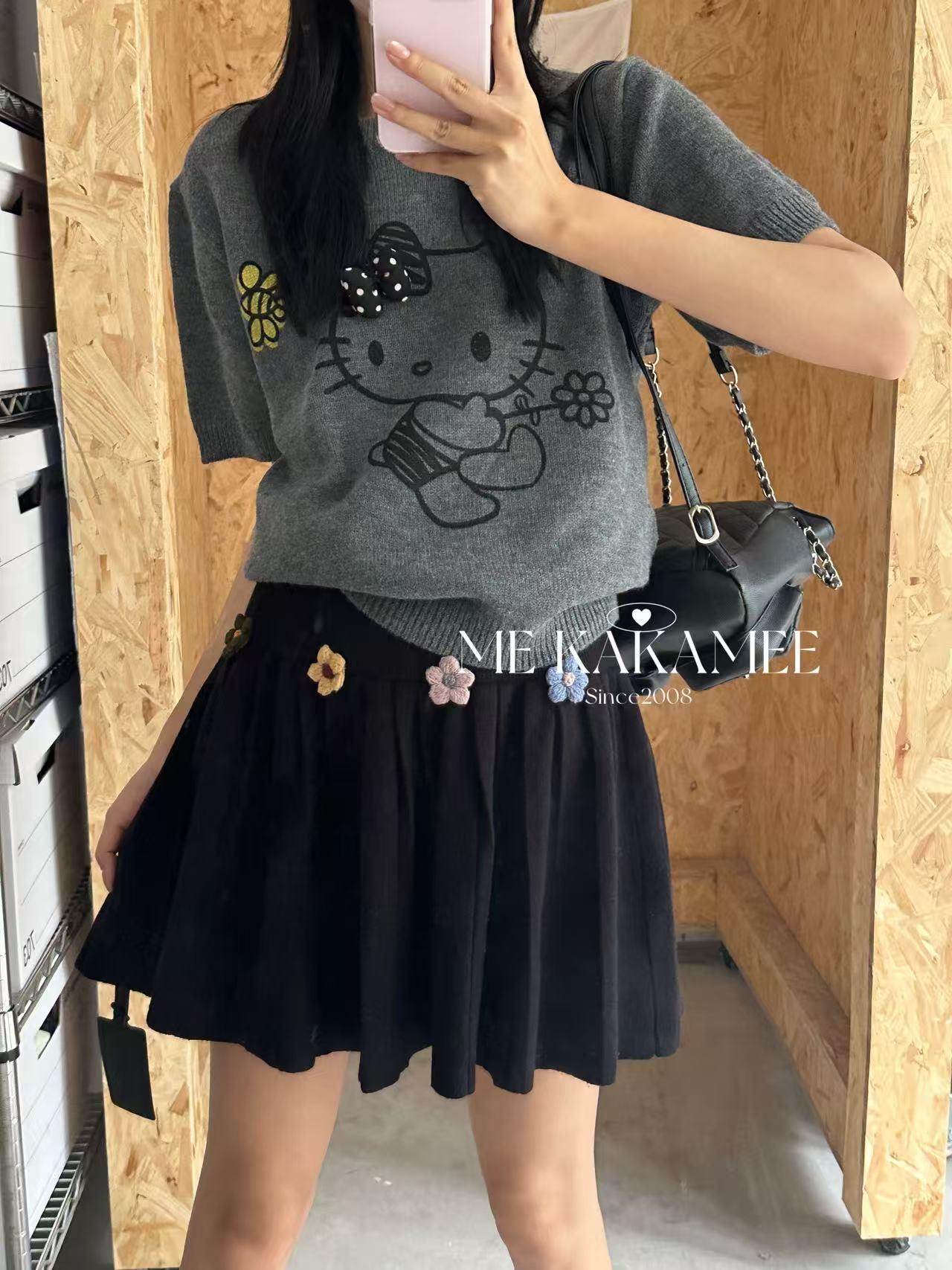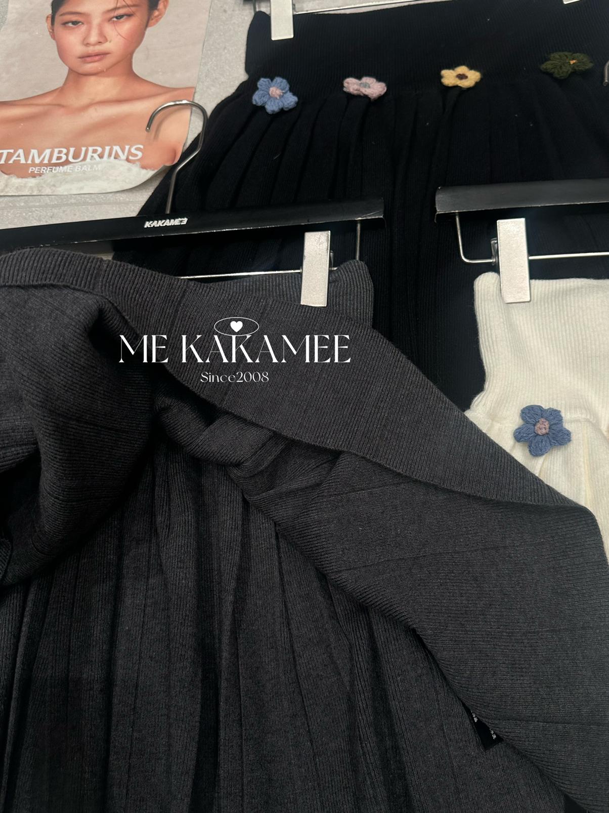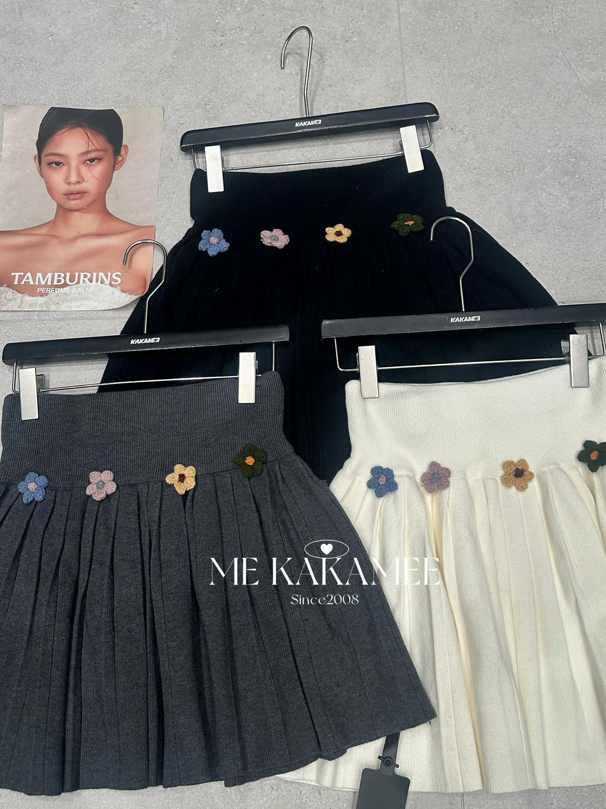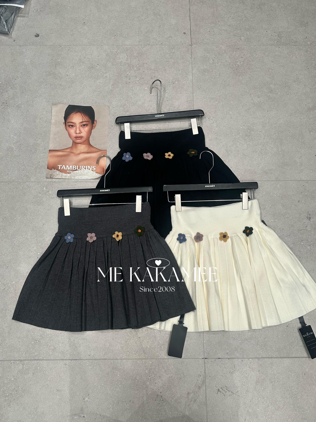 【C7506】秋新品立體花朵百褶針織半身裙