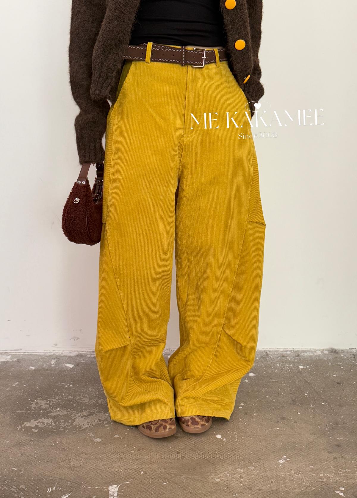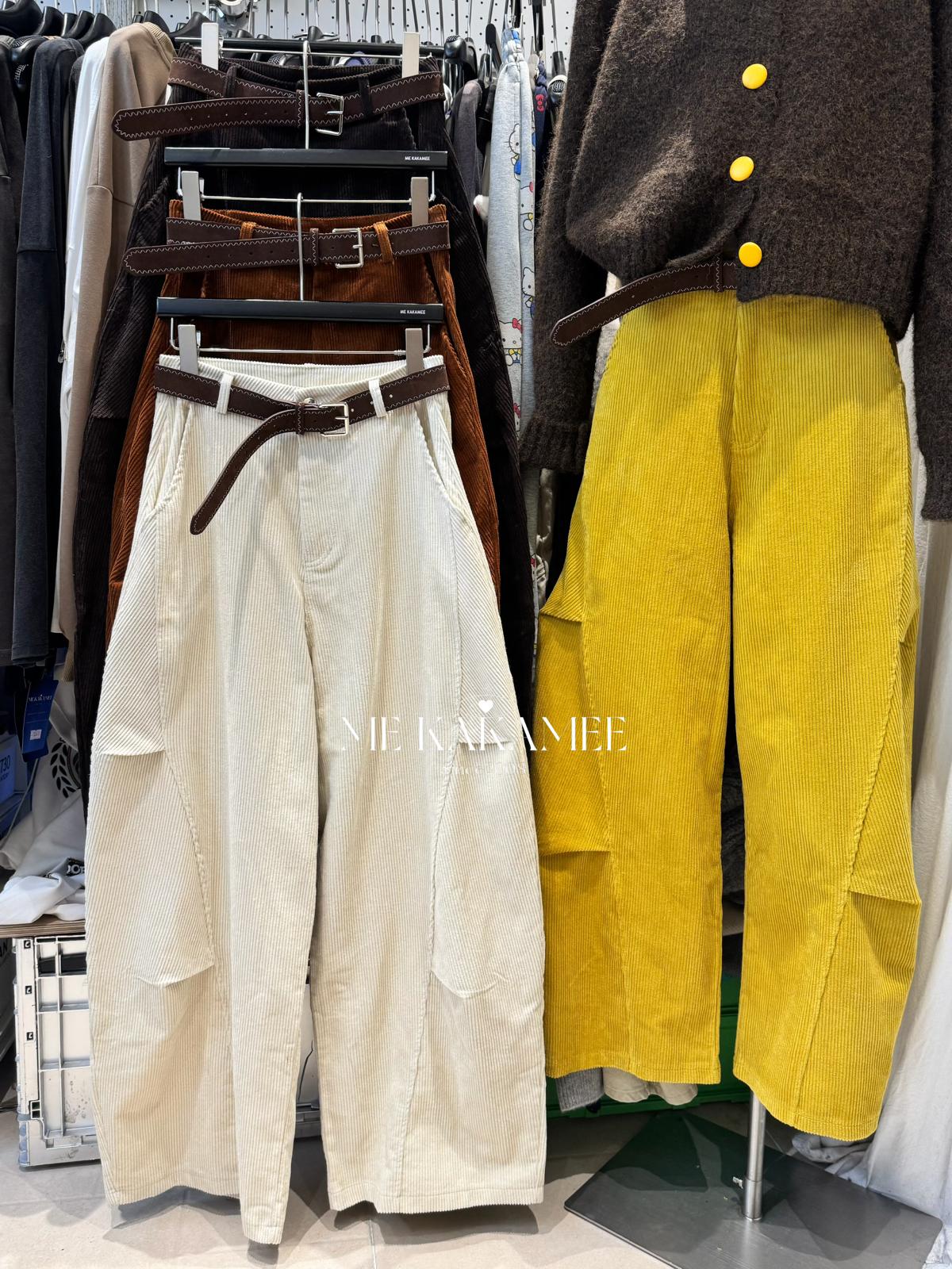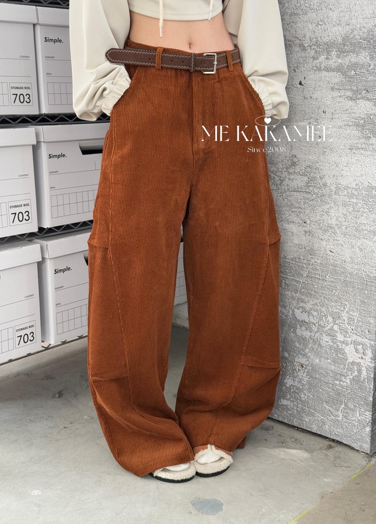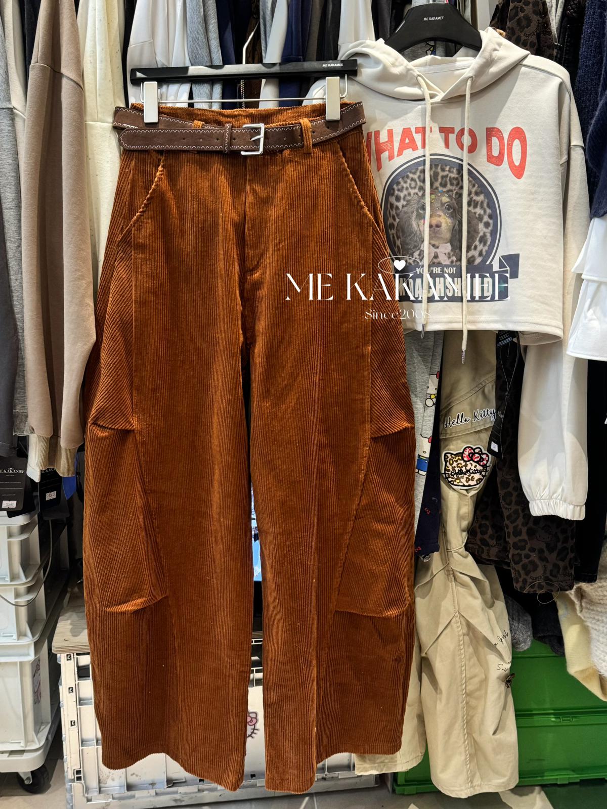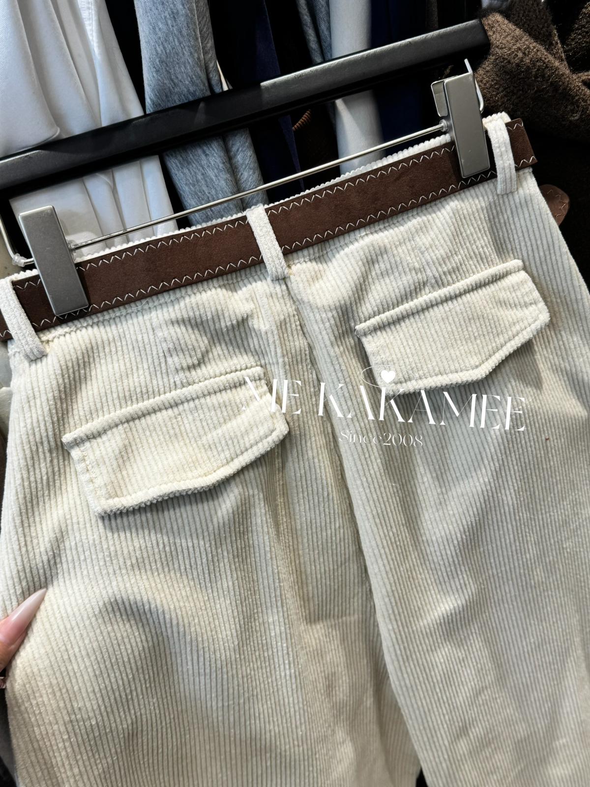 【C7509】秋新品復古燈芯絨立體剪裁彎刀寬鬆顯瘦休閒褲(配腰帶)