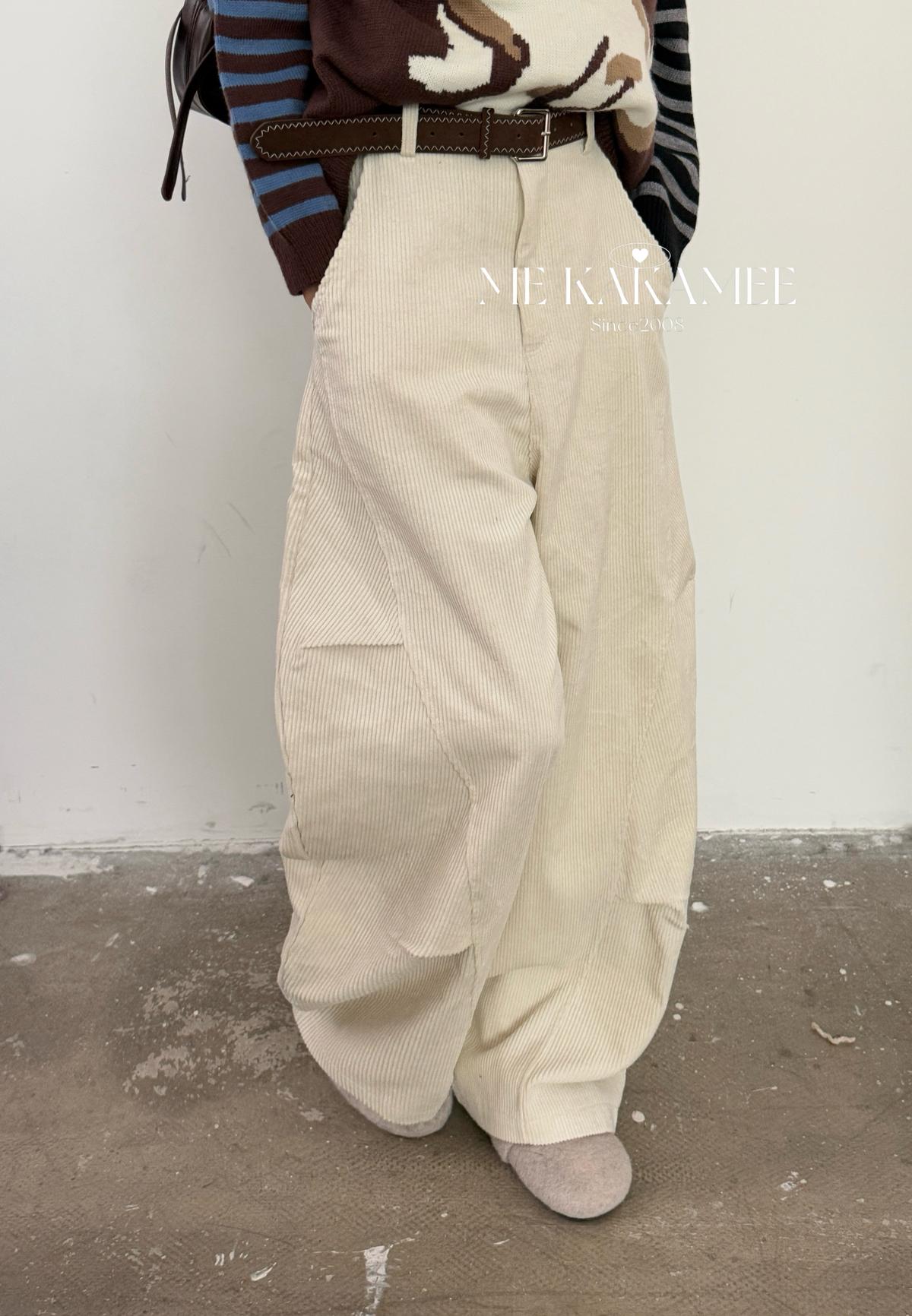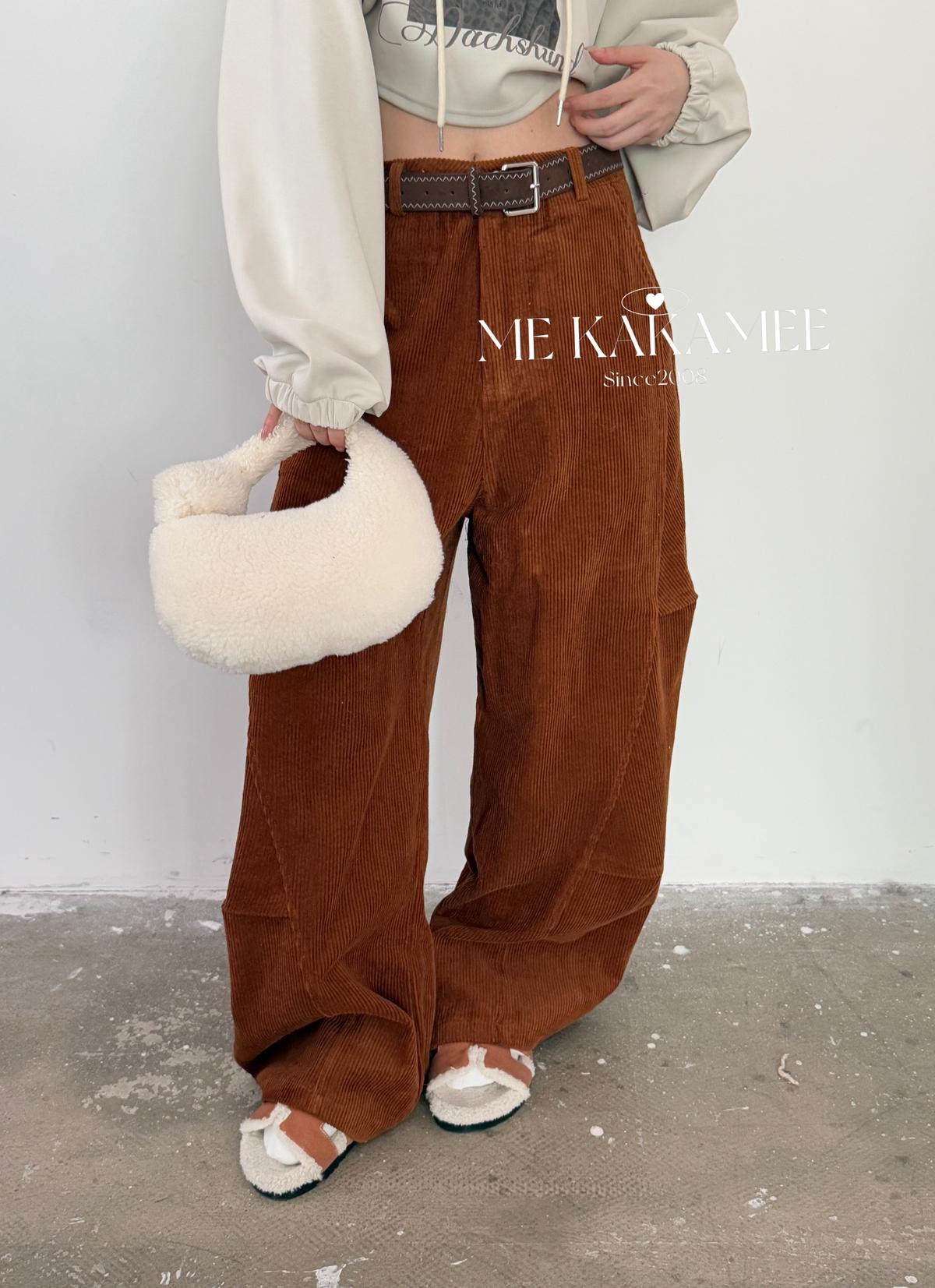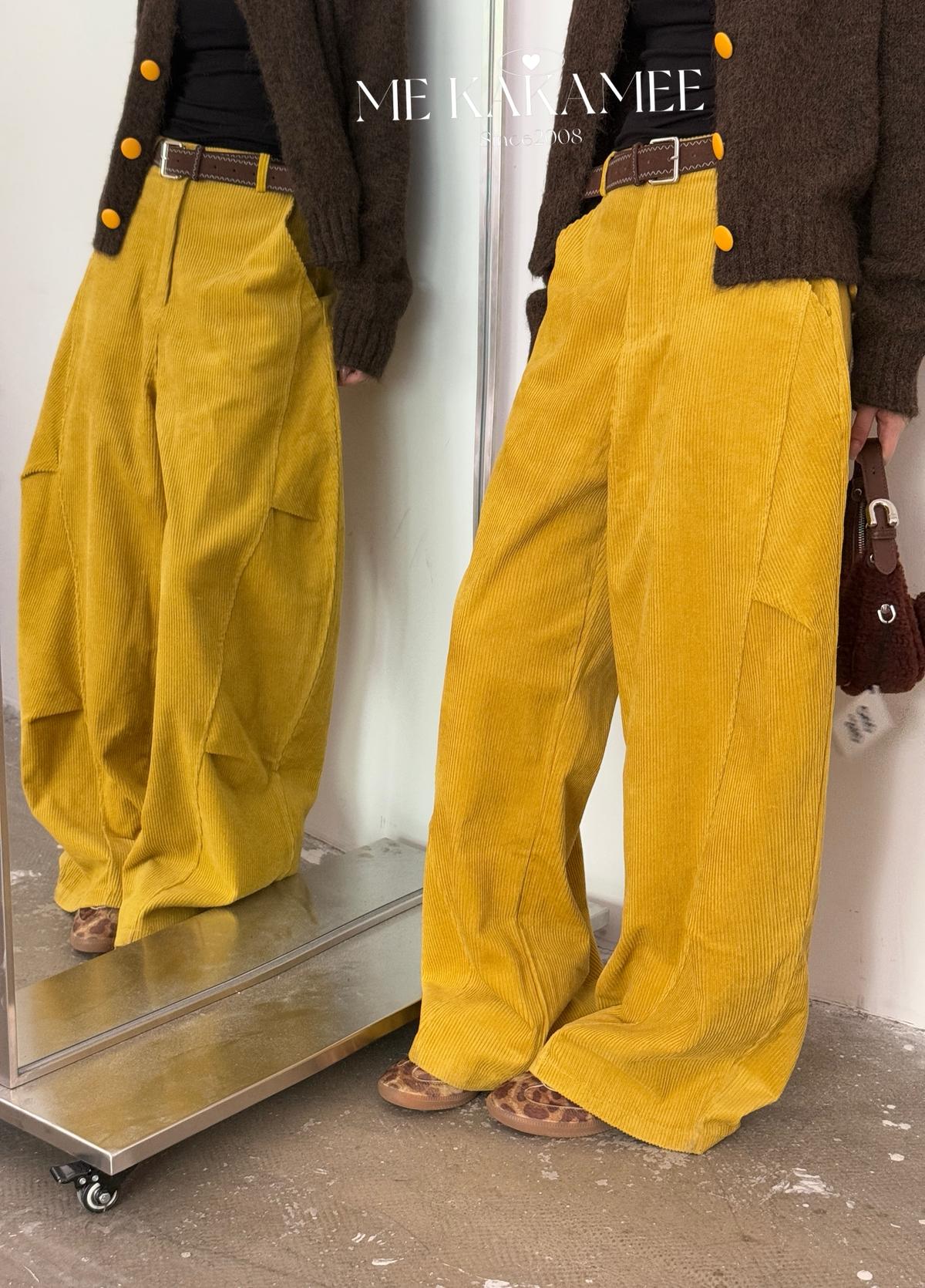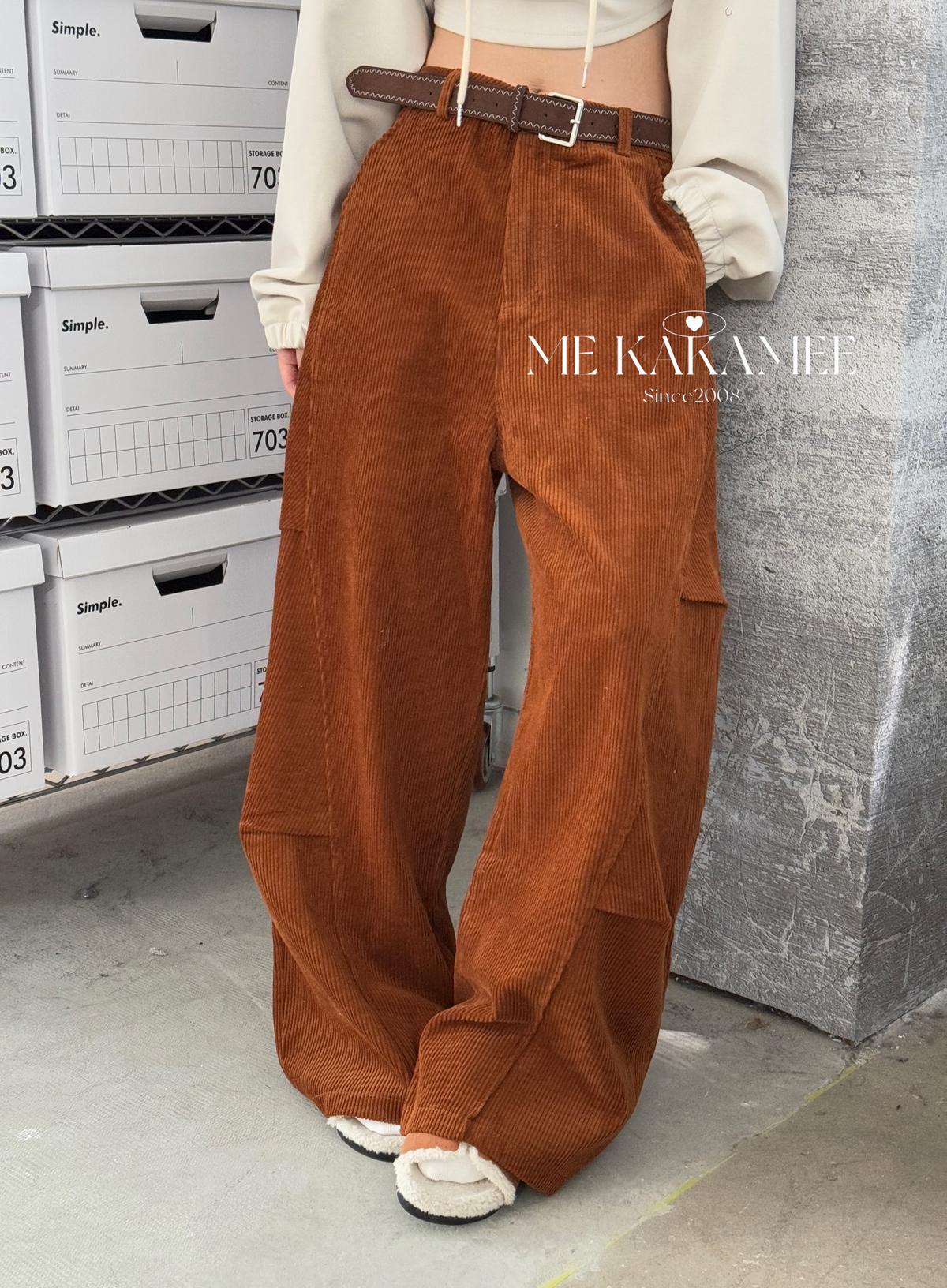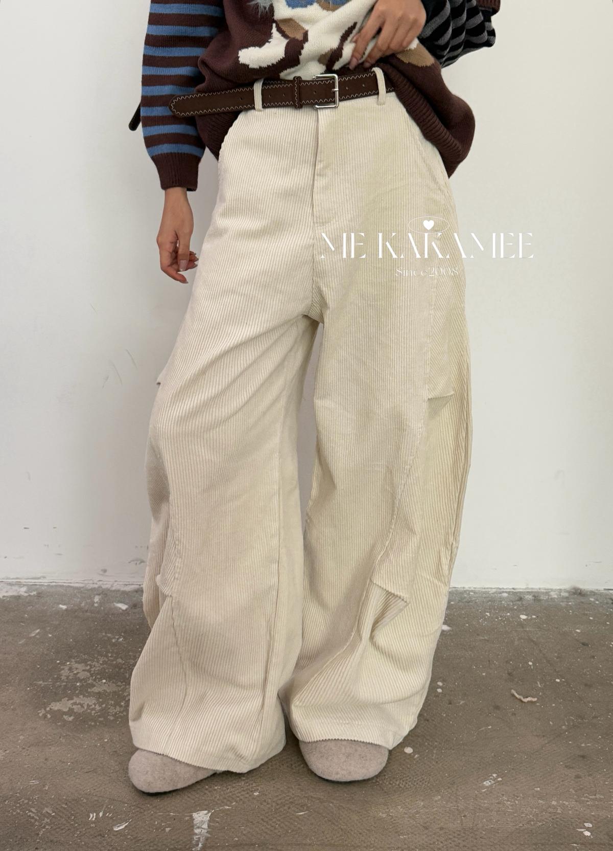 【C7509】秋新品復古燈芯絨立體剪裁彎刀寬鬆顯瘦休閒褲(配腰帶)