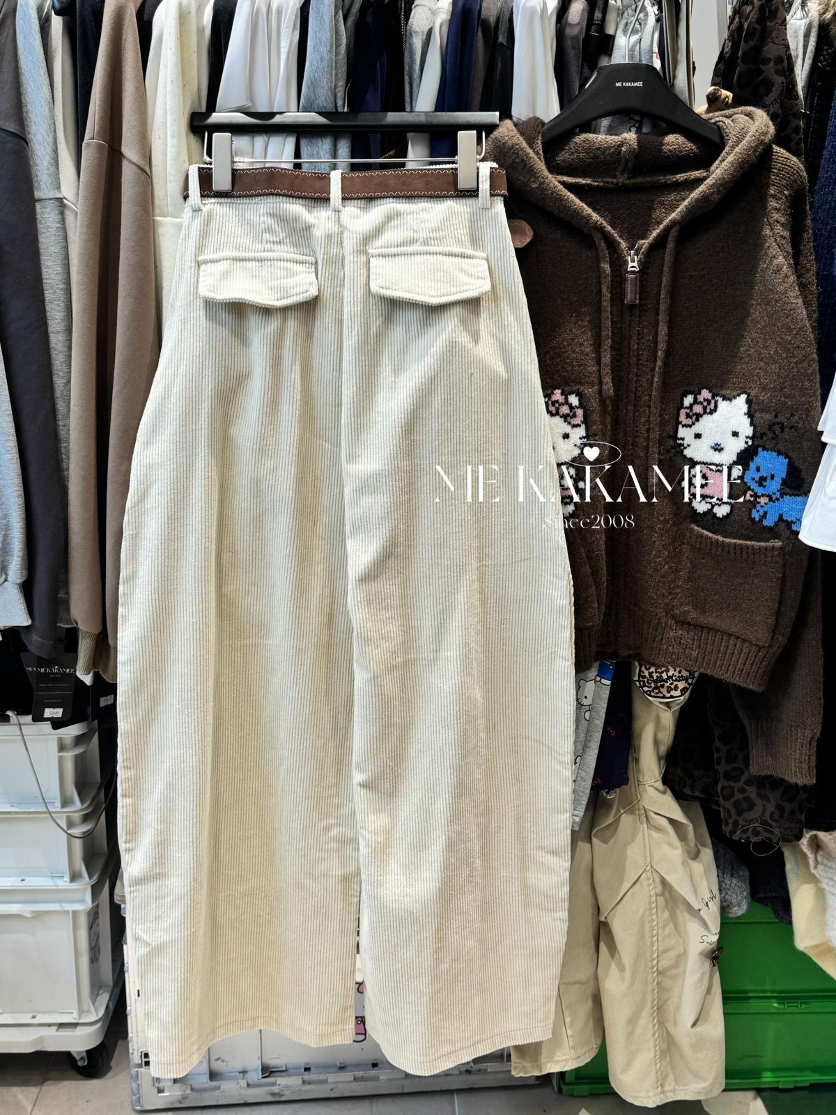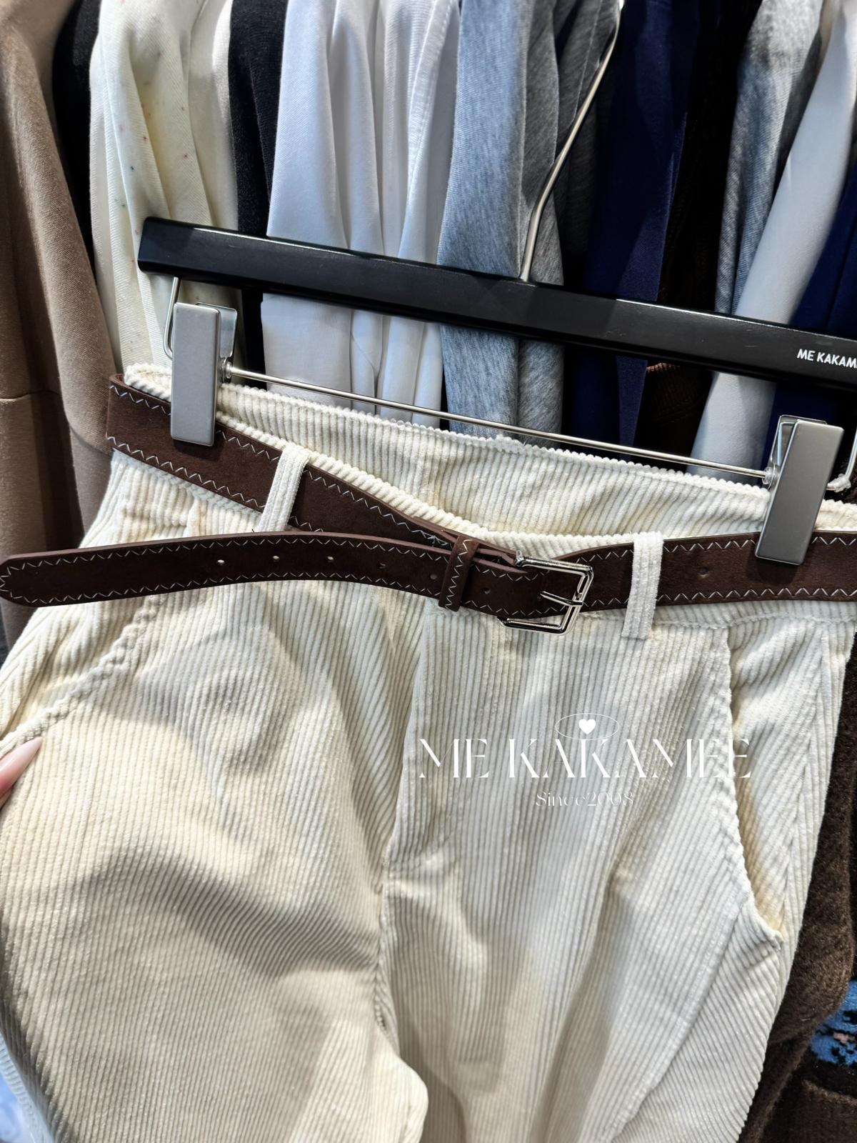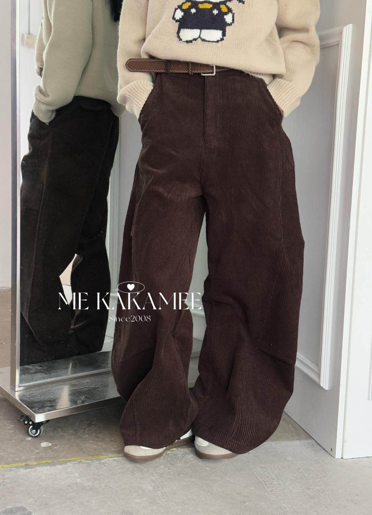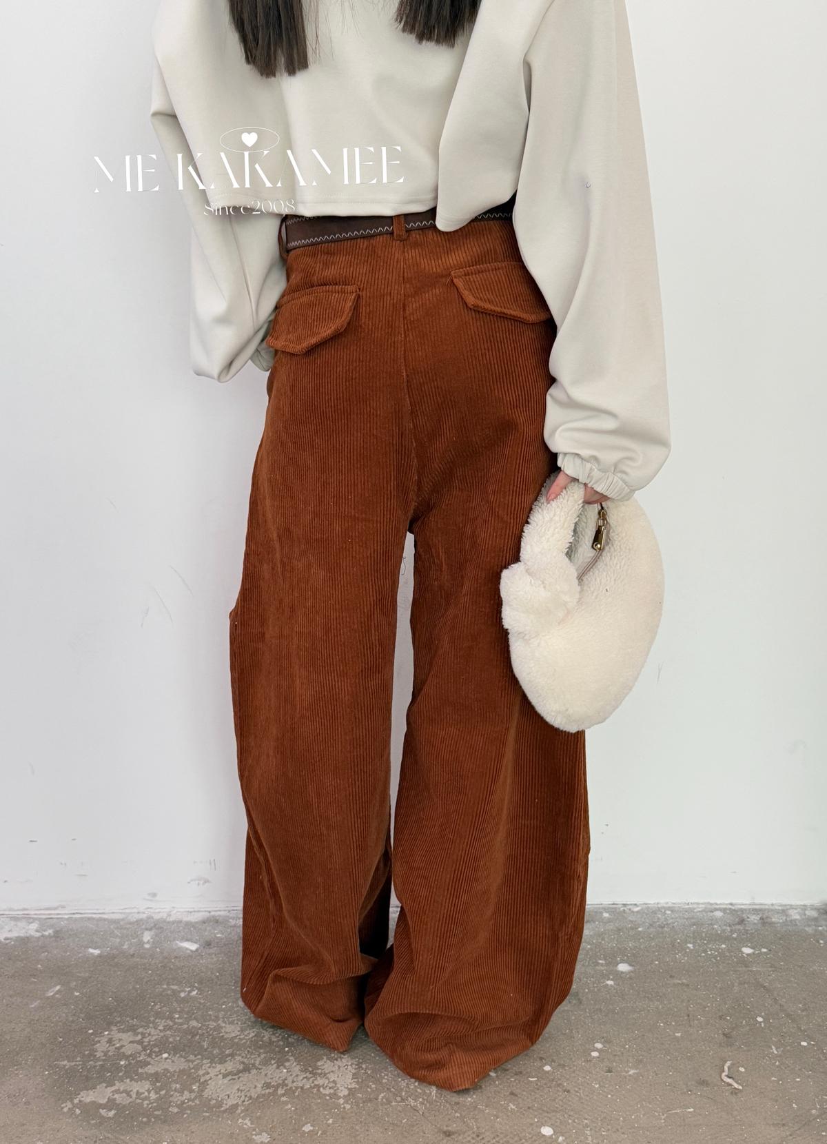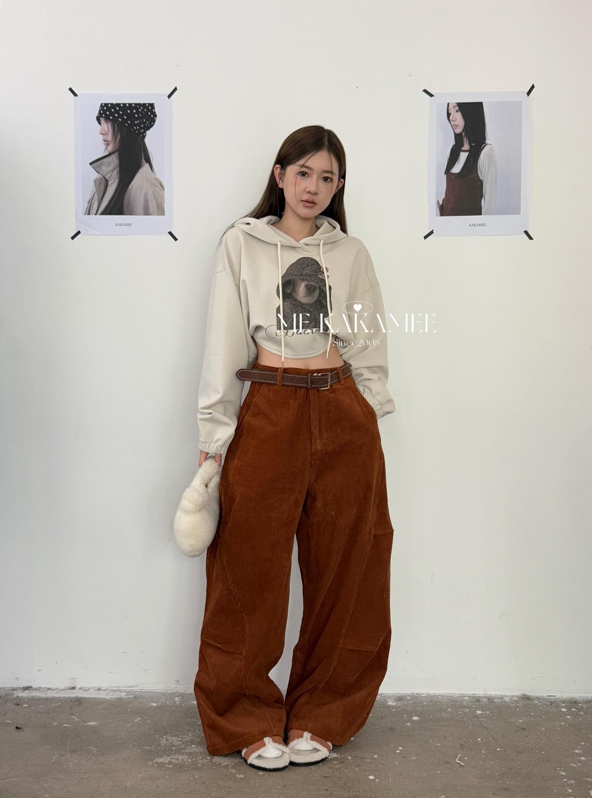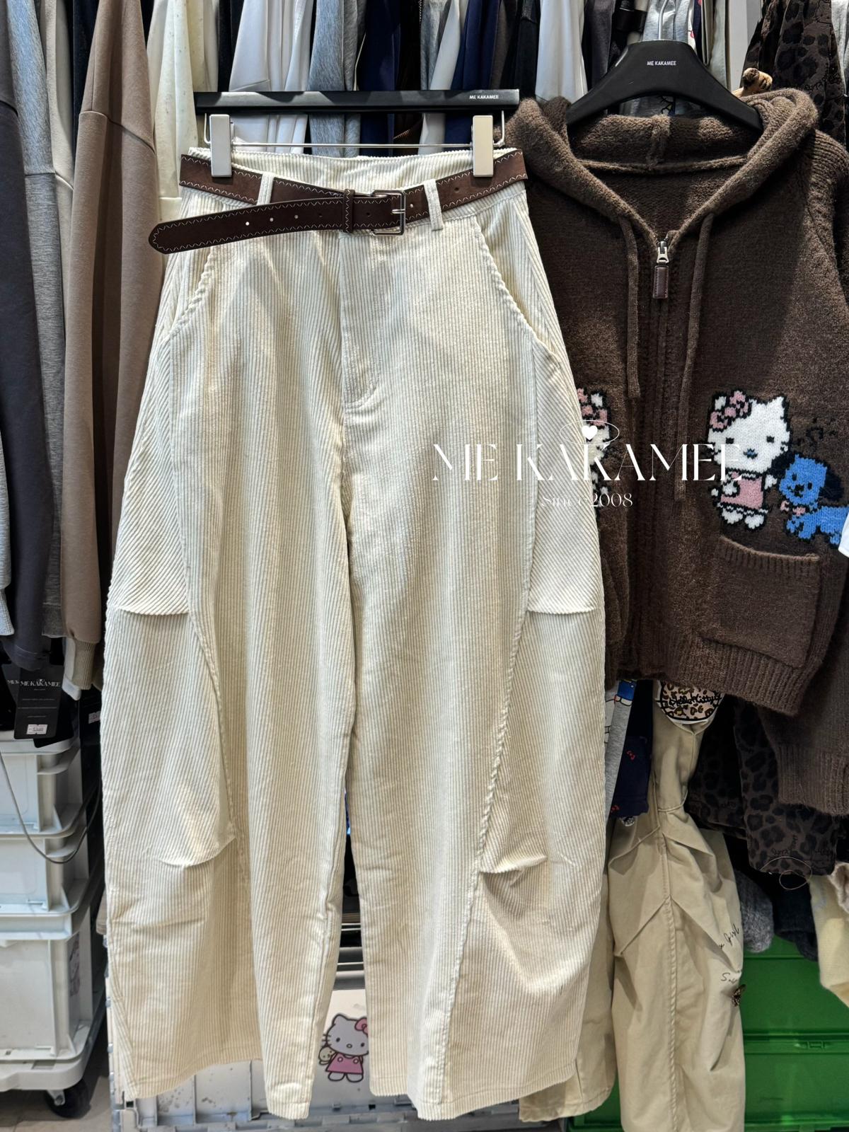 【C7509】秋新品復古燈芯絨立體剪裁彎刀寬鬆顯瘦休閒褲(配腰帶)