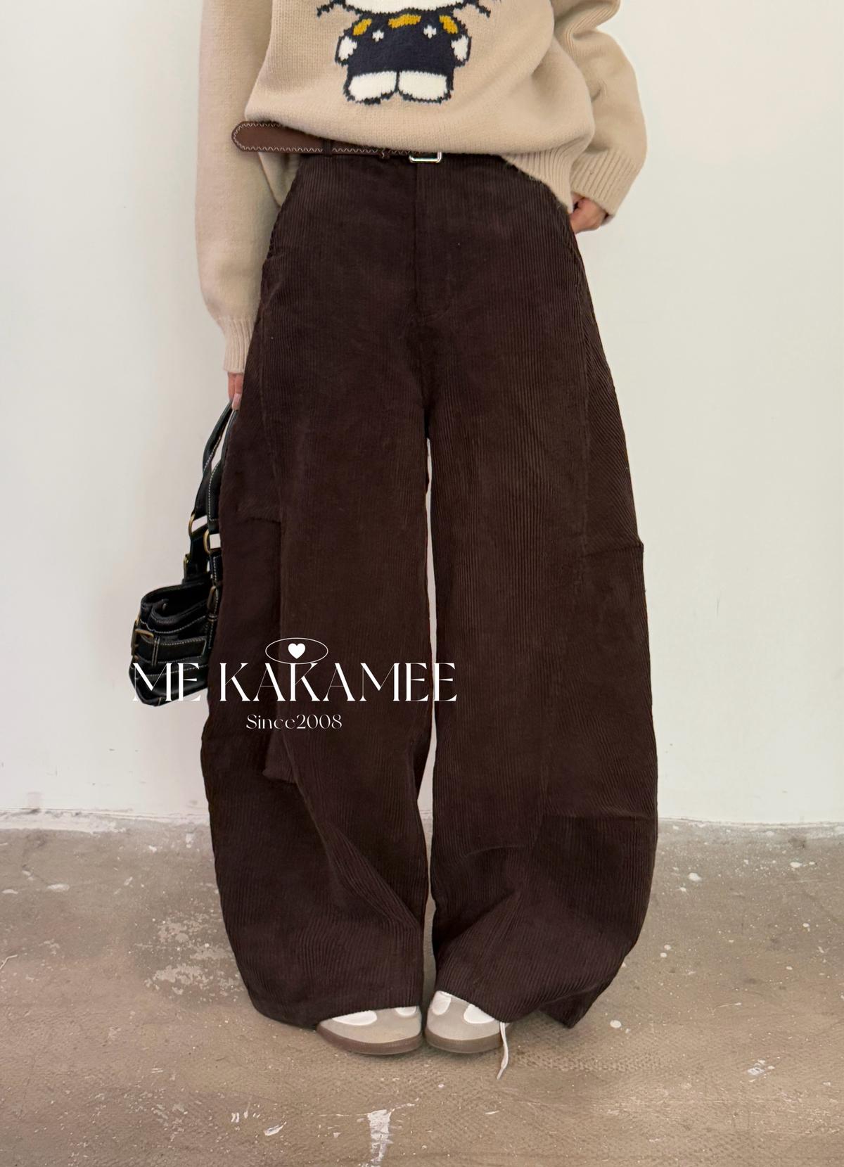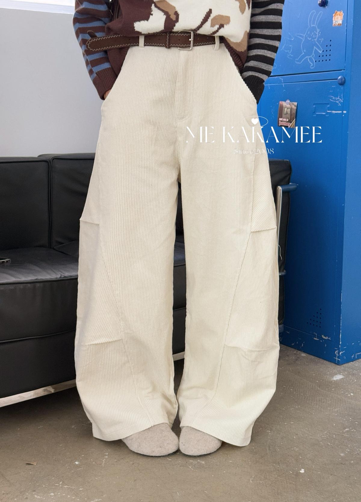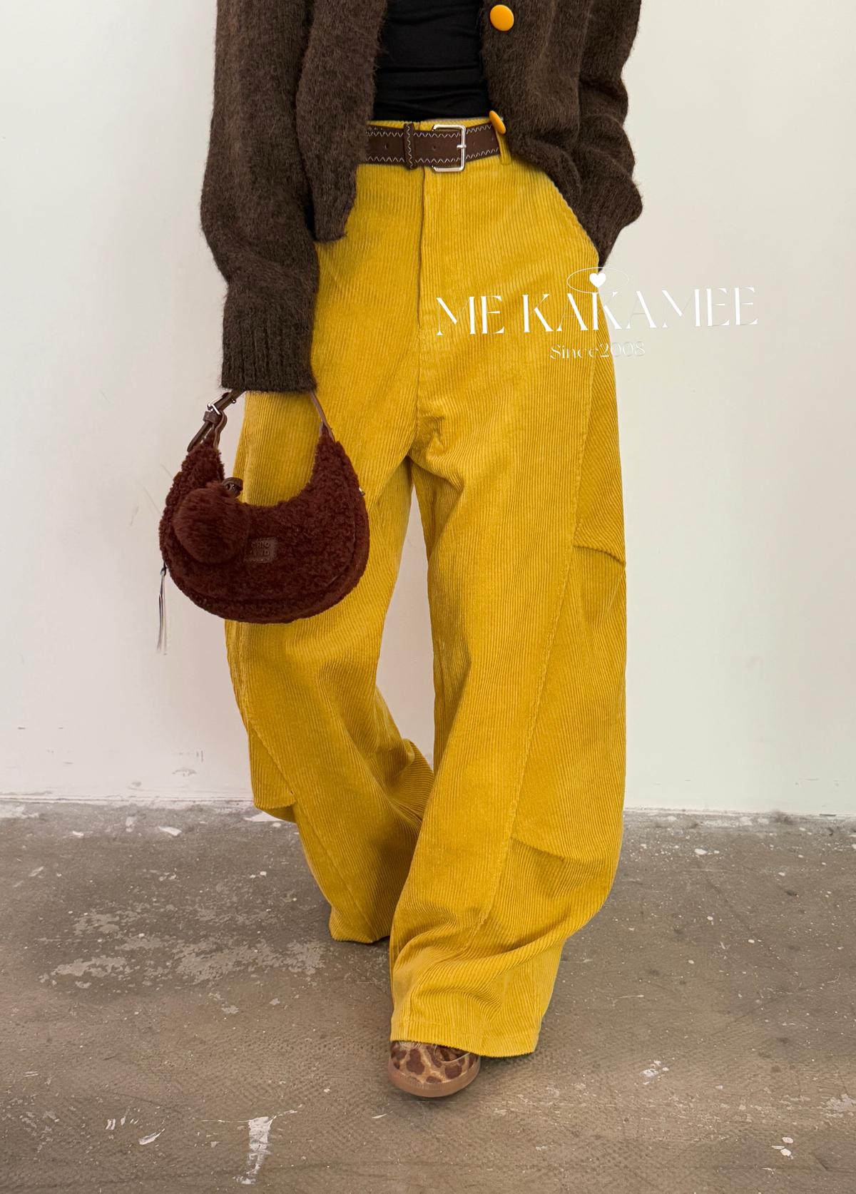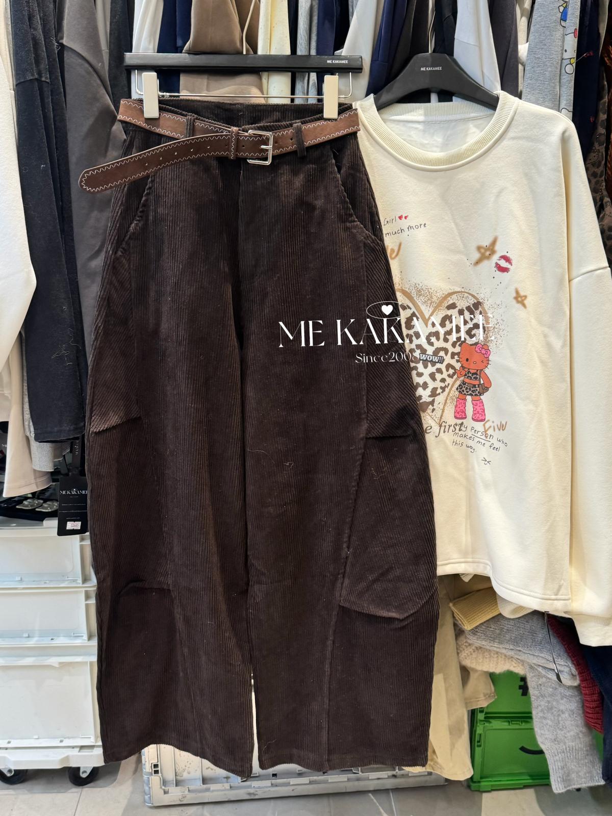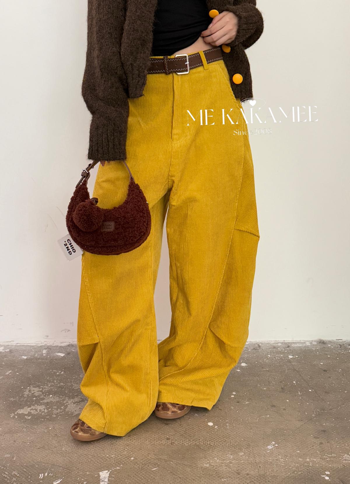 【C7509】秋新品復古燈芯絨立體剪裁彎刀寬鬆顯瘦休閒褲(配腰帶)
