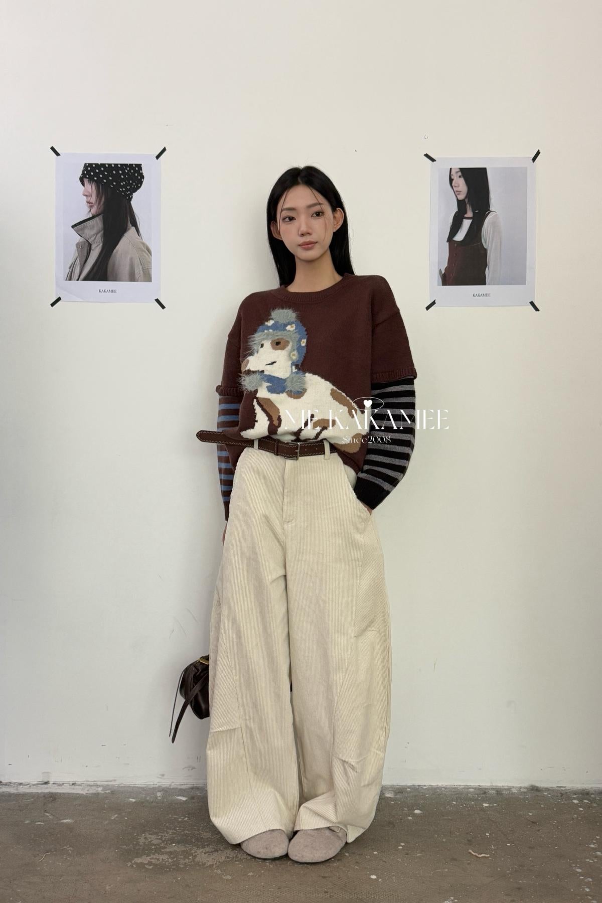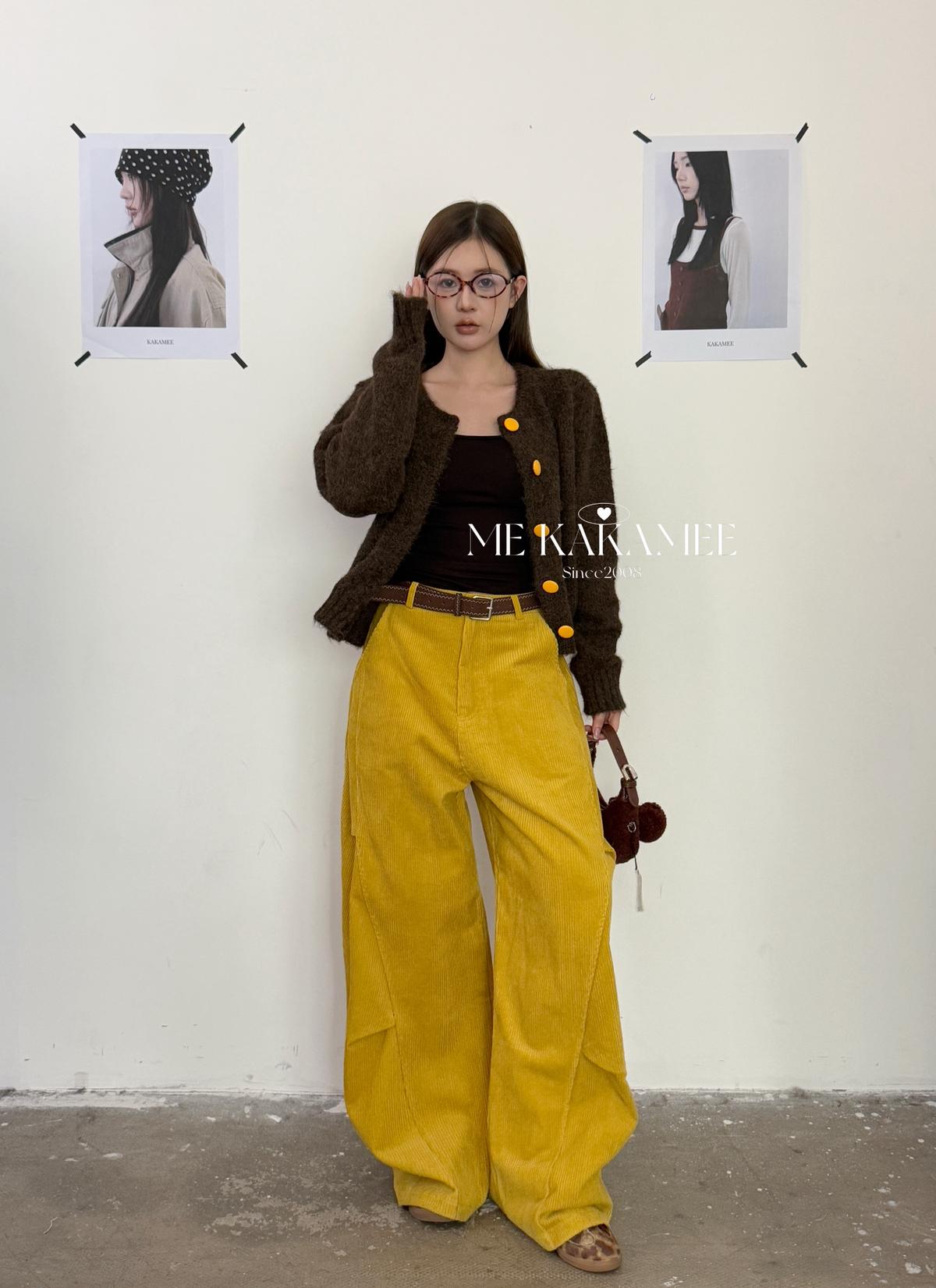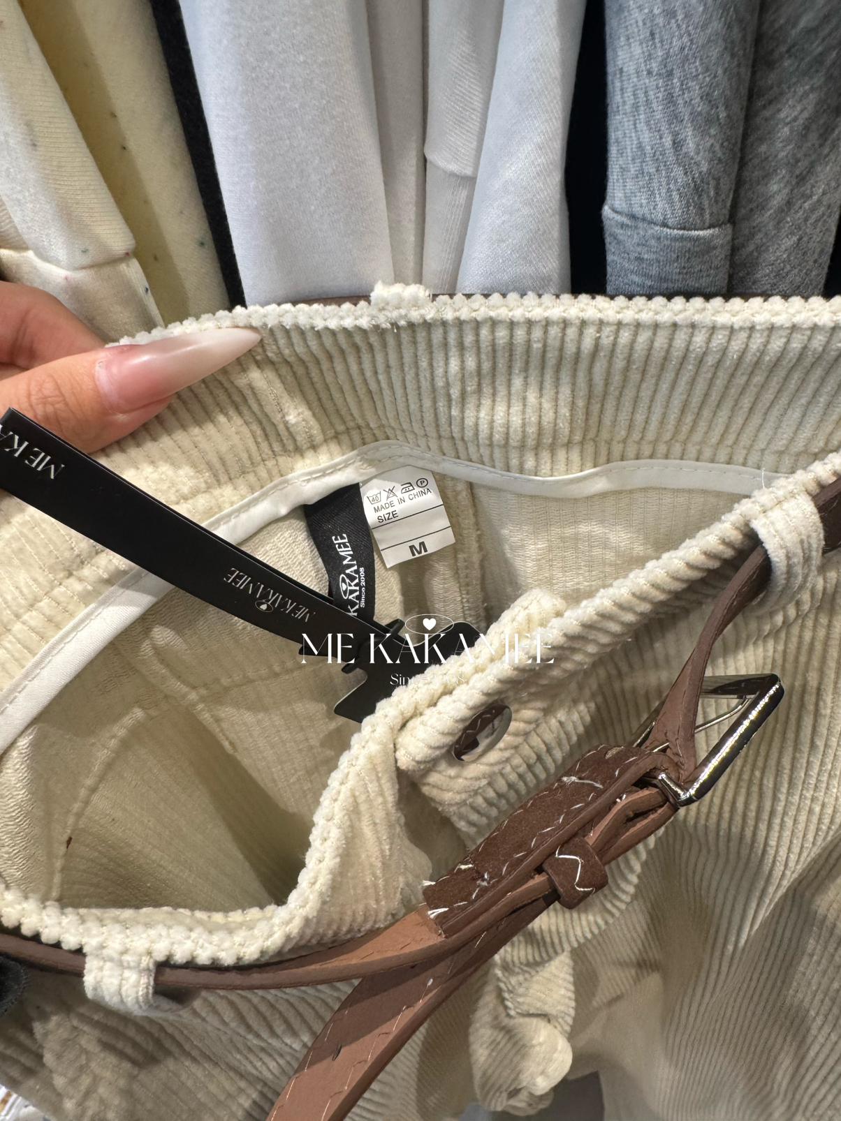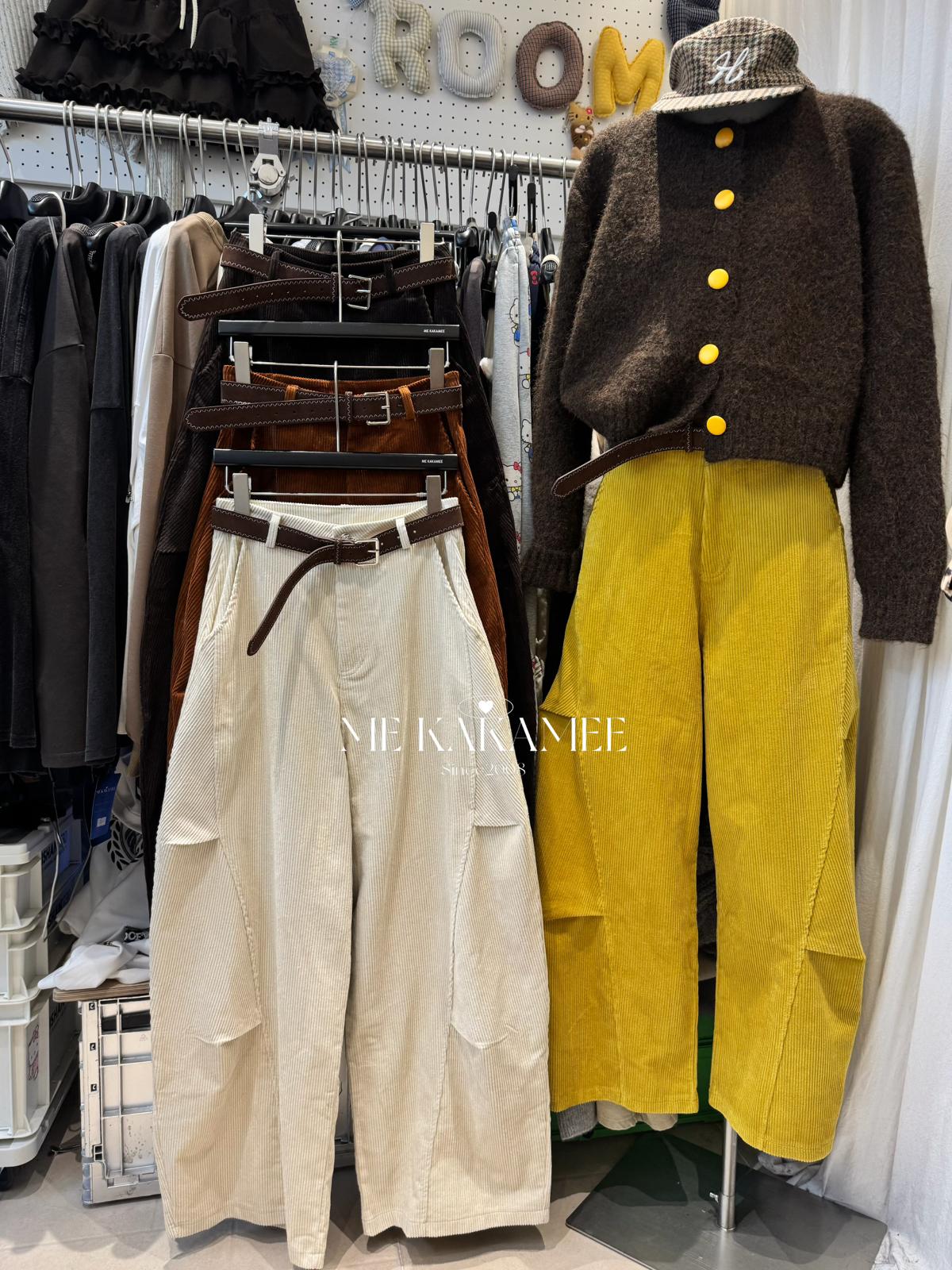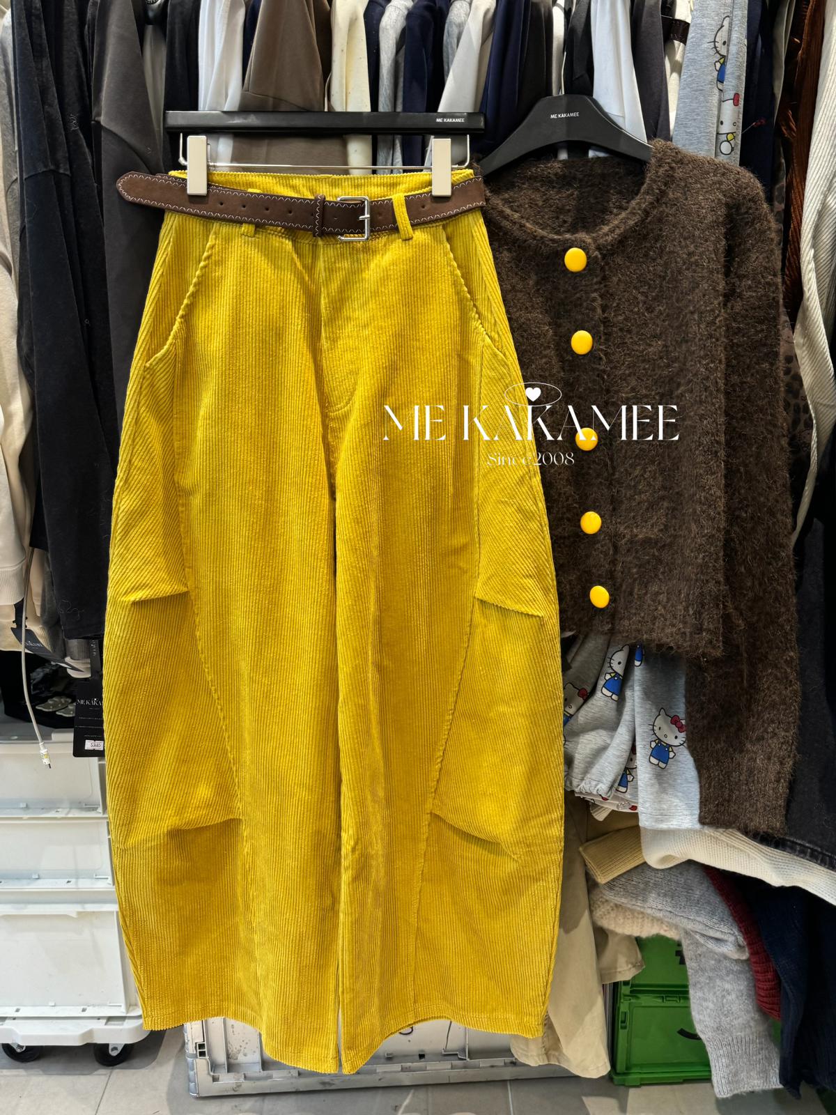 【C7509】秋新品復古燈芯絨立體剪裁彎刀寬鬆顯瘦休閒褲(配腰帶)