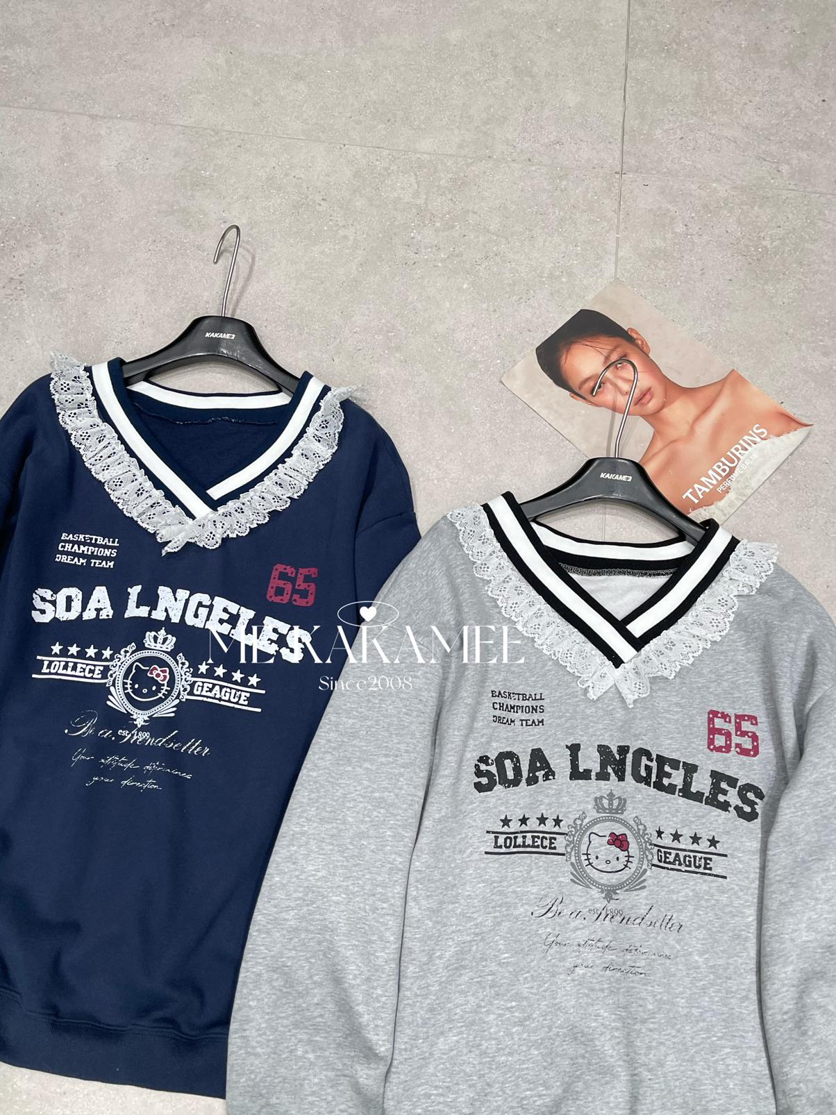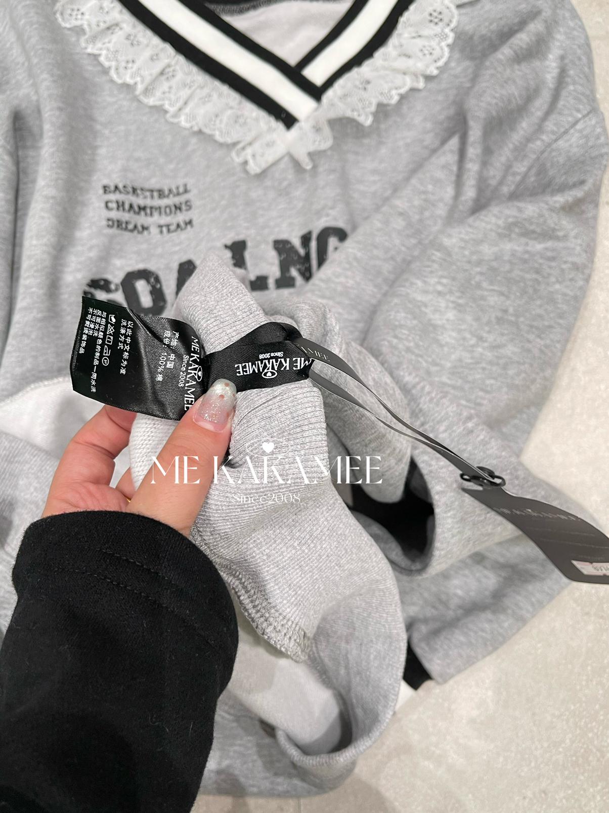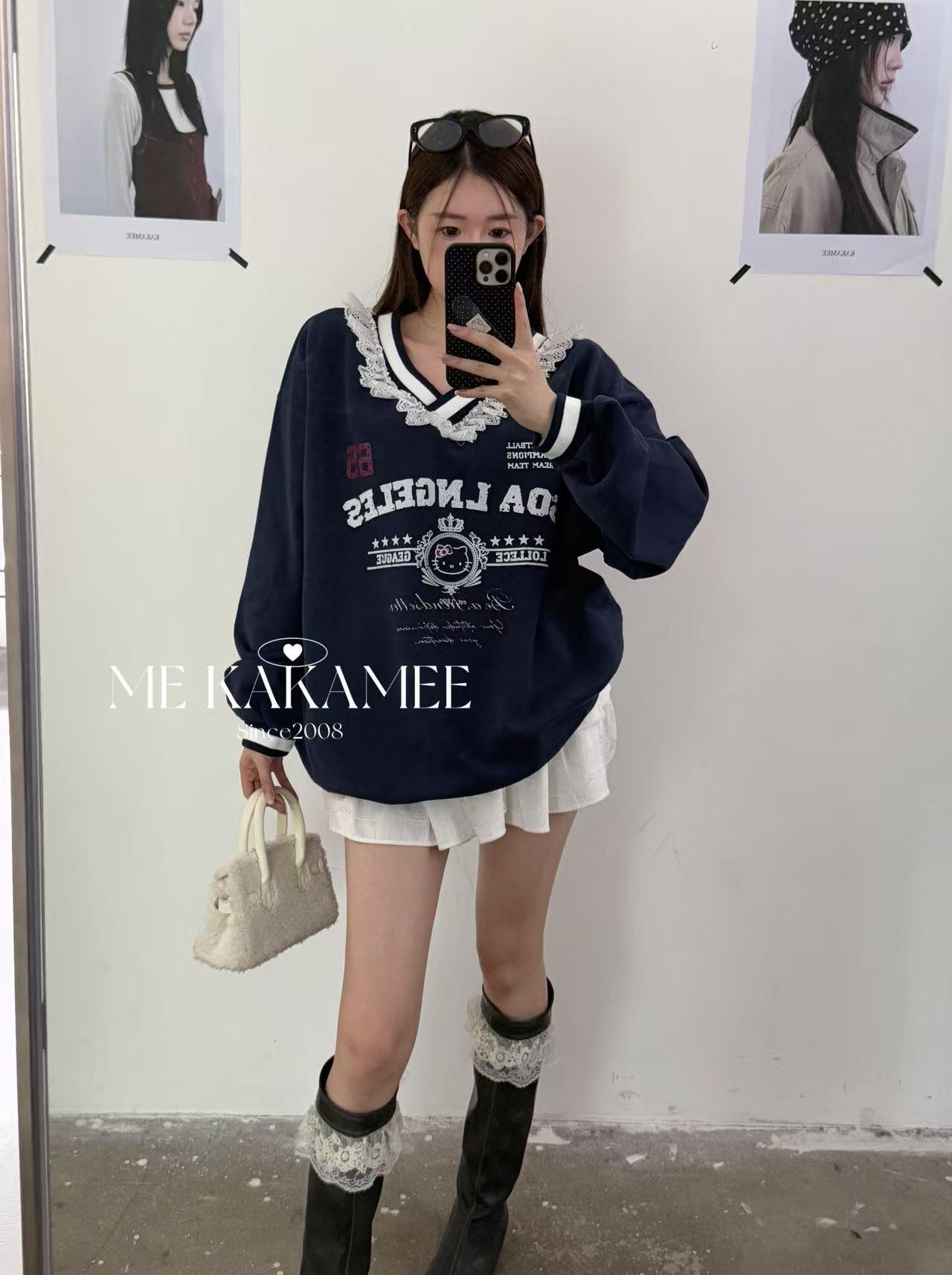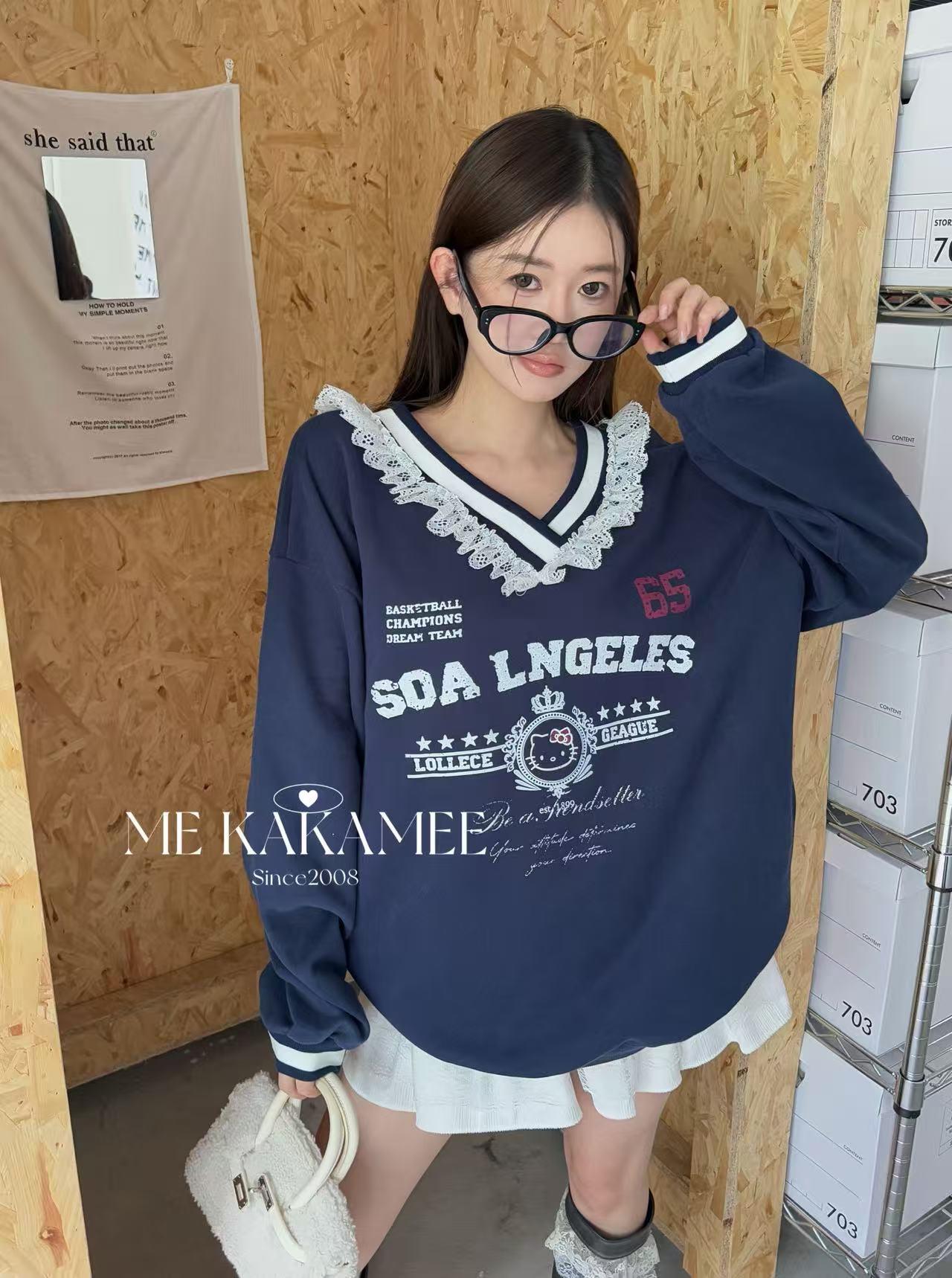 【C7510】秋新品 噴畫KT蕾絲設計薄絨衛衣