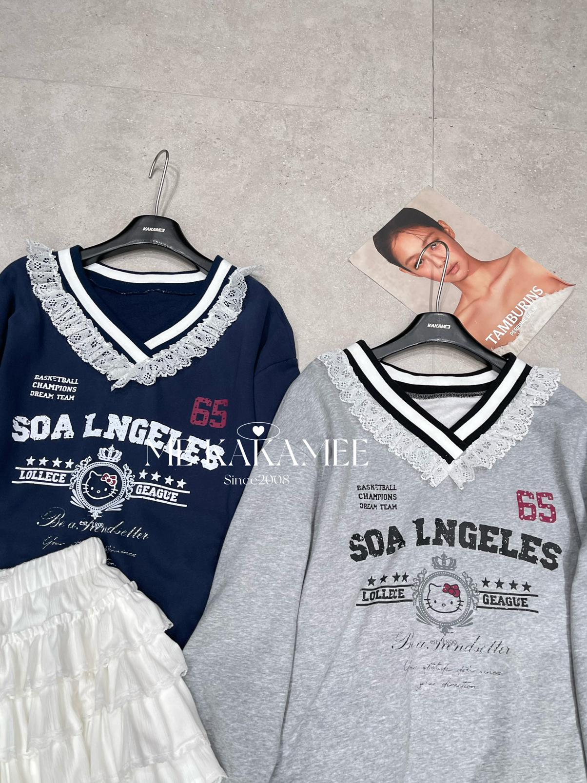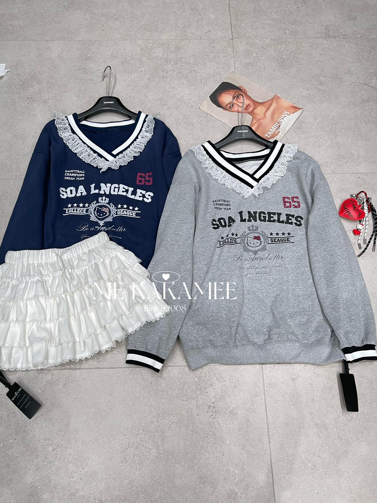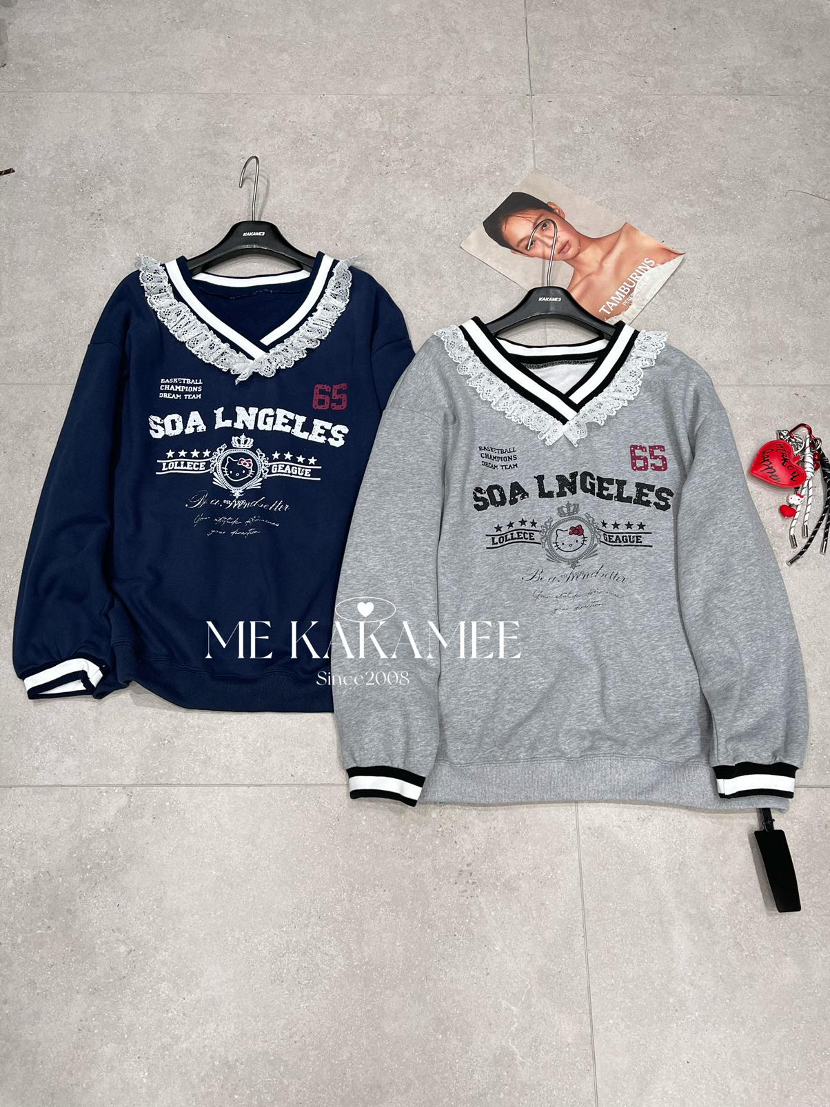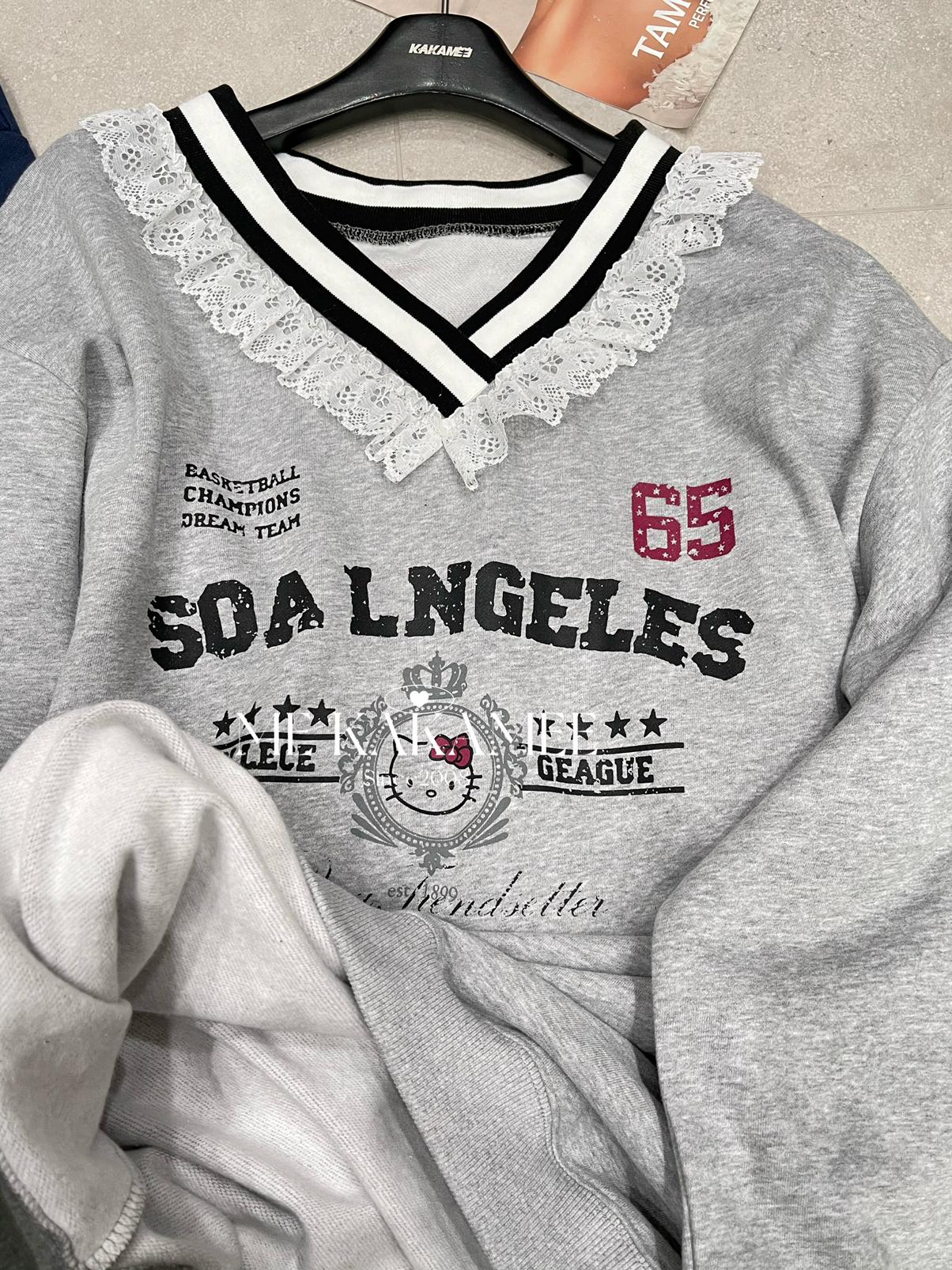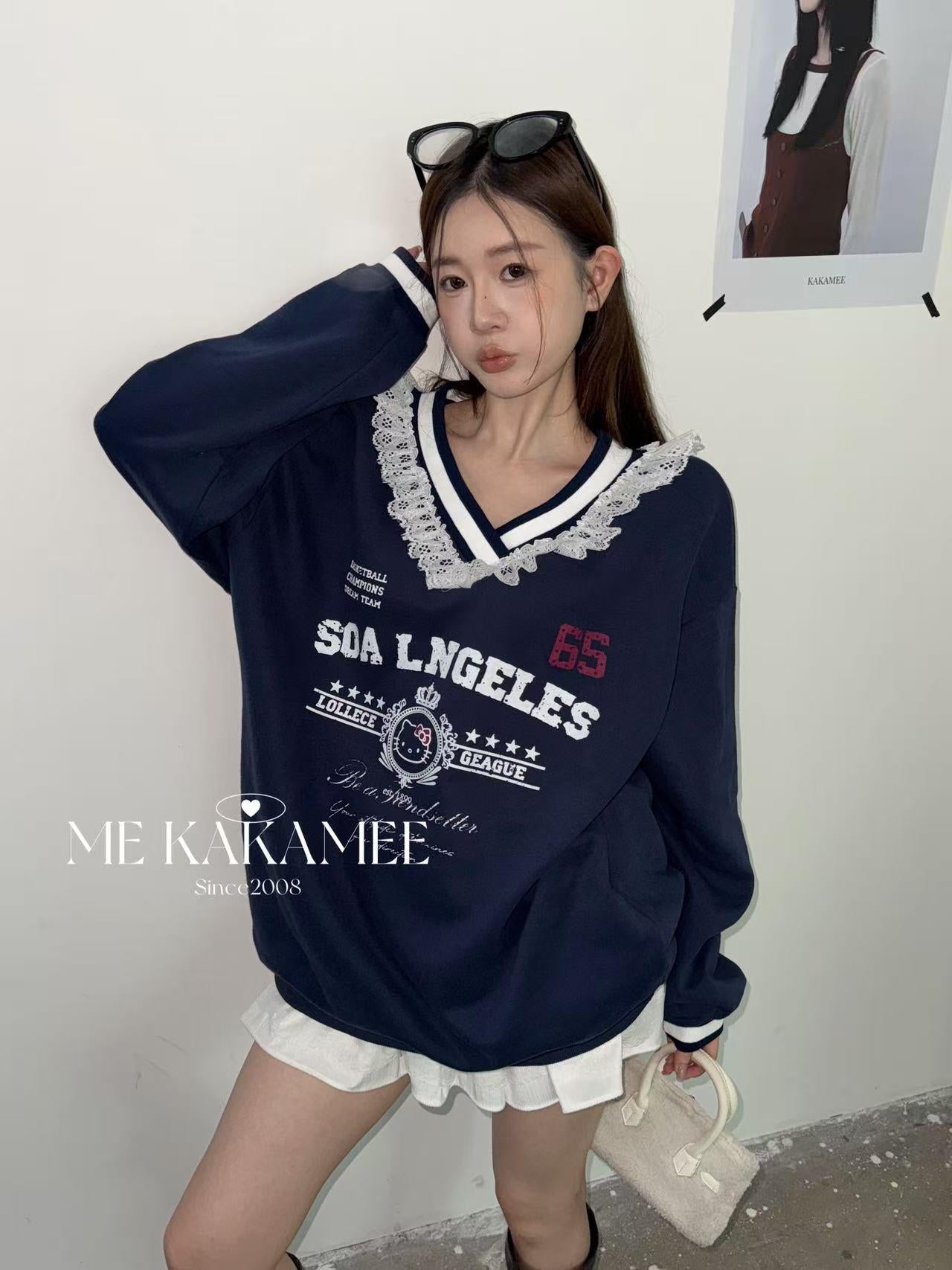 【C7510】秋新品 噴畫KT蕾絲設計薄絨衛衣
