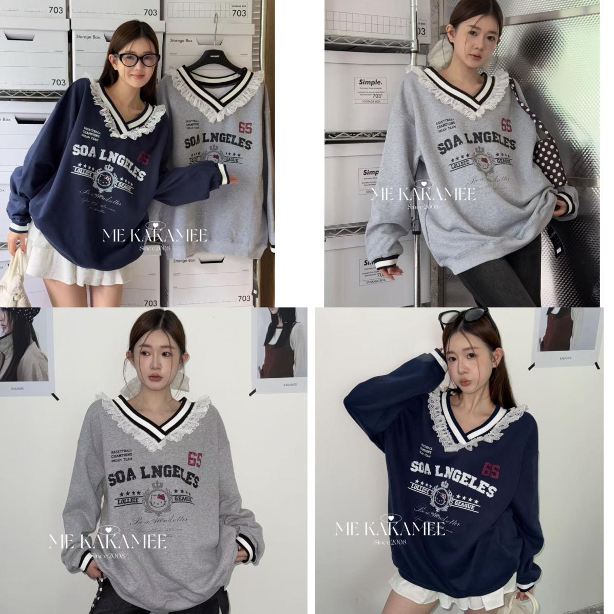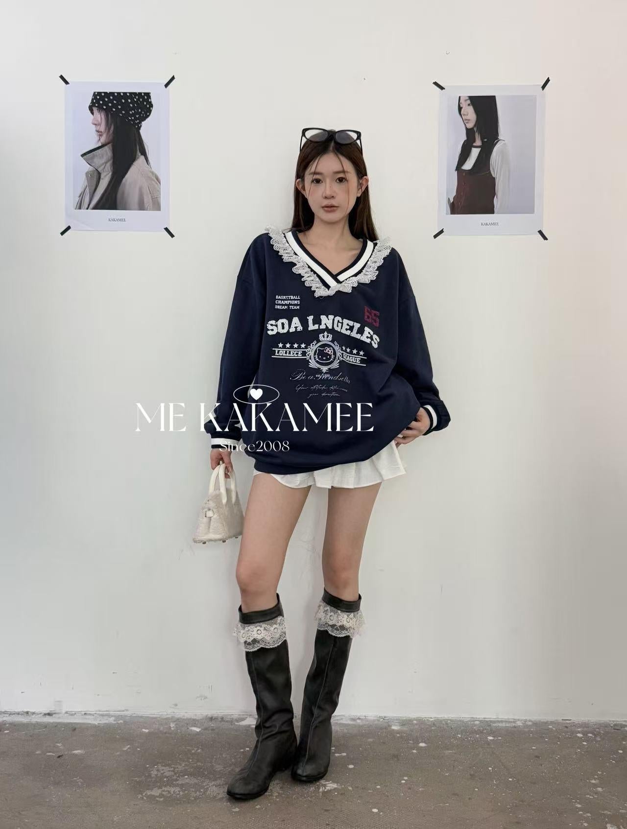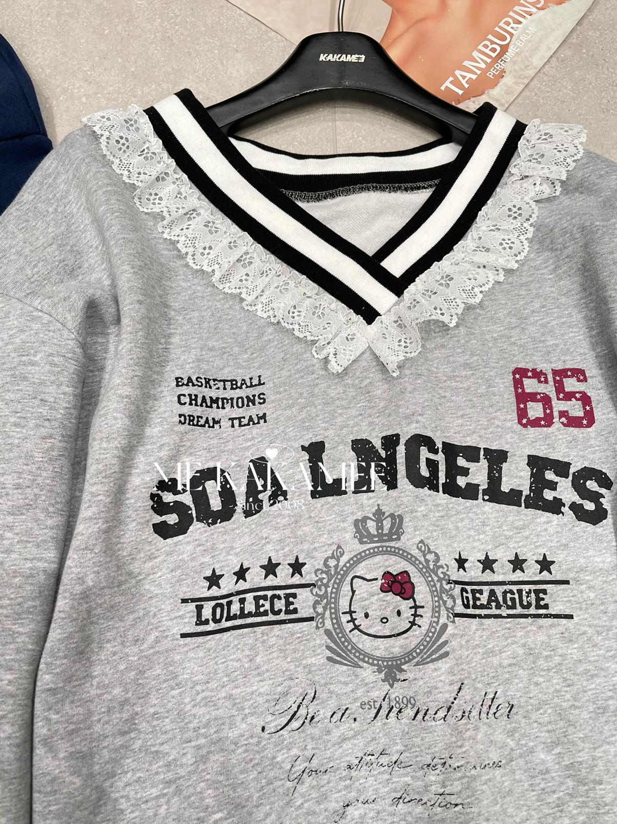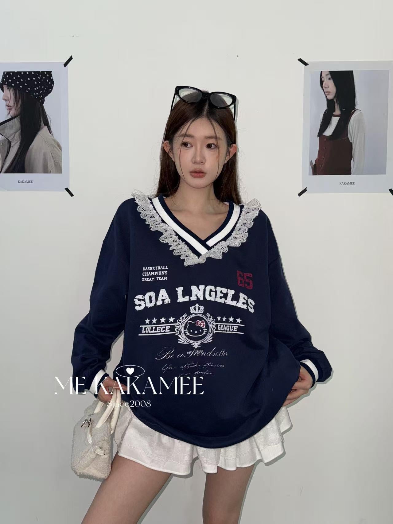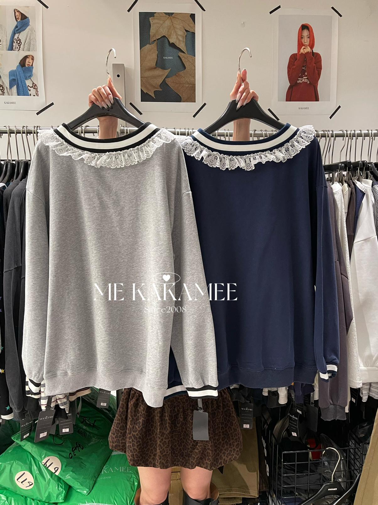 【C7510】秋新品 噴畫KT蕾絲設計薄絨衛衣