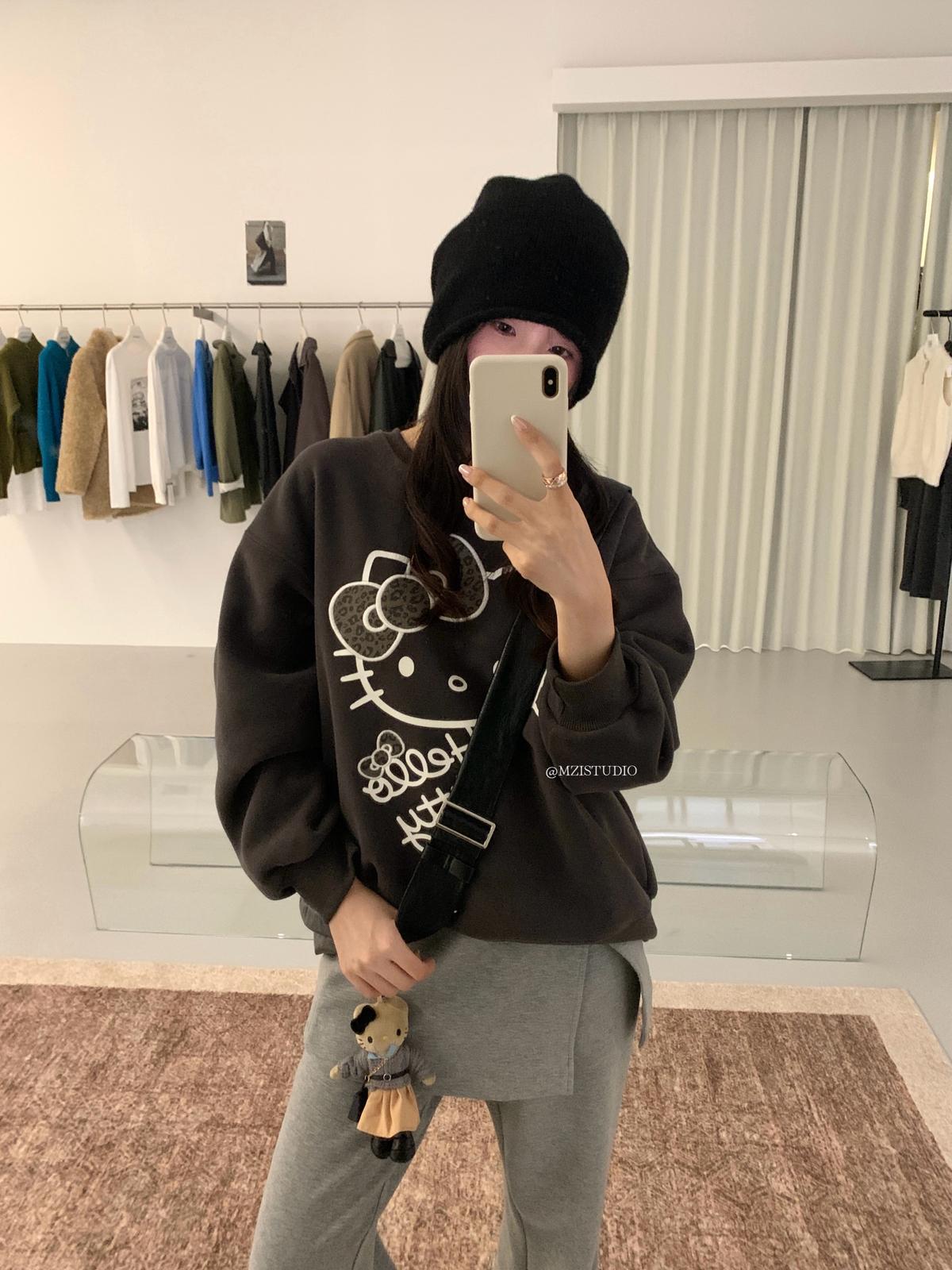 【C7514】超絕活力感冬季韓標刺繡kt腦袋減齡少女感套頭暖和衛衣(不配披肩)