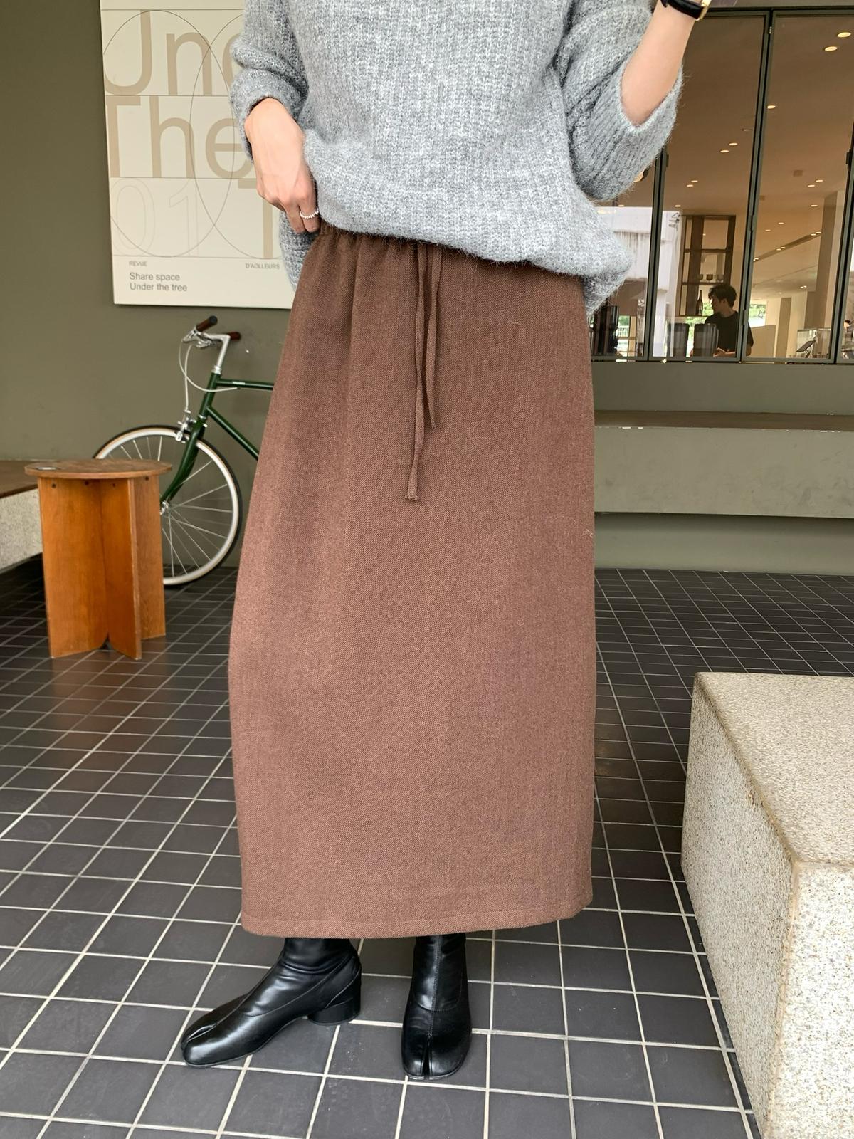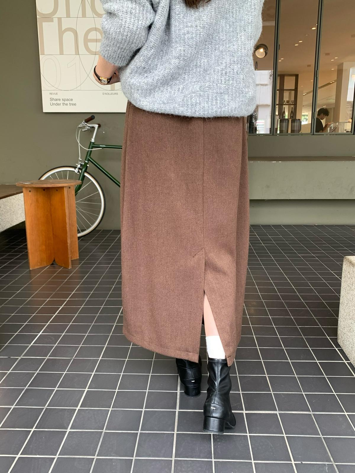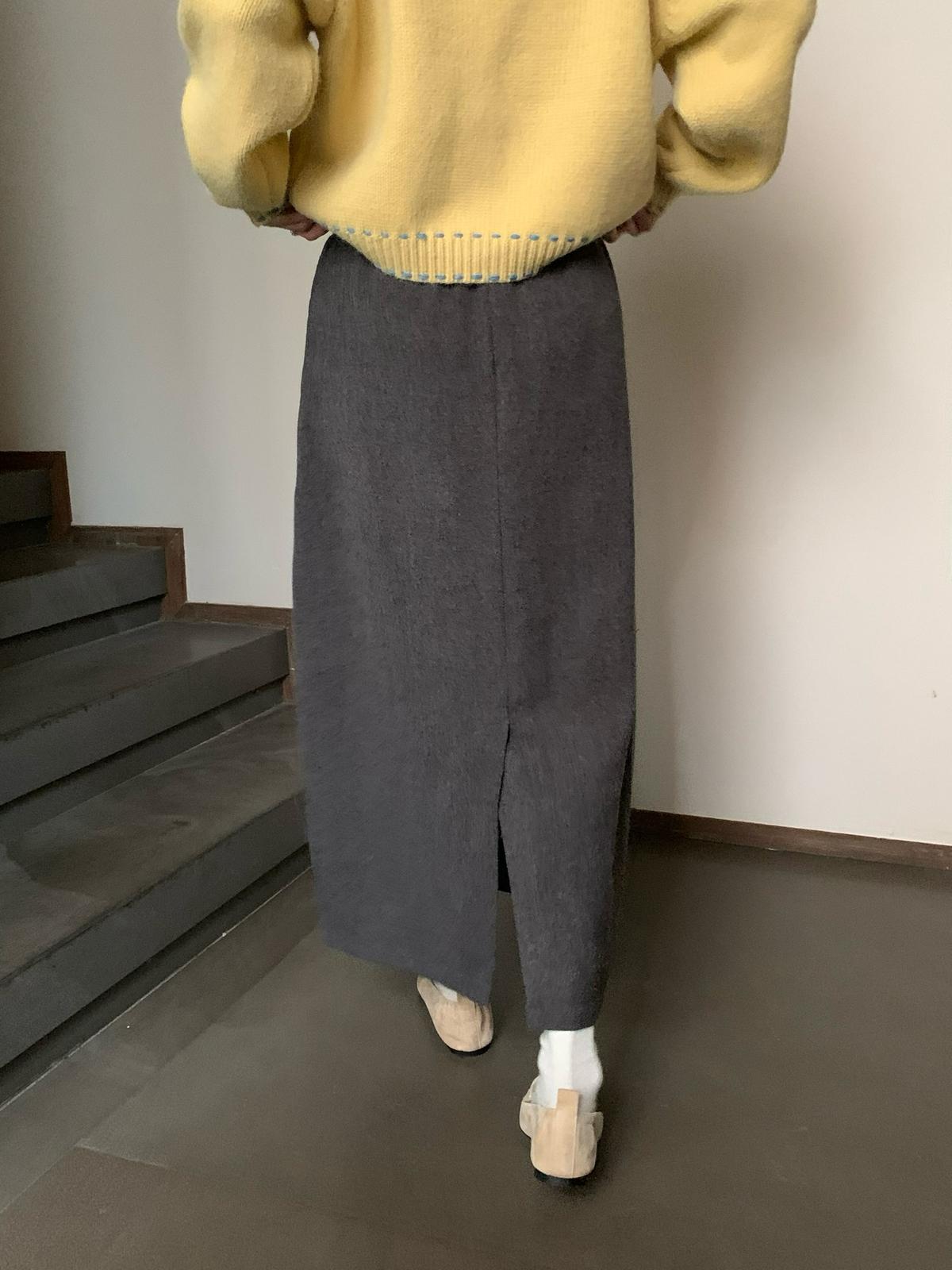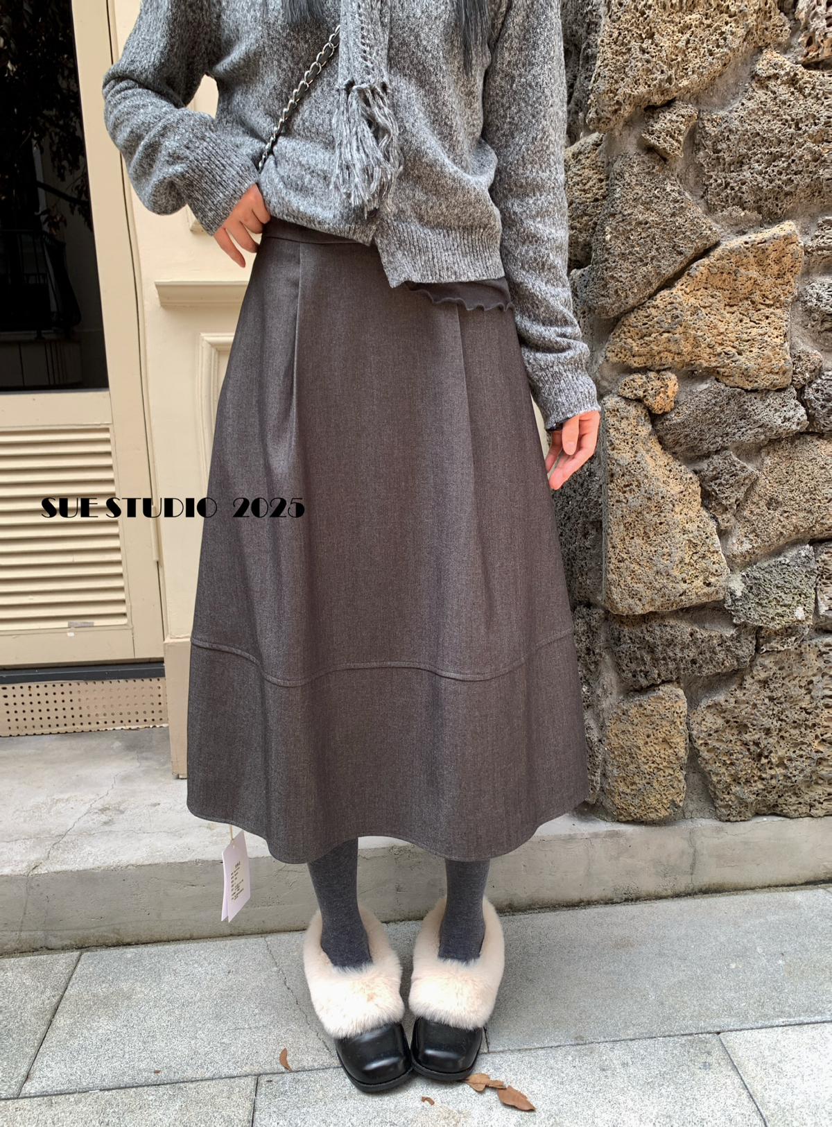 【C7525】高級感呢料鬆緊腰A字鬆緊腰半身裙(含10%羊毛)