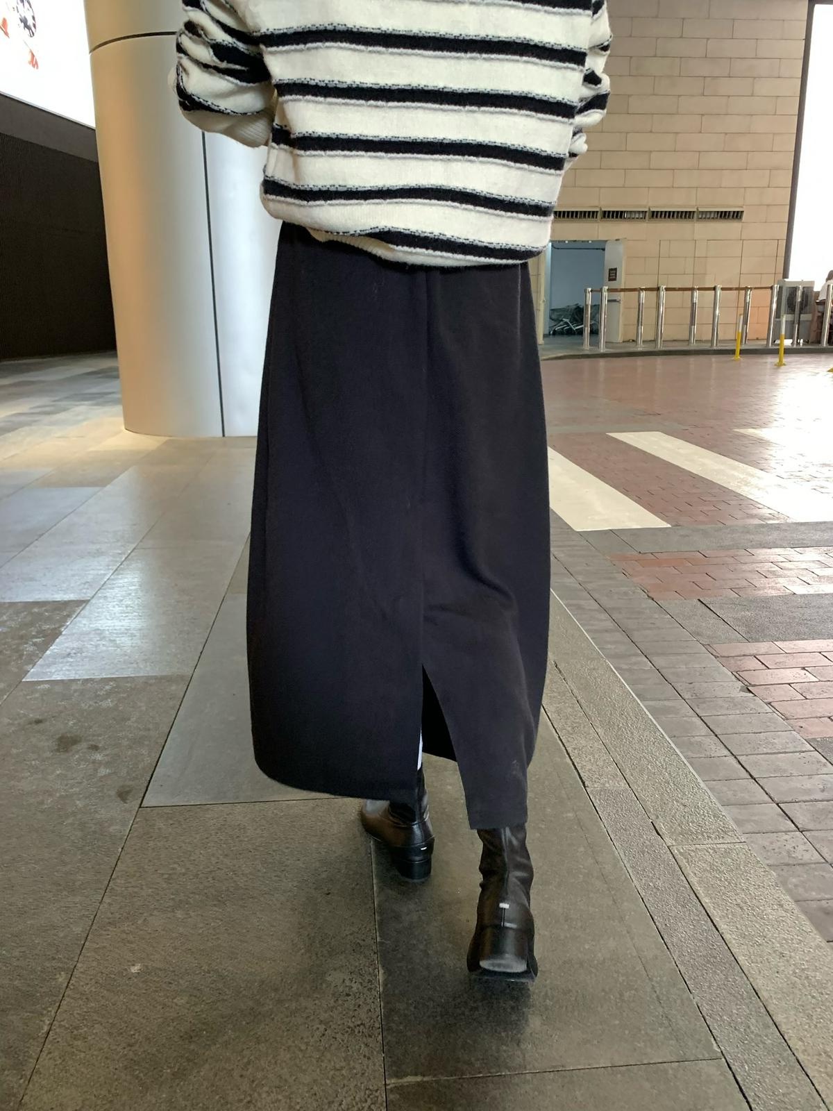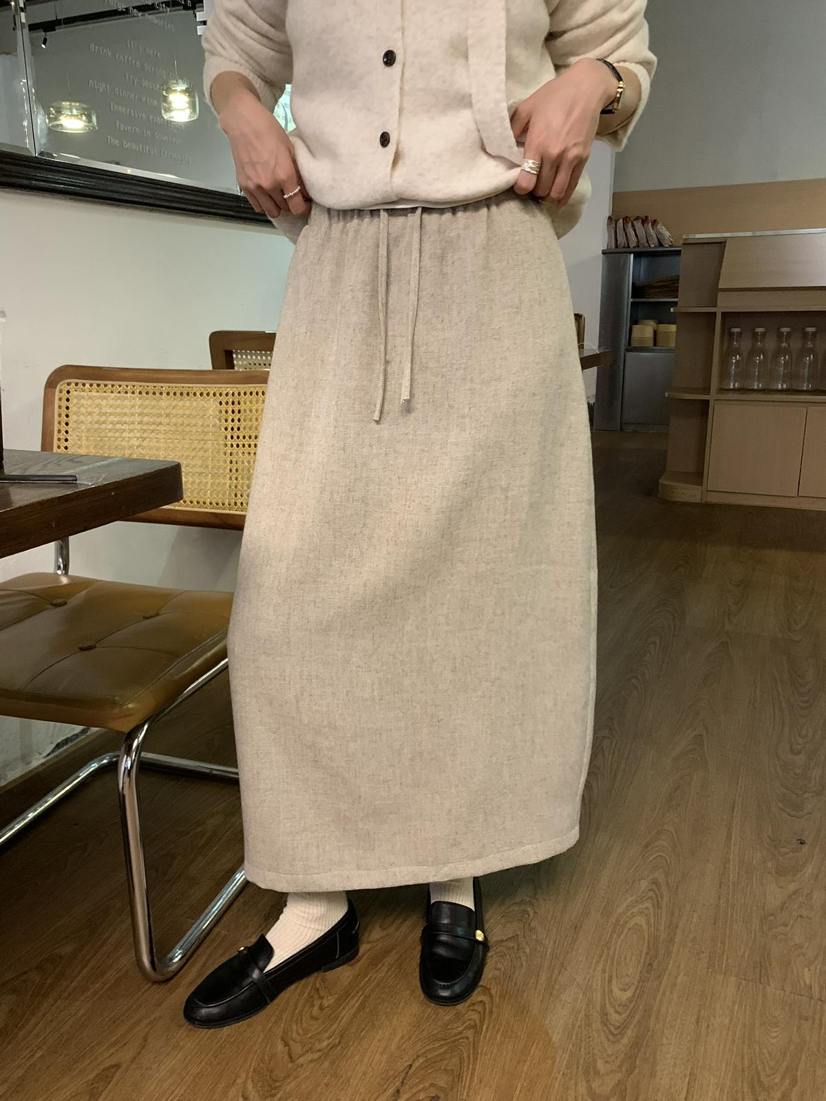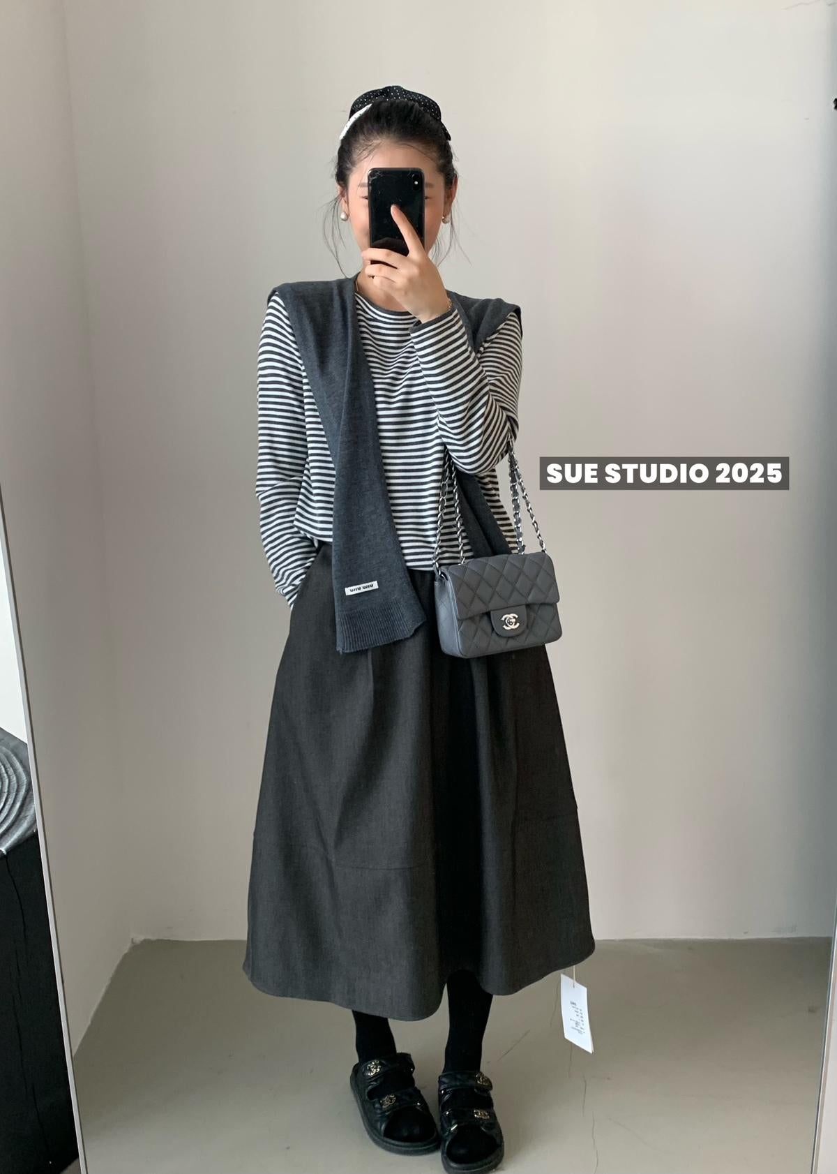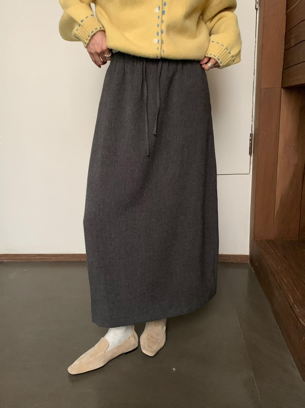【C7525】高級感呢料鬆緊腰A字鬆緊腰半身裙(含10%羊毛)