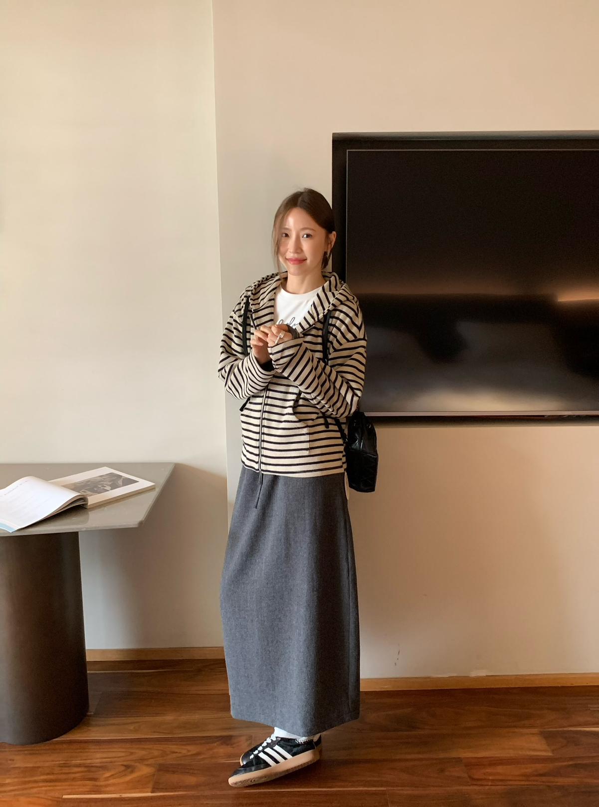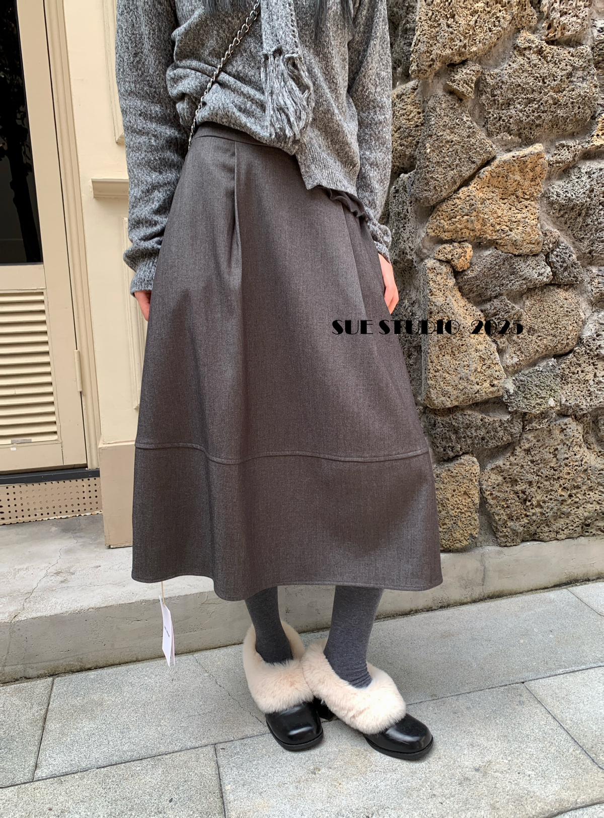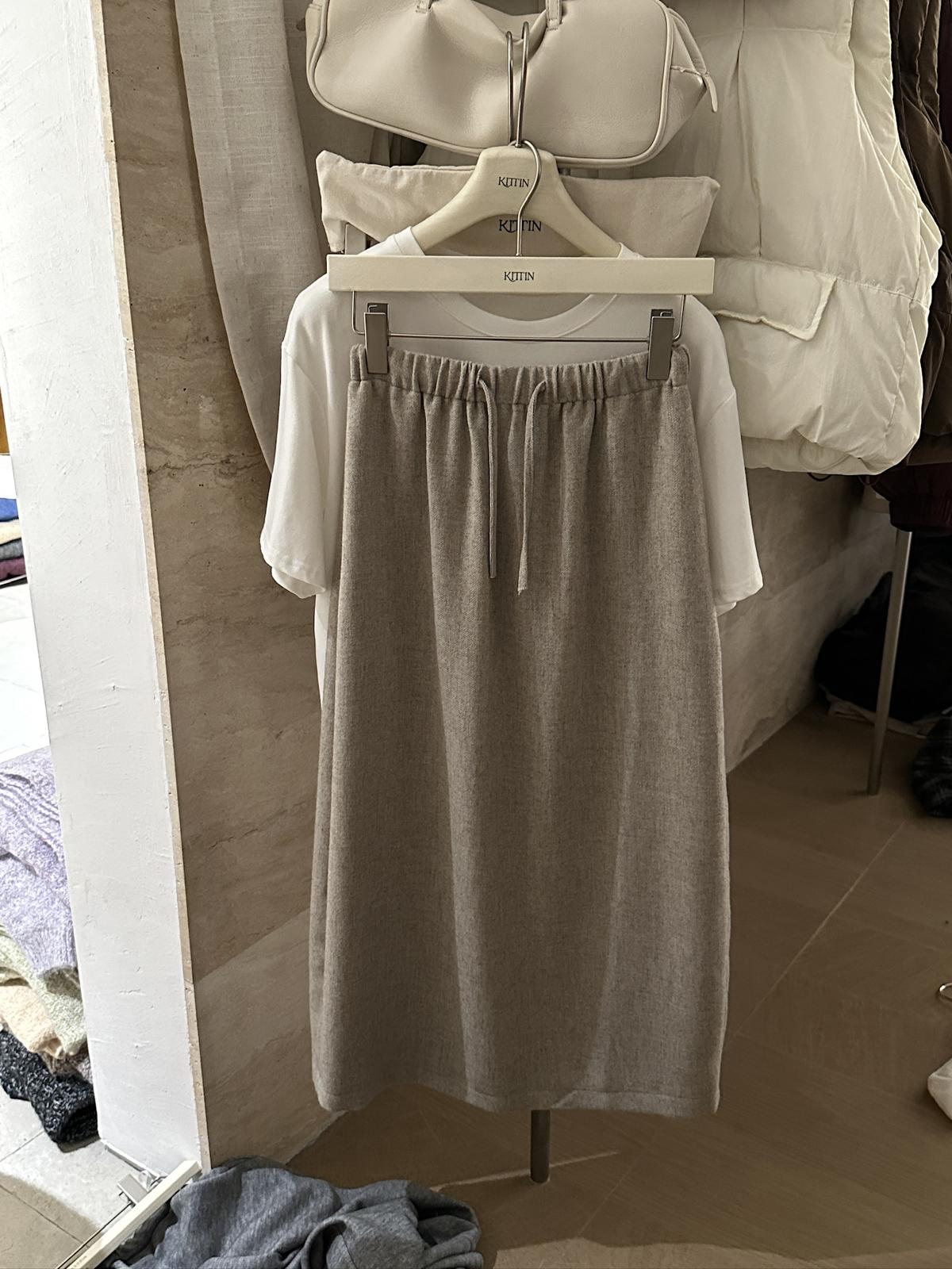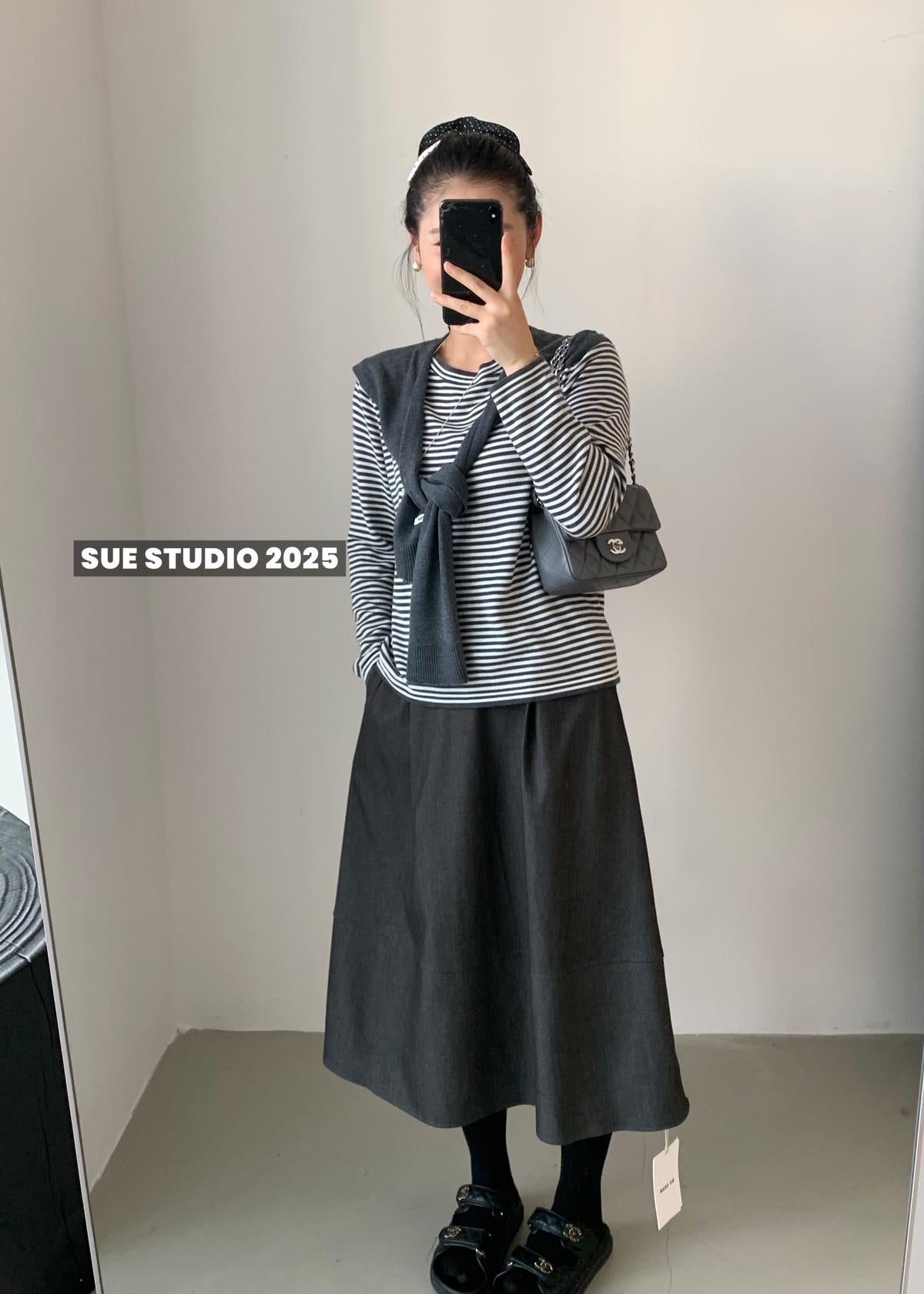 【C7525】高級感呢料鬆緊腰A字鬆緊腰半身裙(含10%羊毛)
