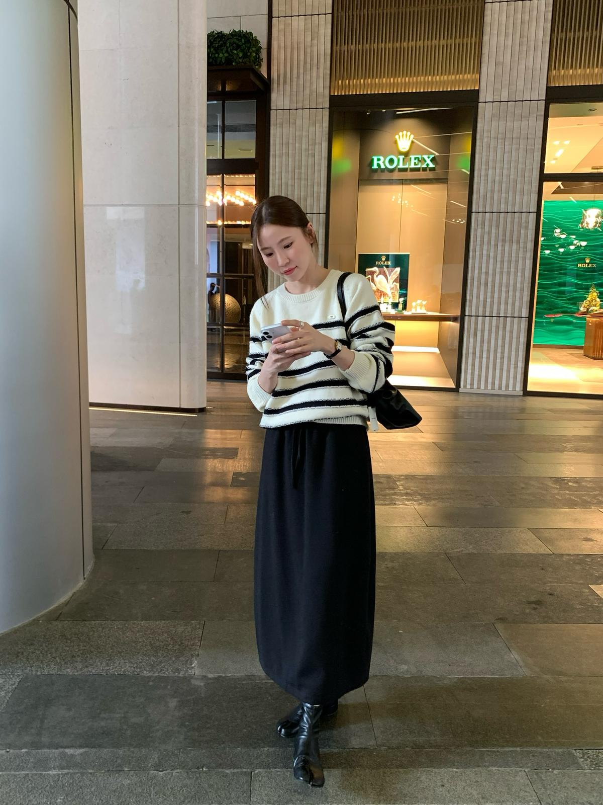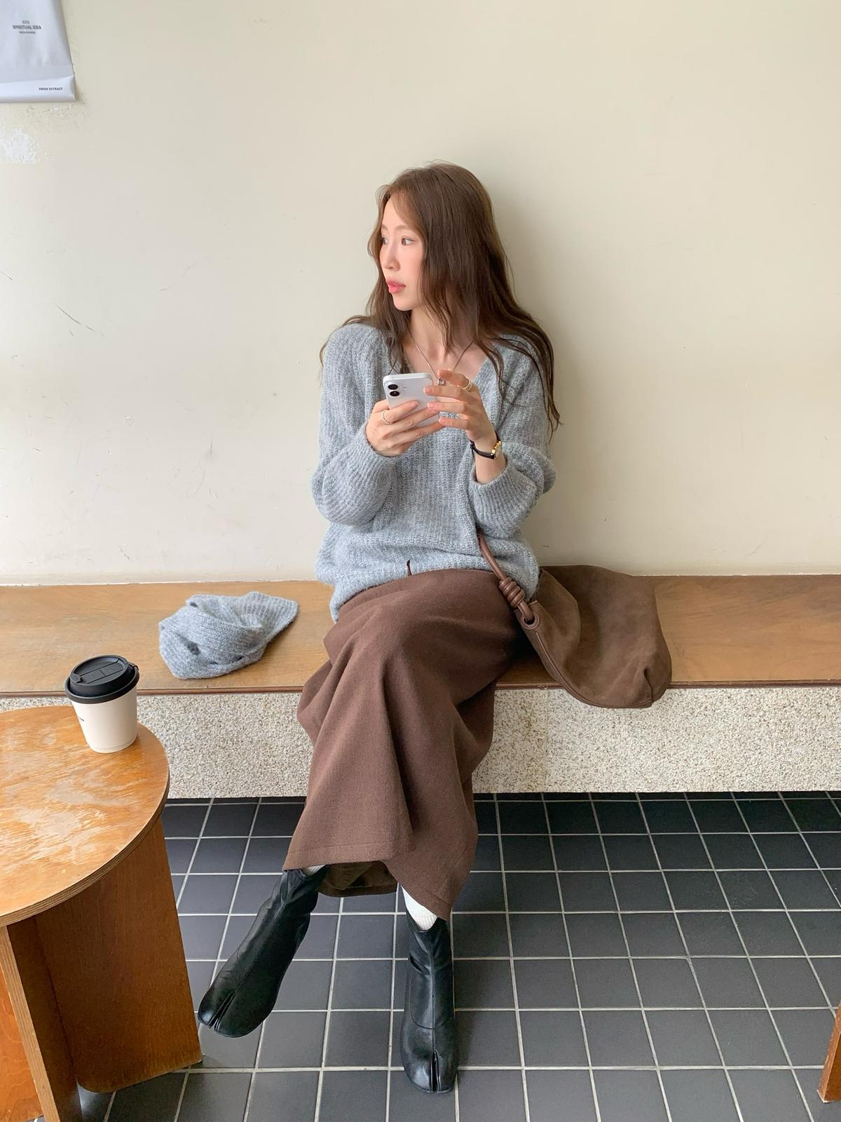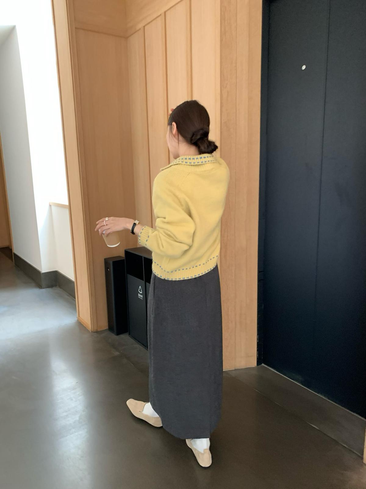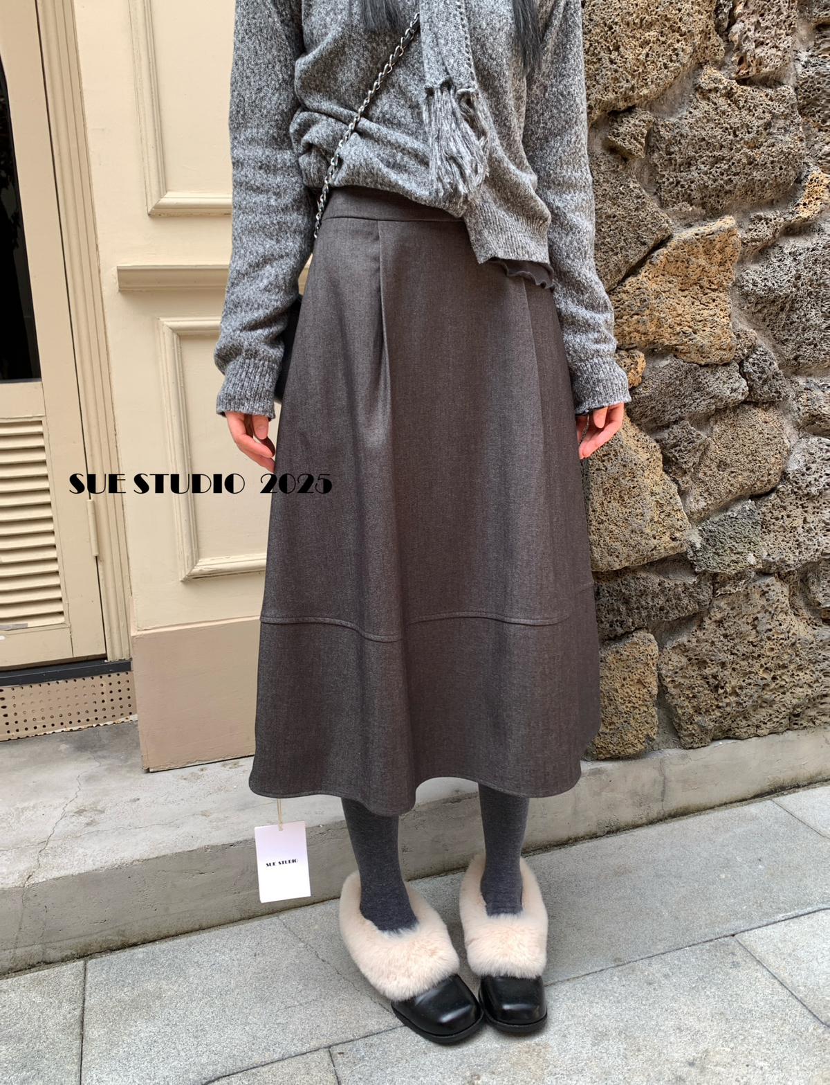 【C7525】高級感呢料鬆緊腰A字鬆緊腰半身裙(含10%羊毛)