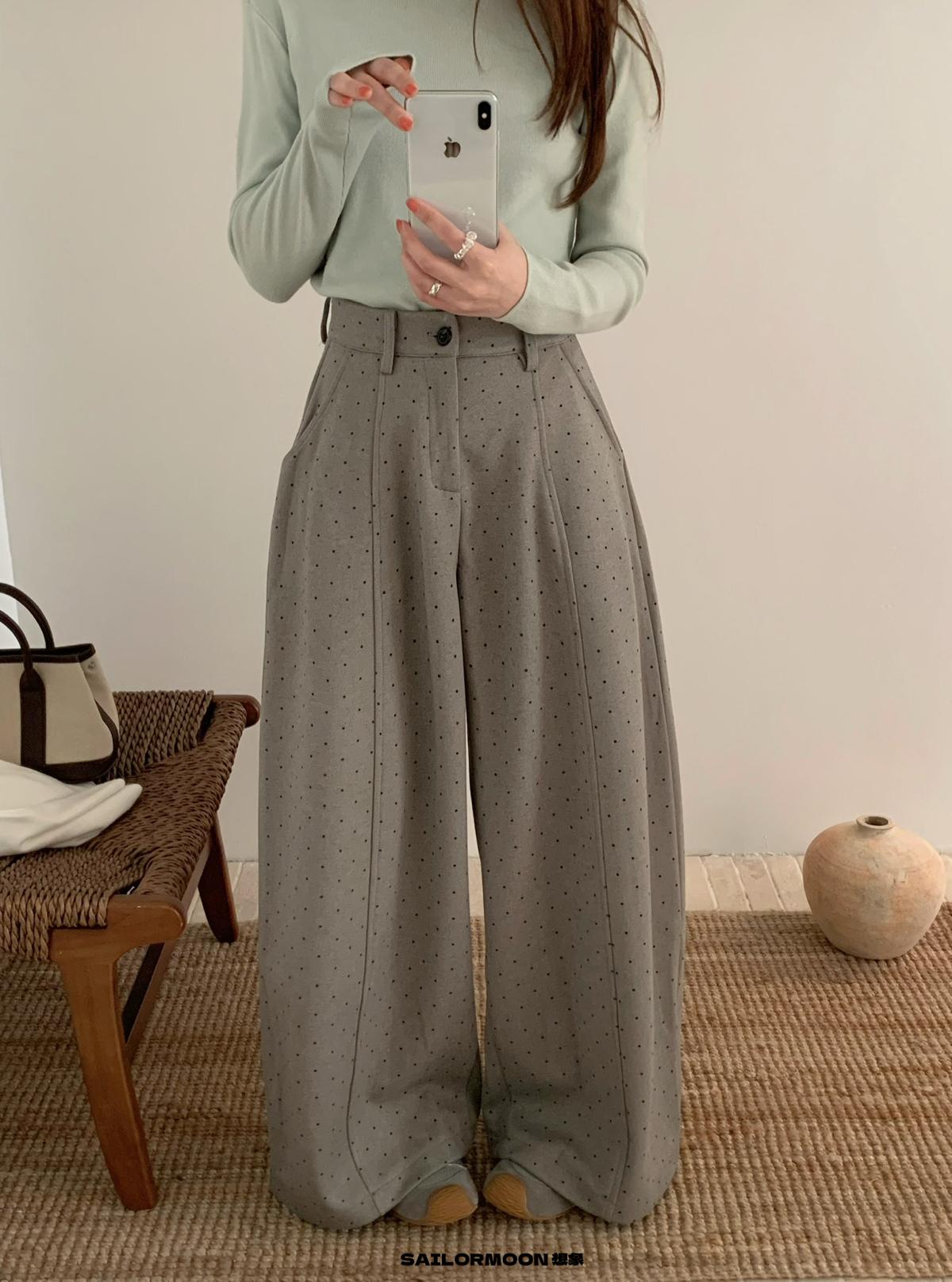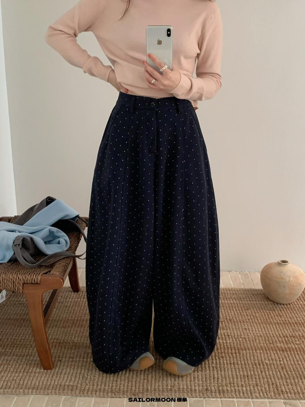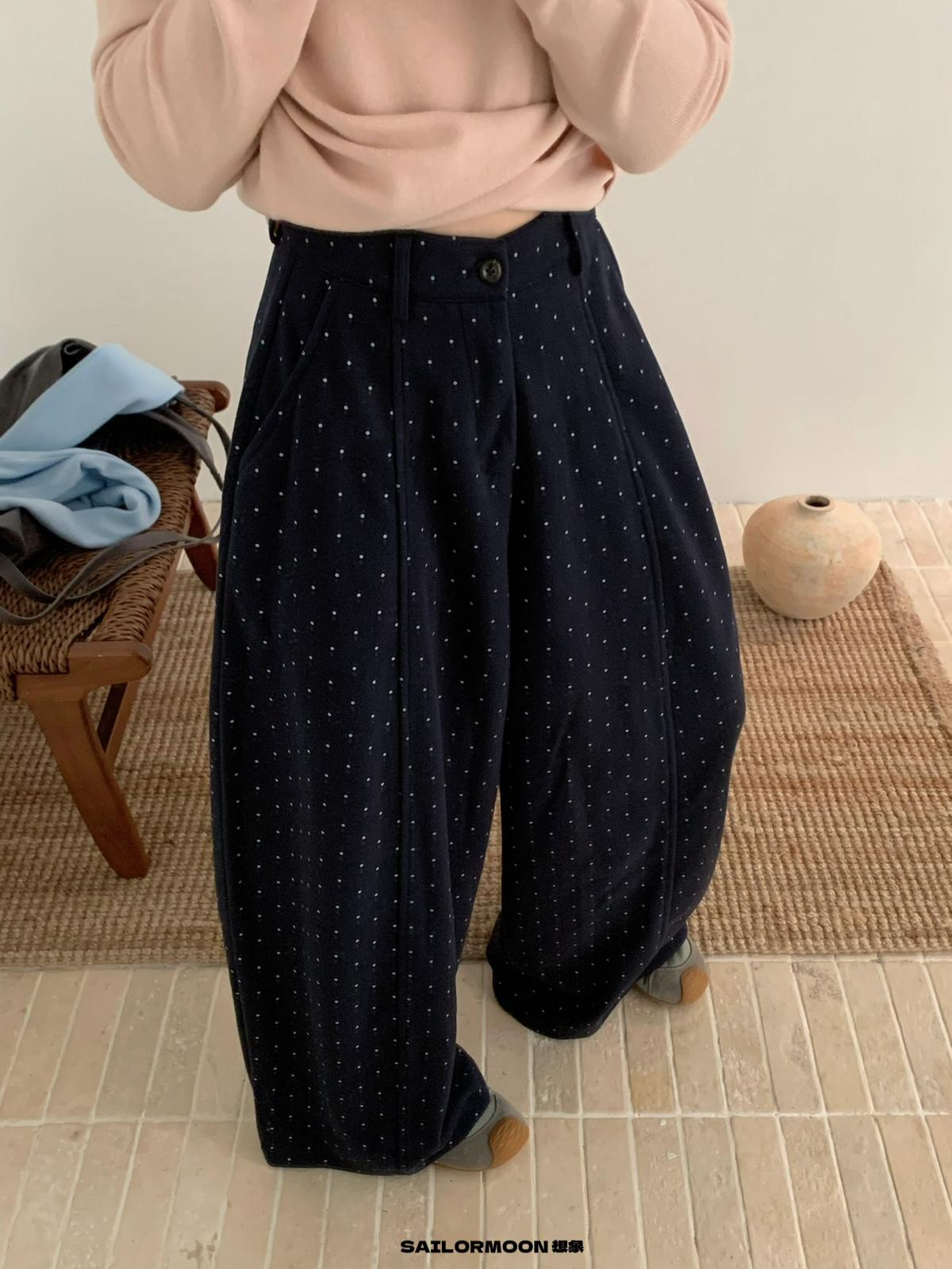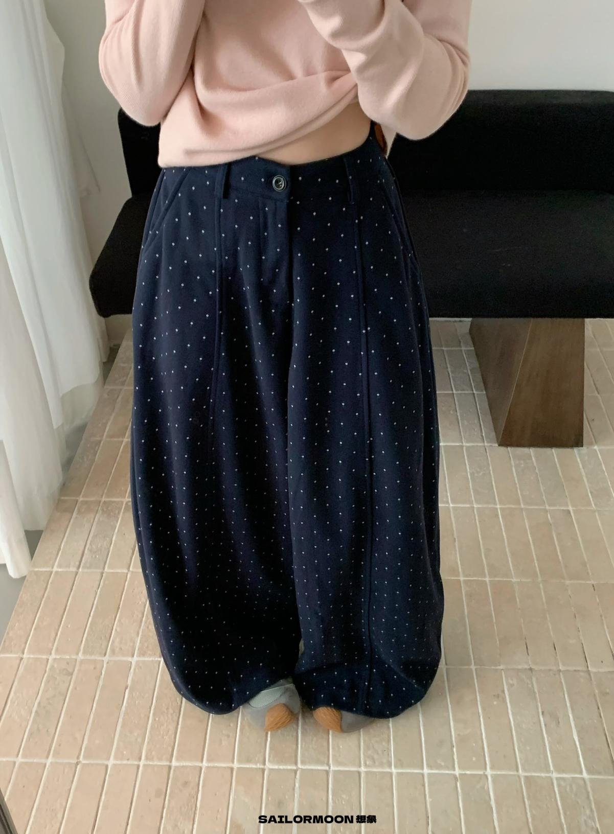 【C7523】簡約復古波點時尚休閒褲