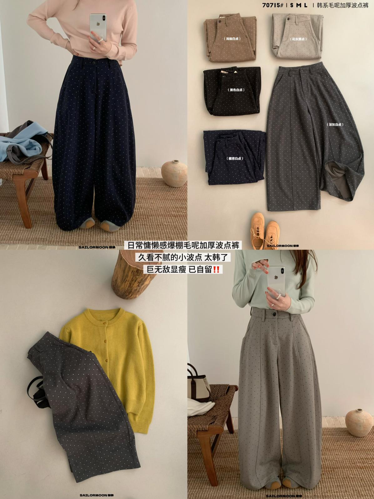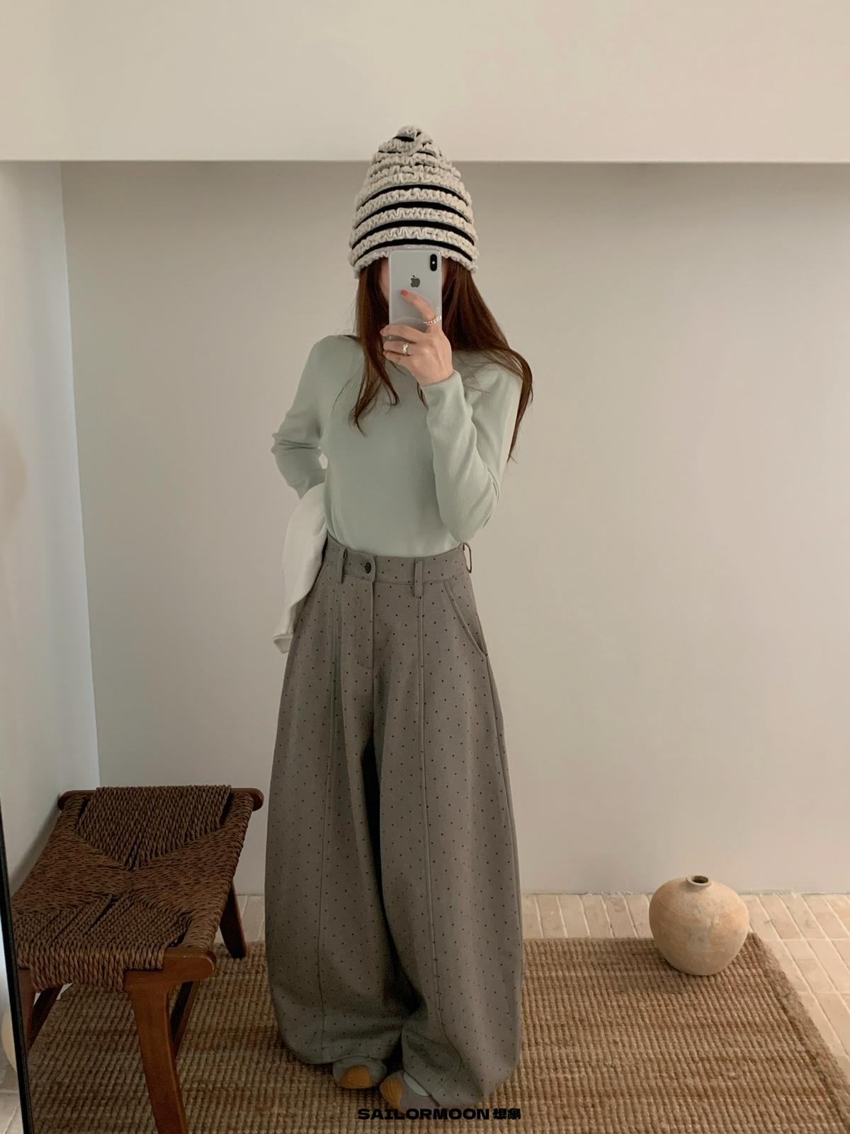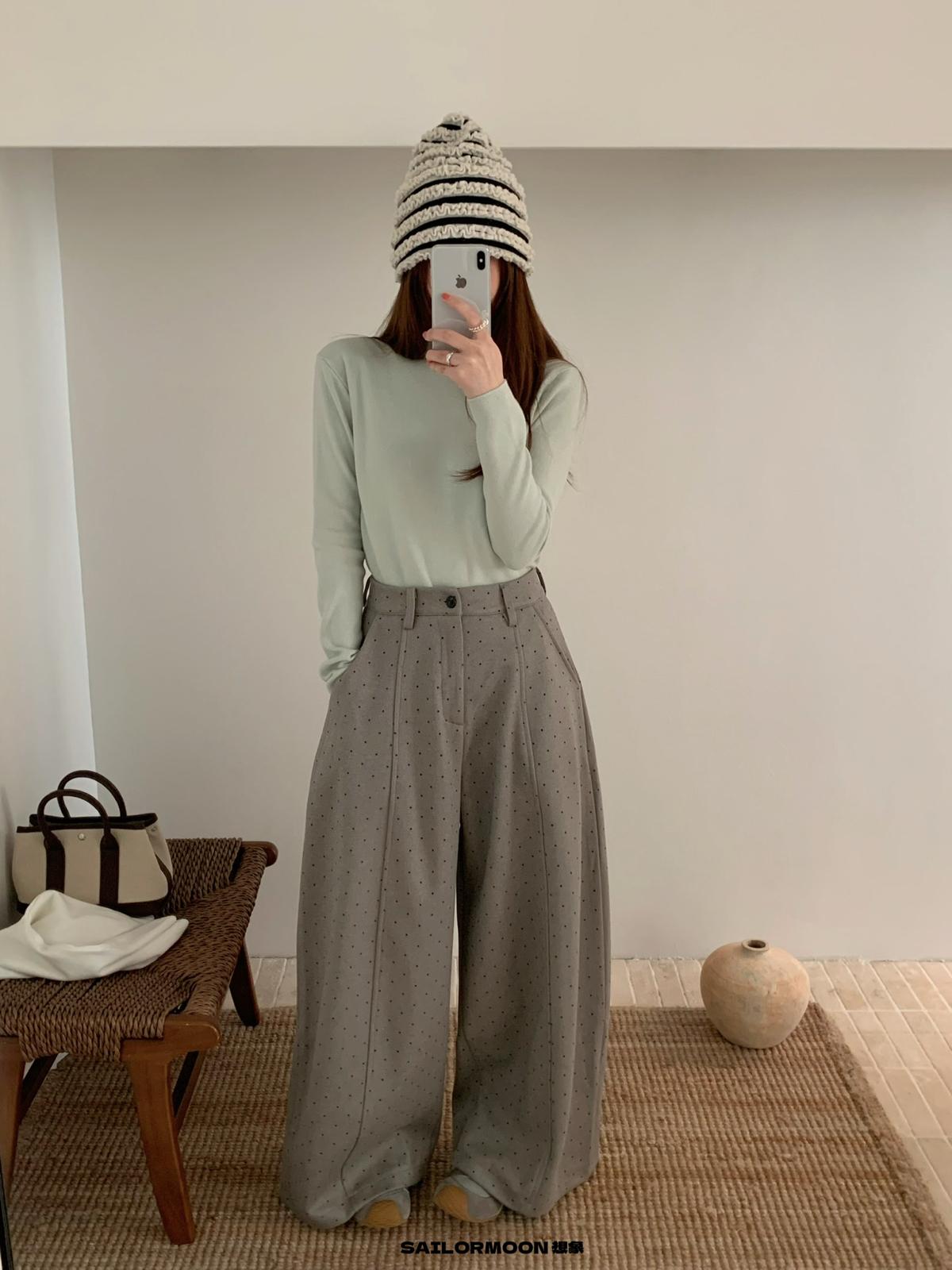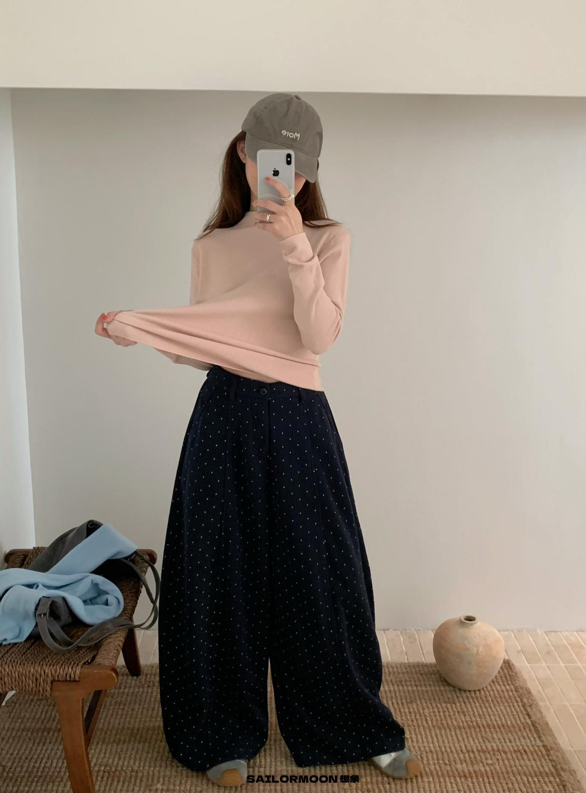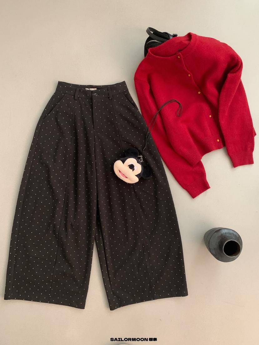 【C7523】簡約復古波點時尚休閒褲