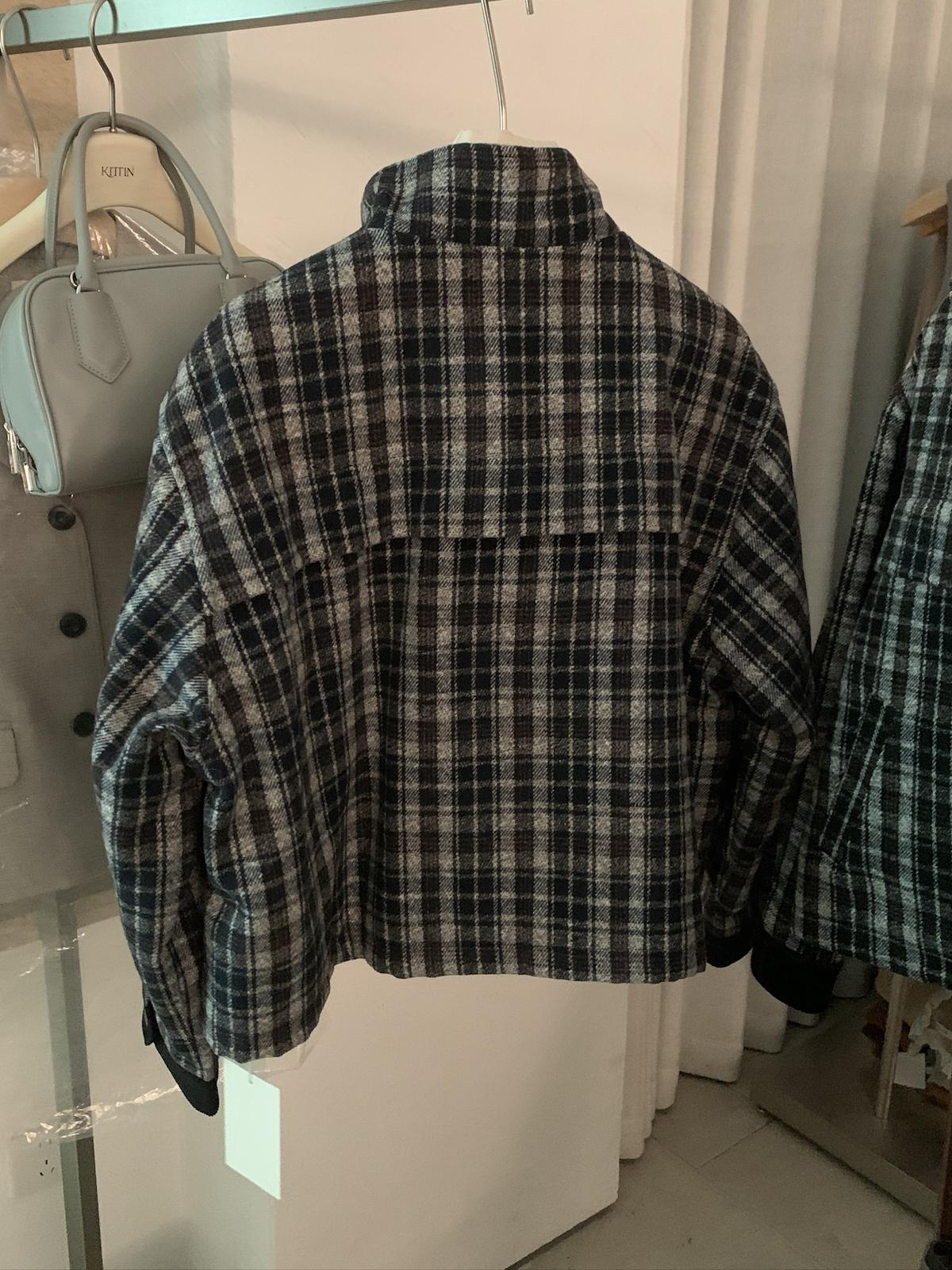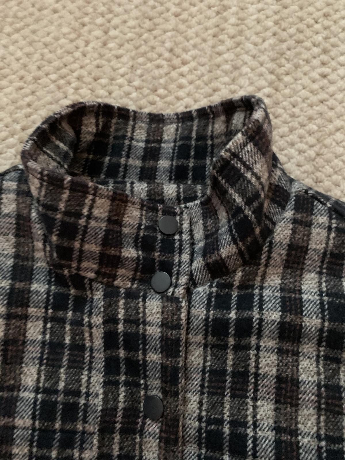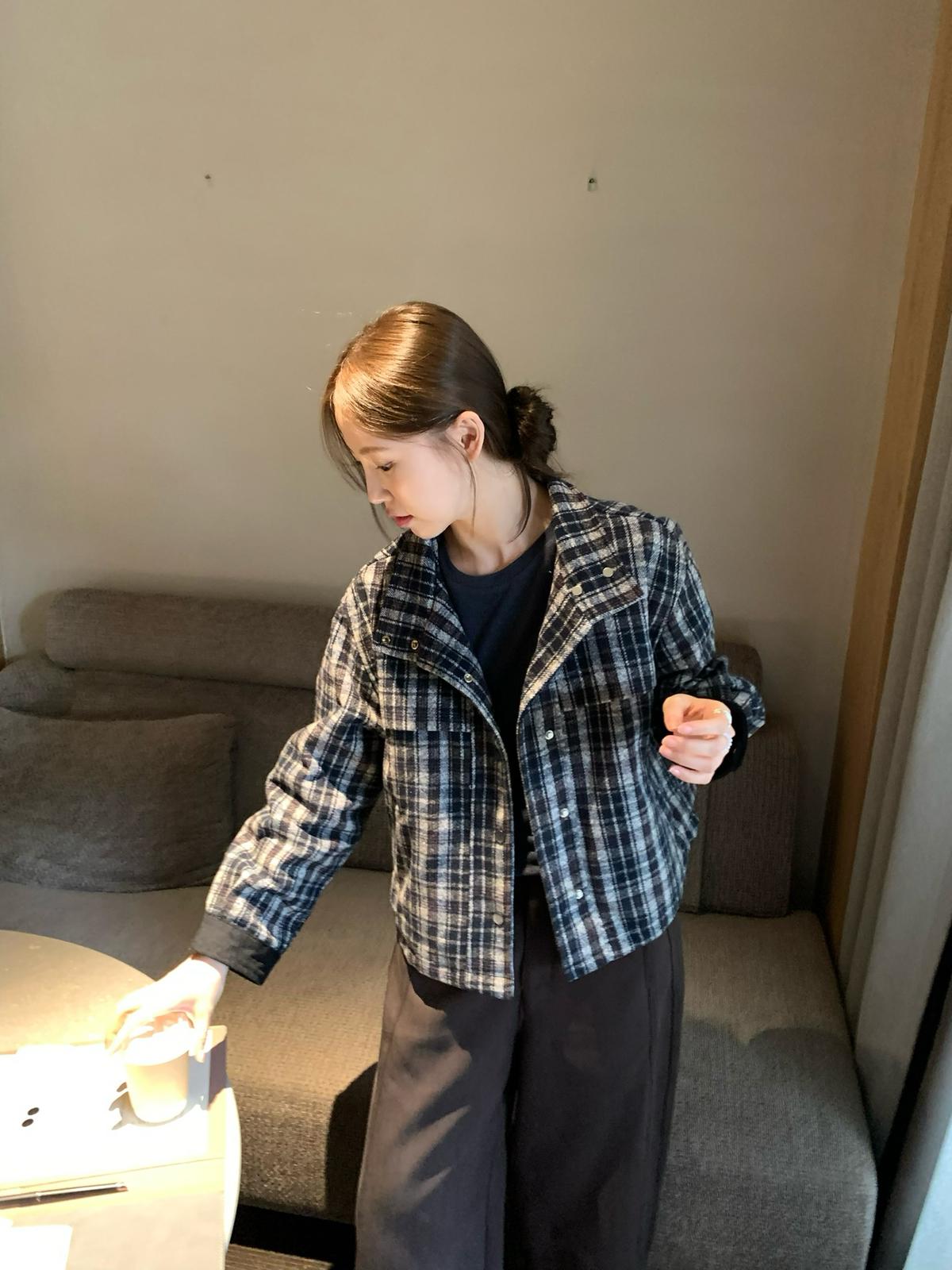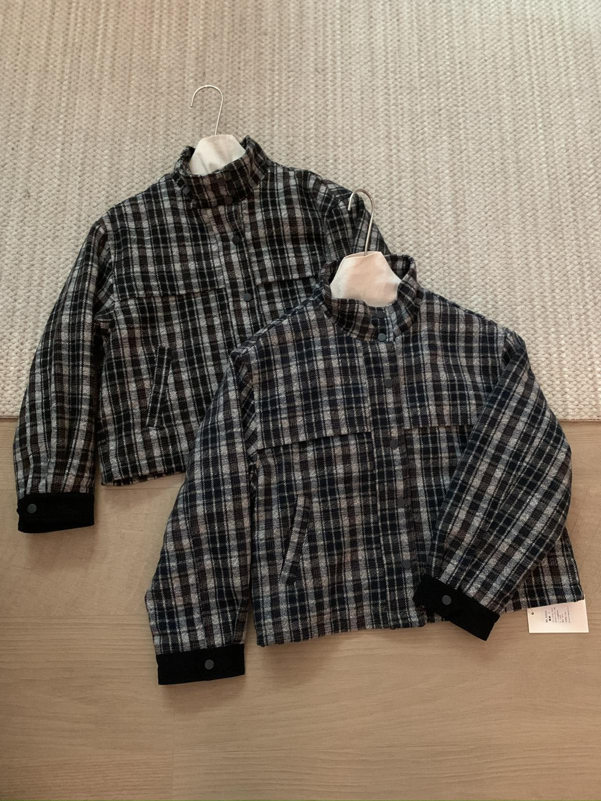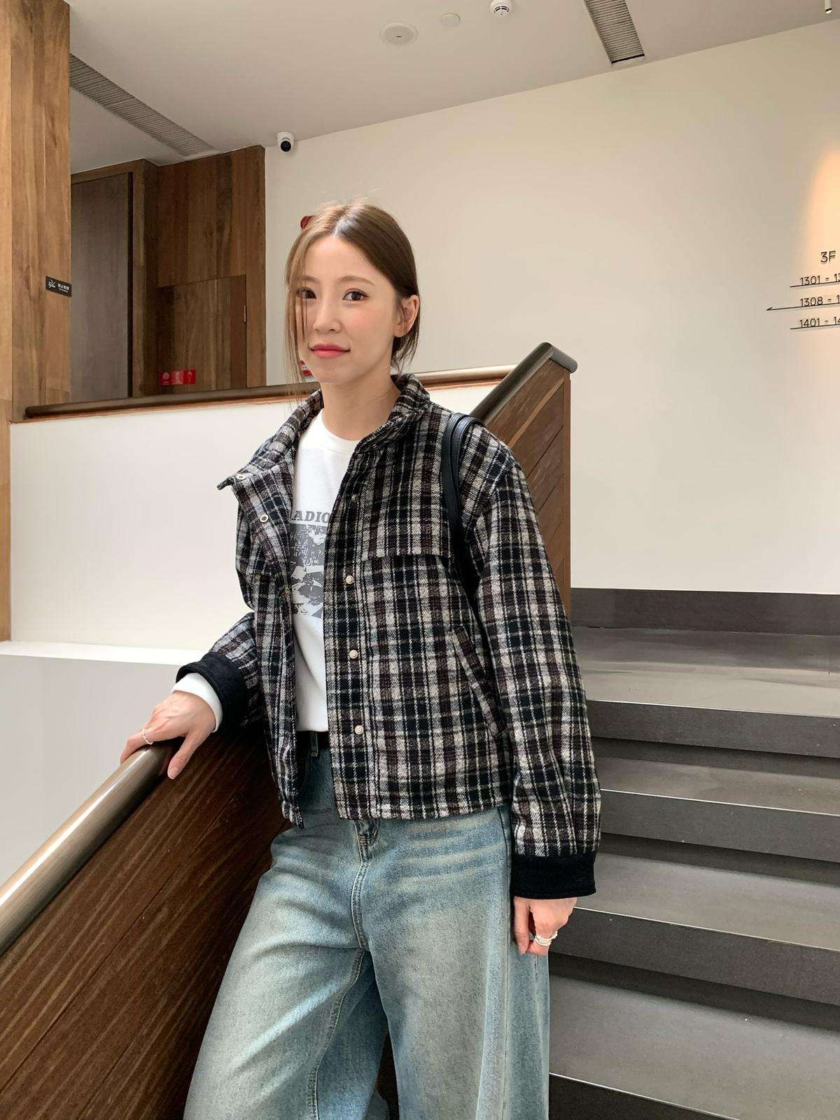 【C7531】復古休閒拼接撞色格紋設計感夾棉保暖棉服外套