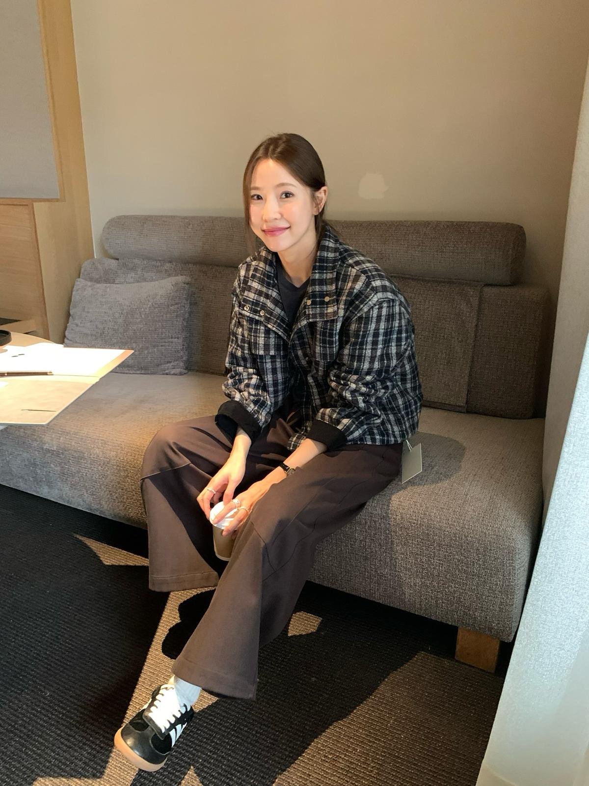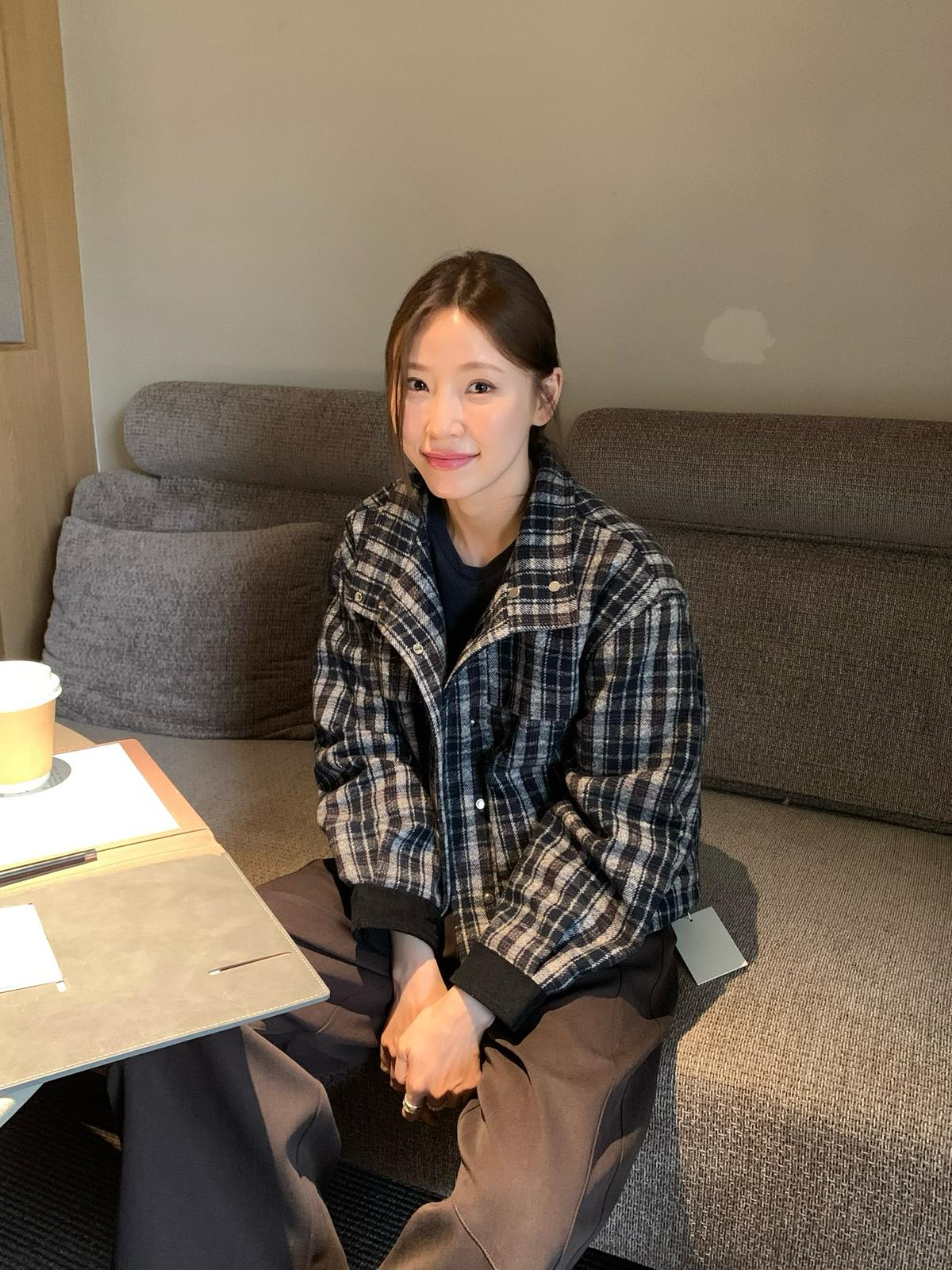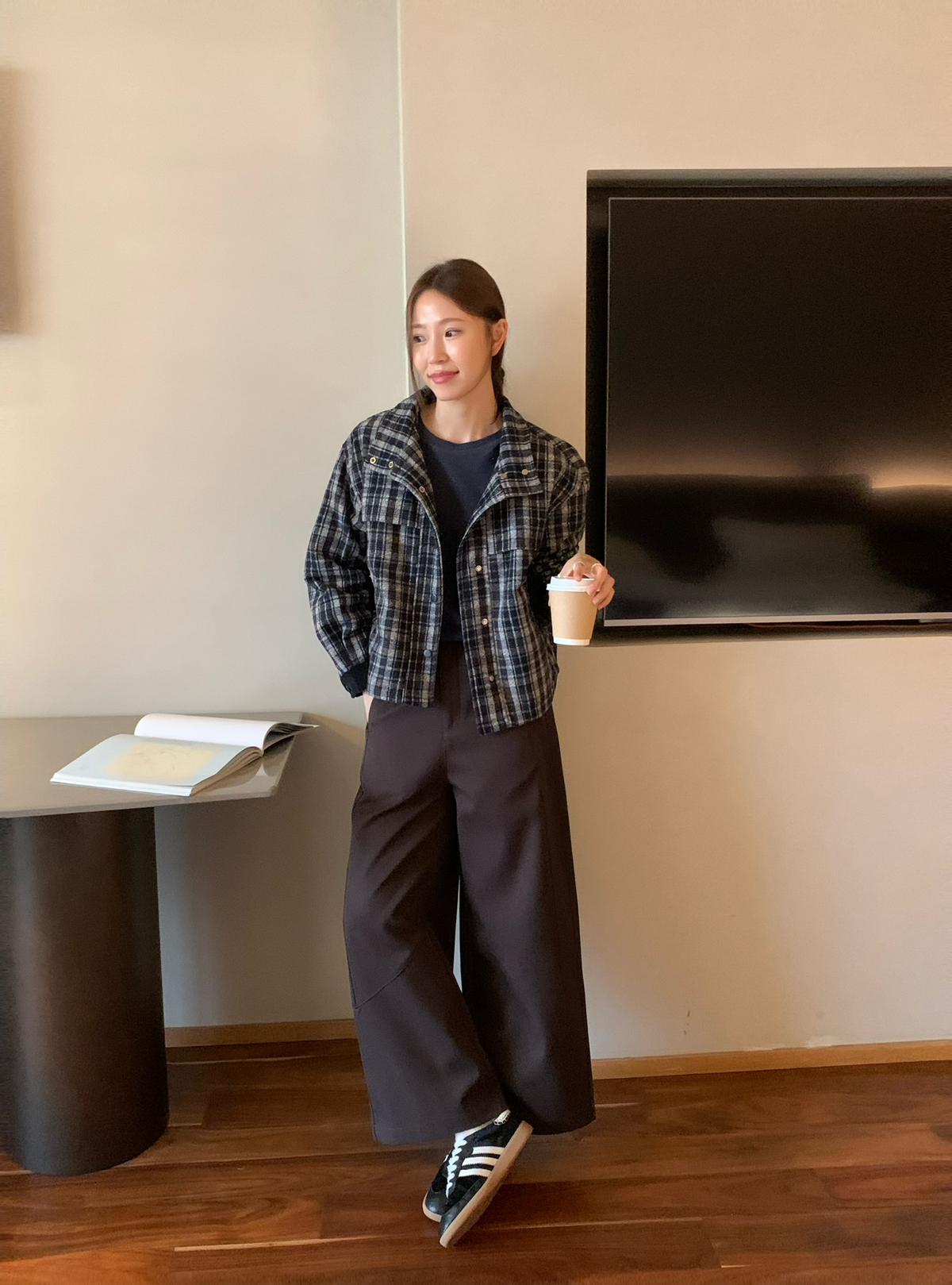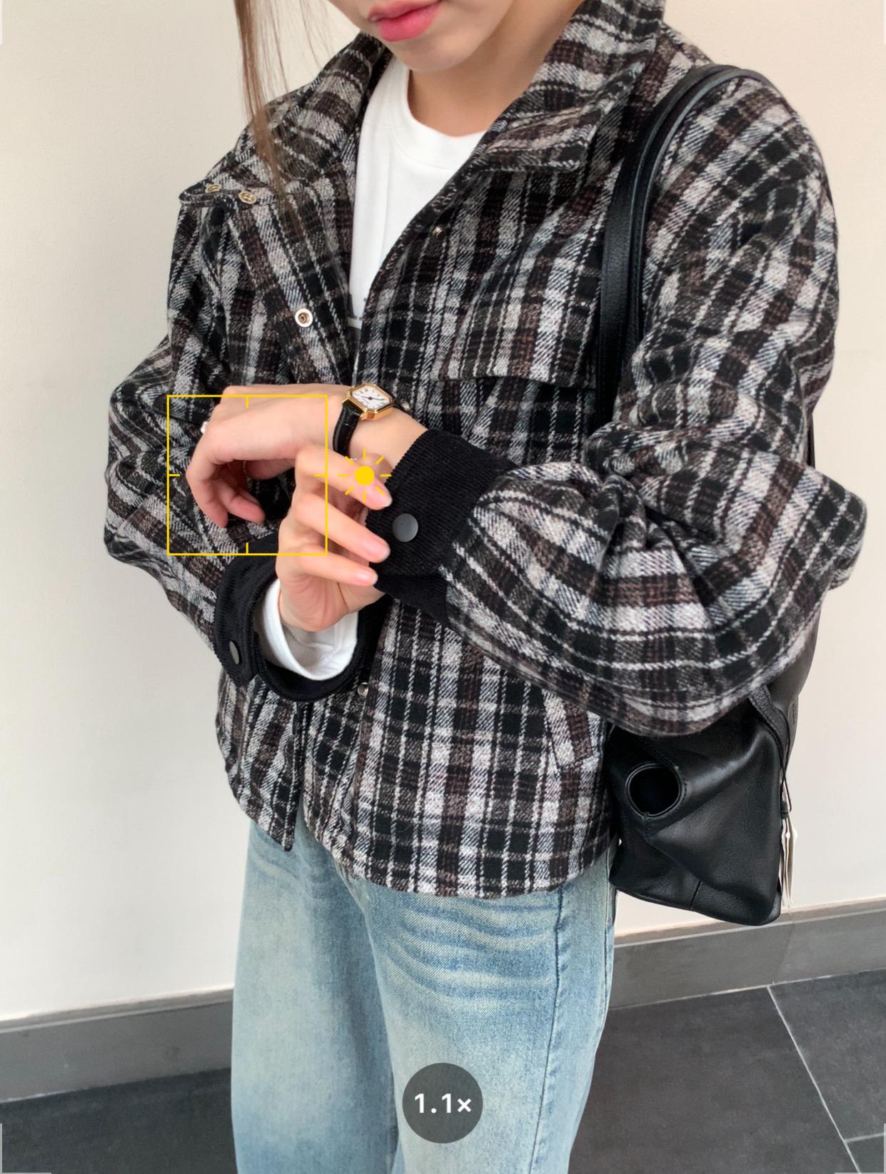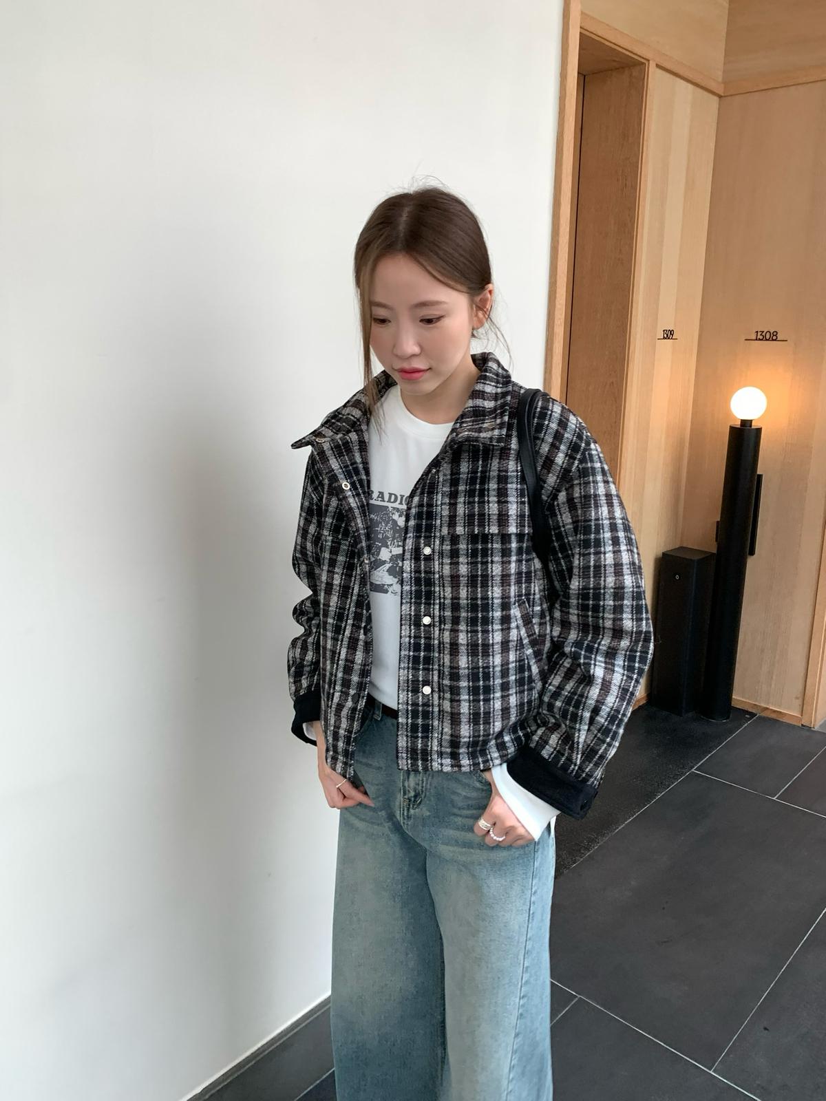 【C7531】復古休閒拼接撞色格紋設計感夾棉保暖棉服外套