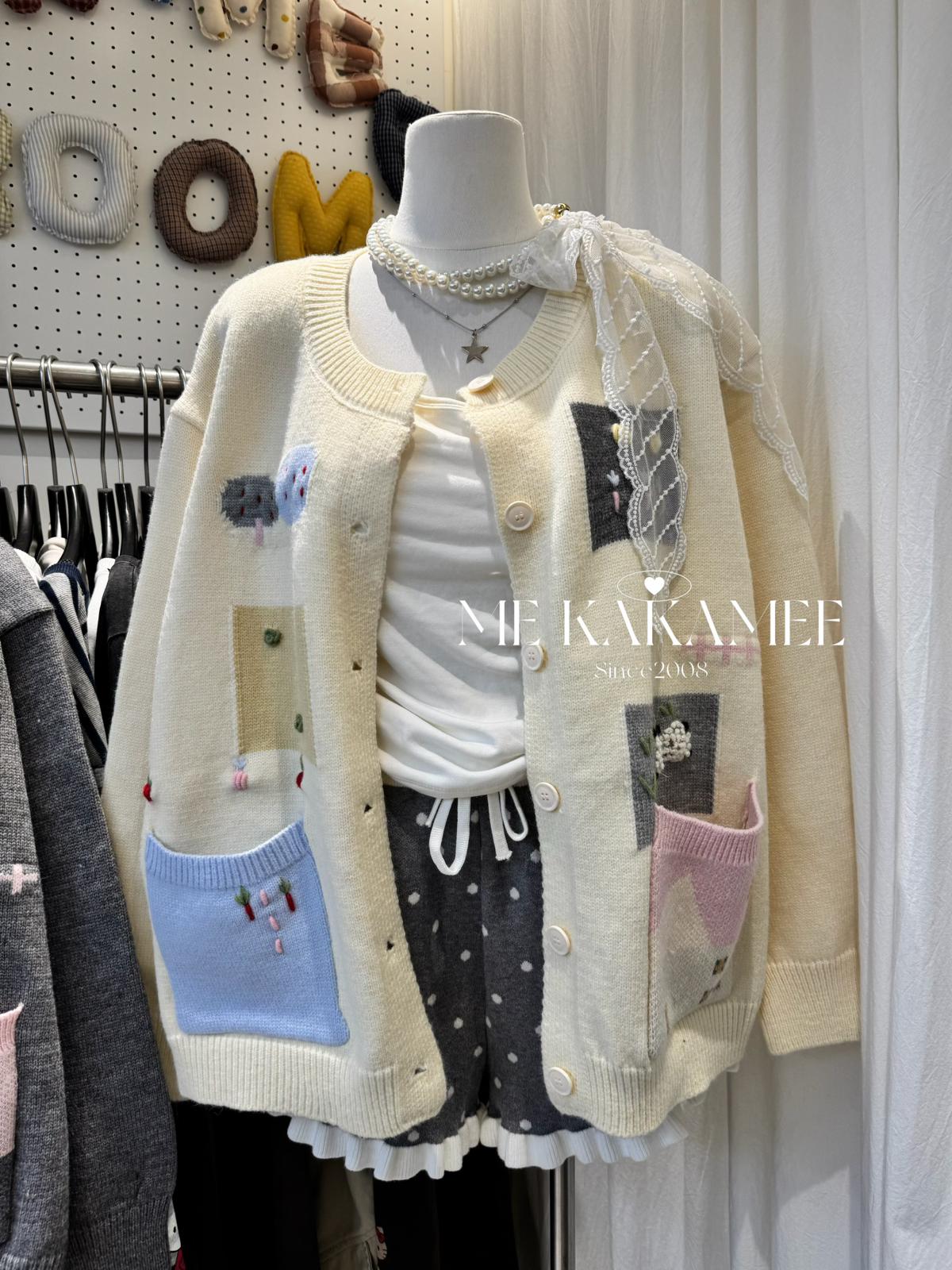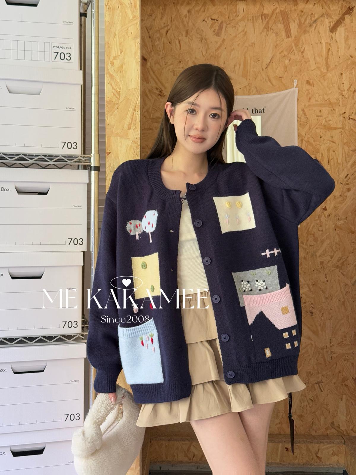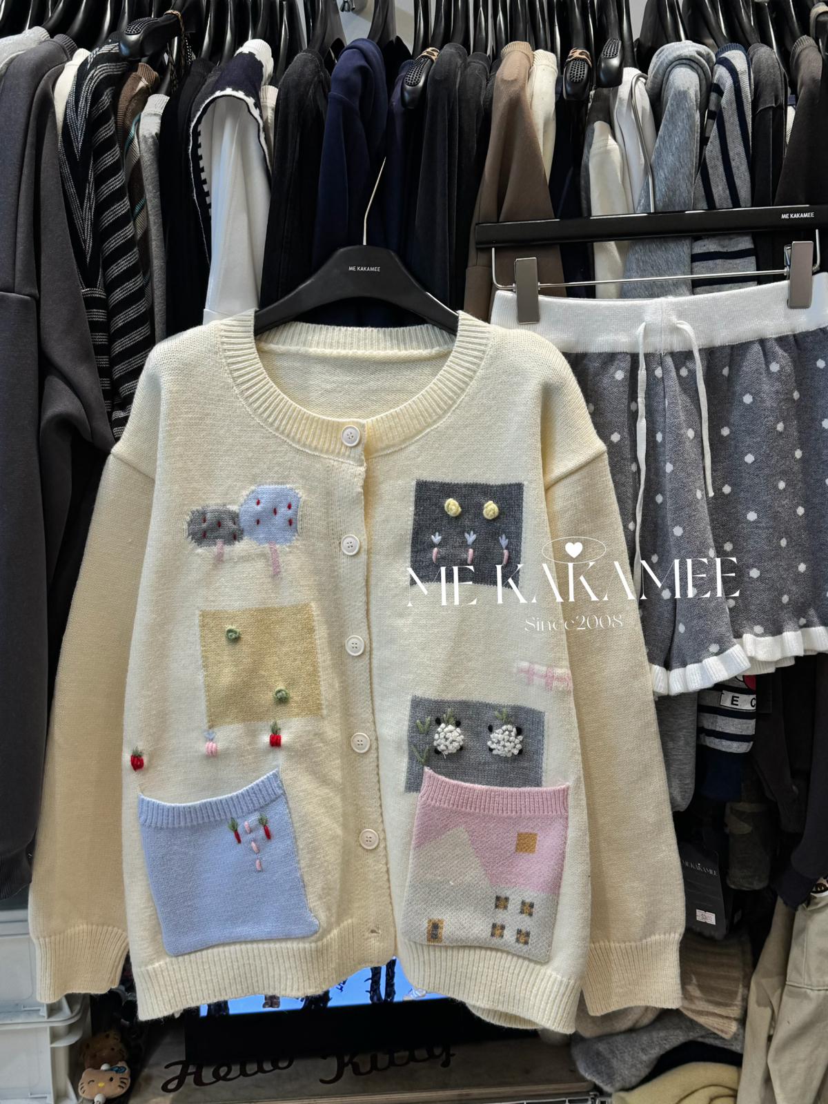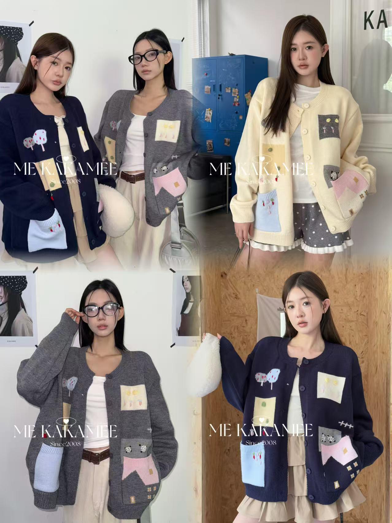 3. 【C7508】秋新品韓系甜美撞色立體提花寬鬆開衫保暖毛衣