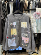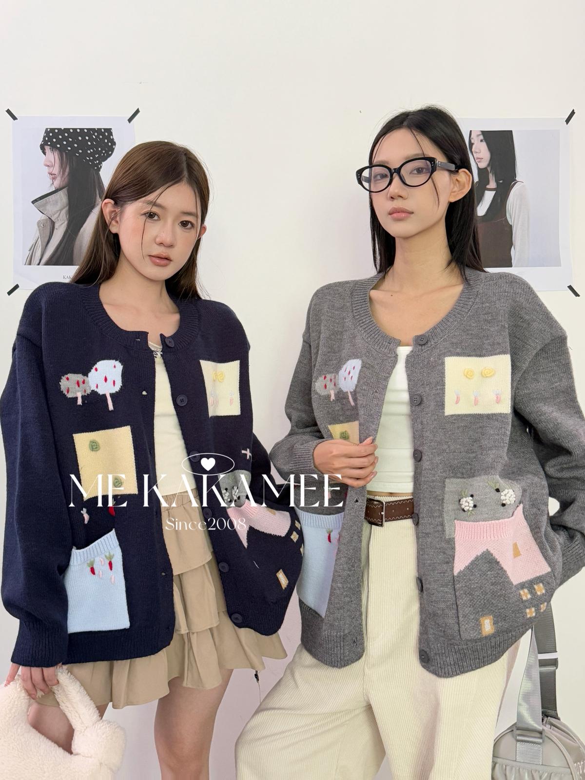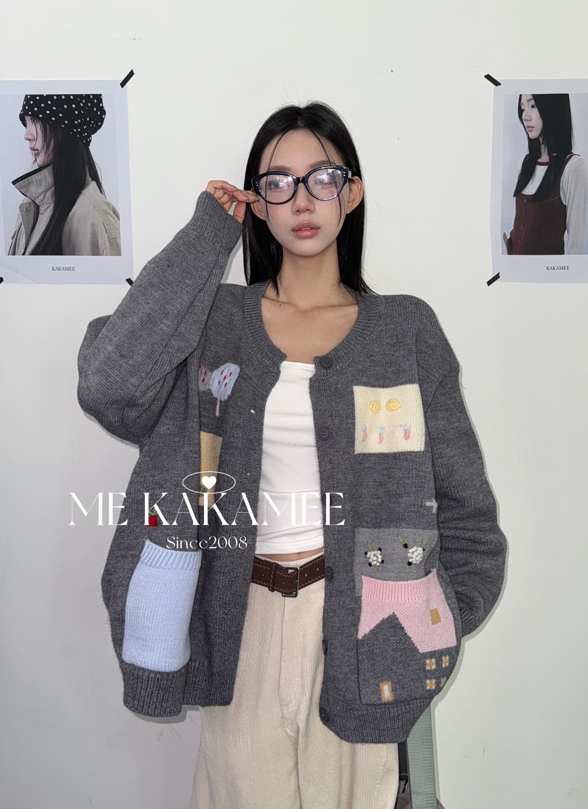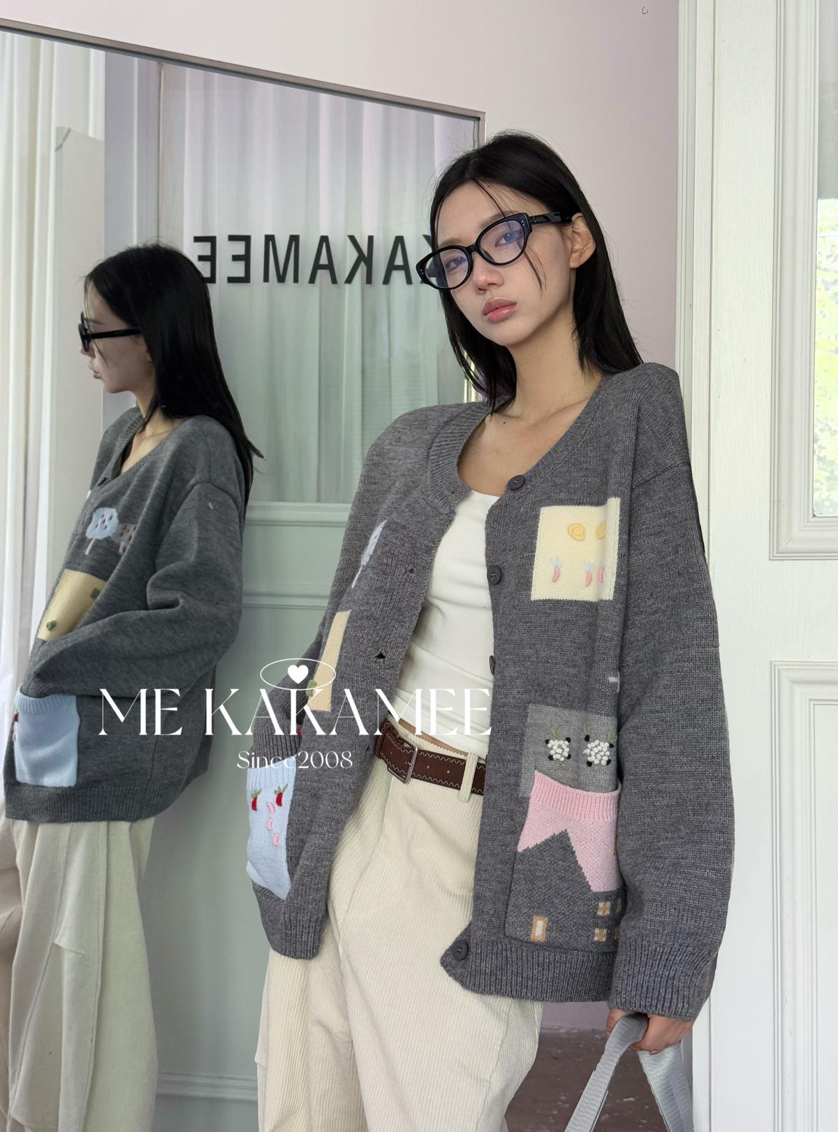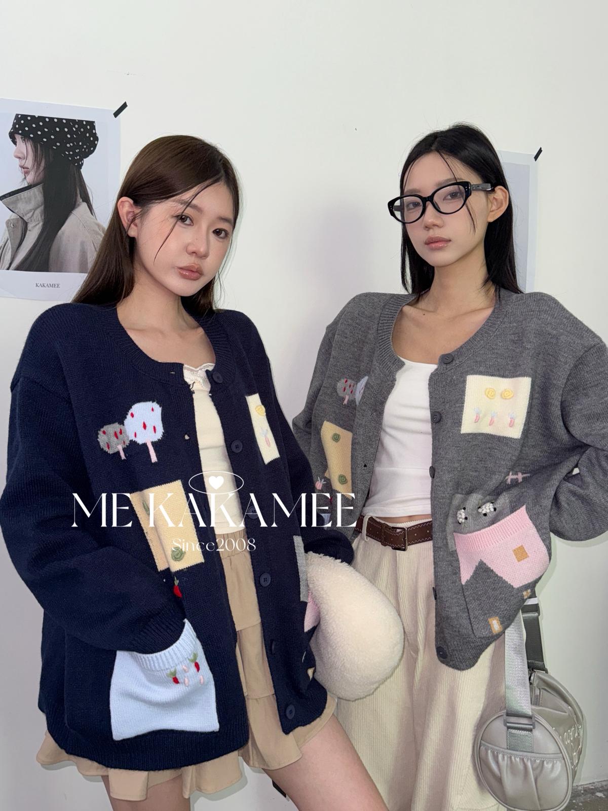 3. 【C7508】秋新品韓系甜美撞色立體提花寬鬆開衫保暖毛衣