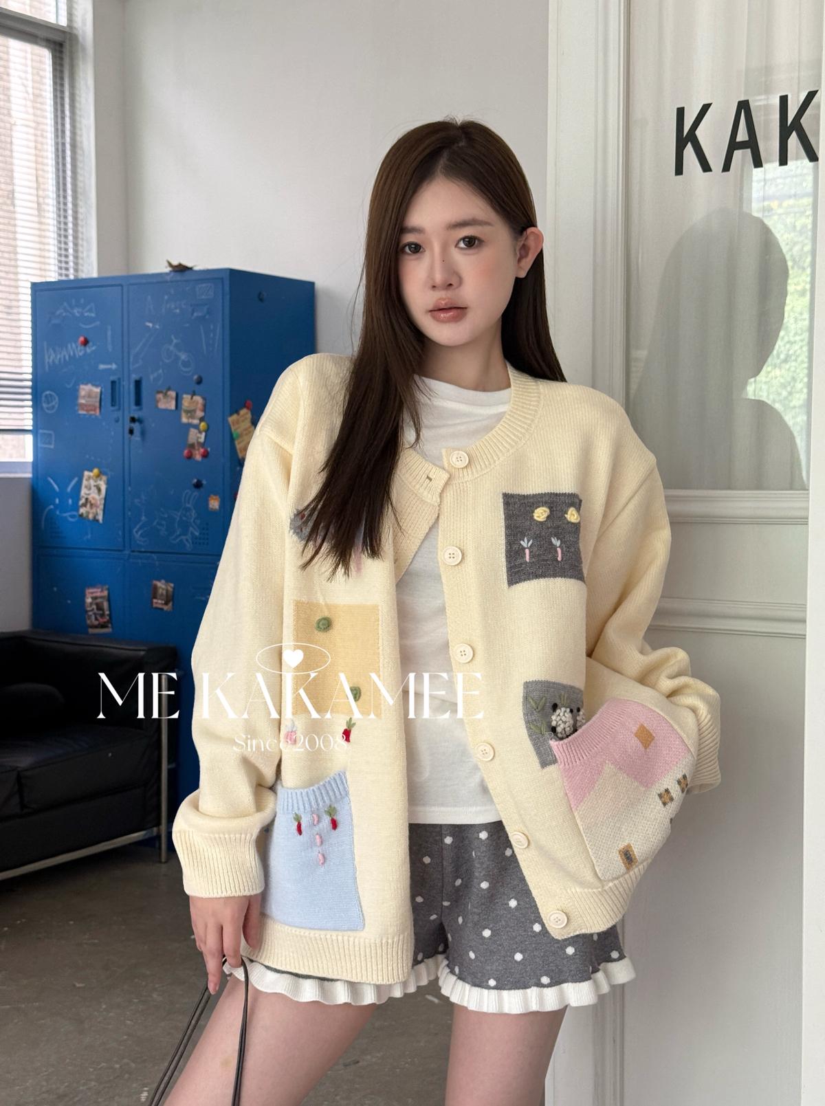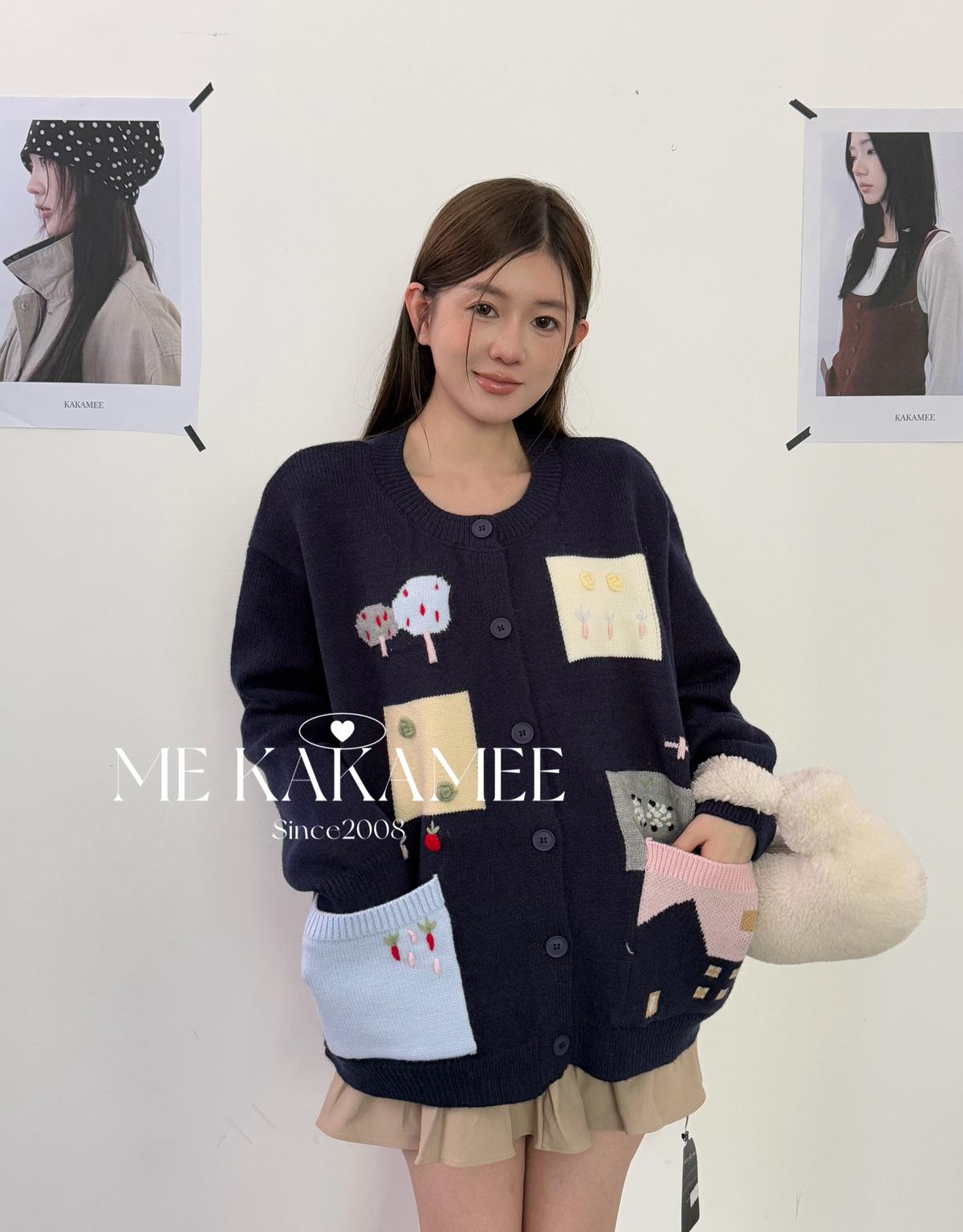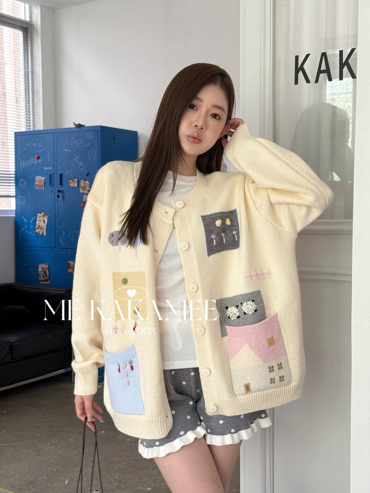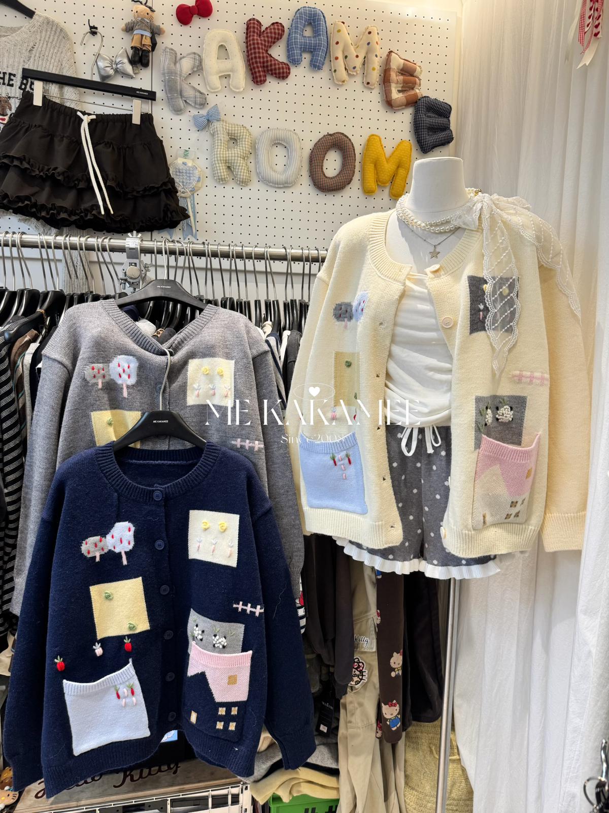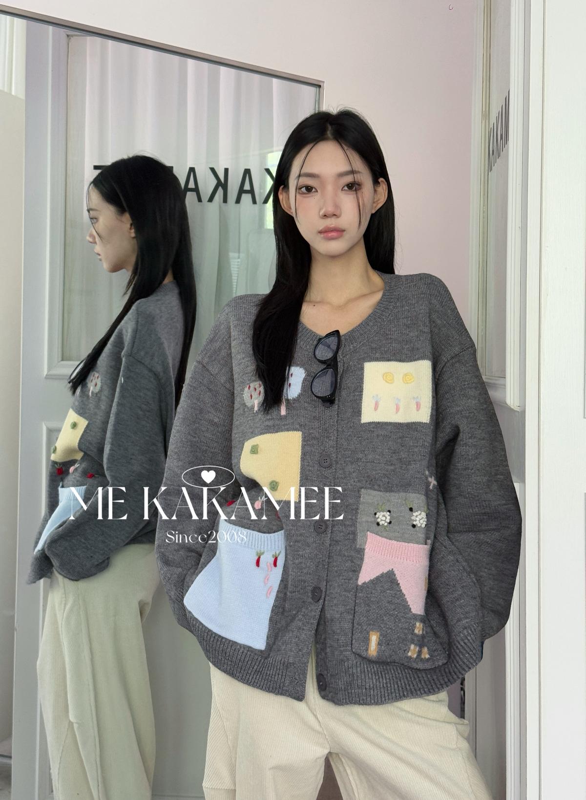 3. 【C7508】秋新品韓系甜美撞色立體提花寬鬆開衫保暖毛衣
