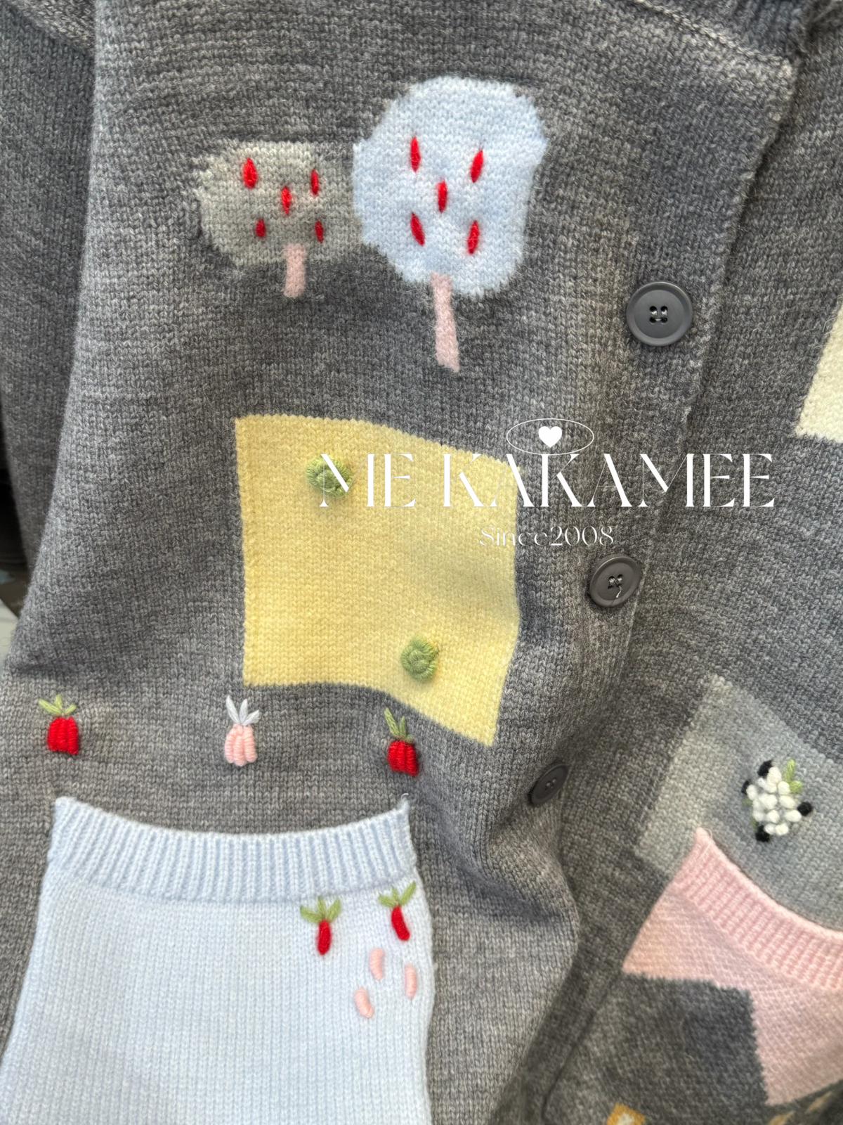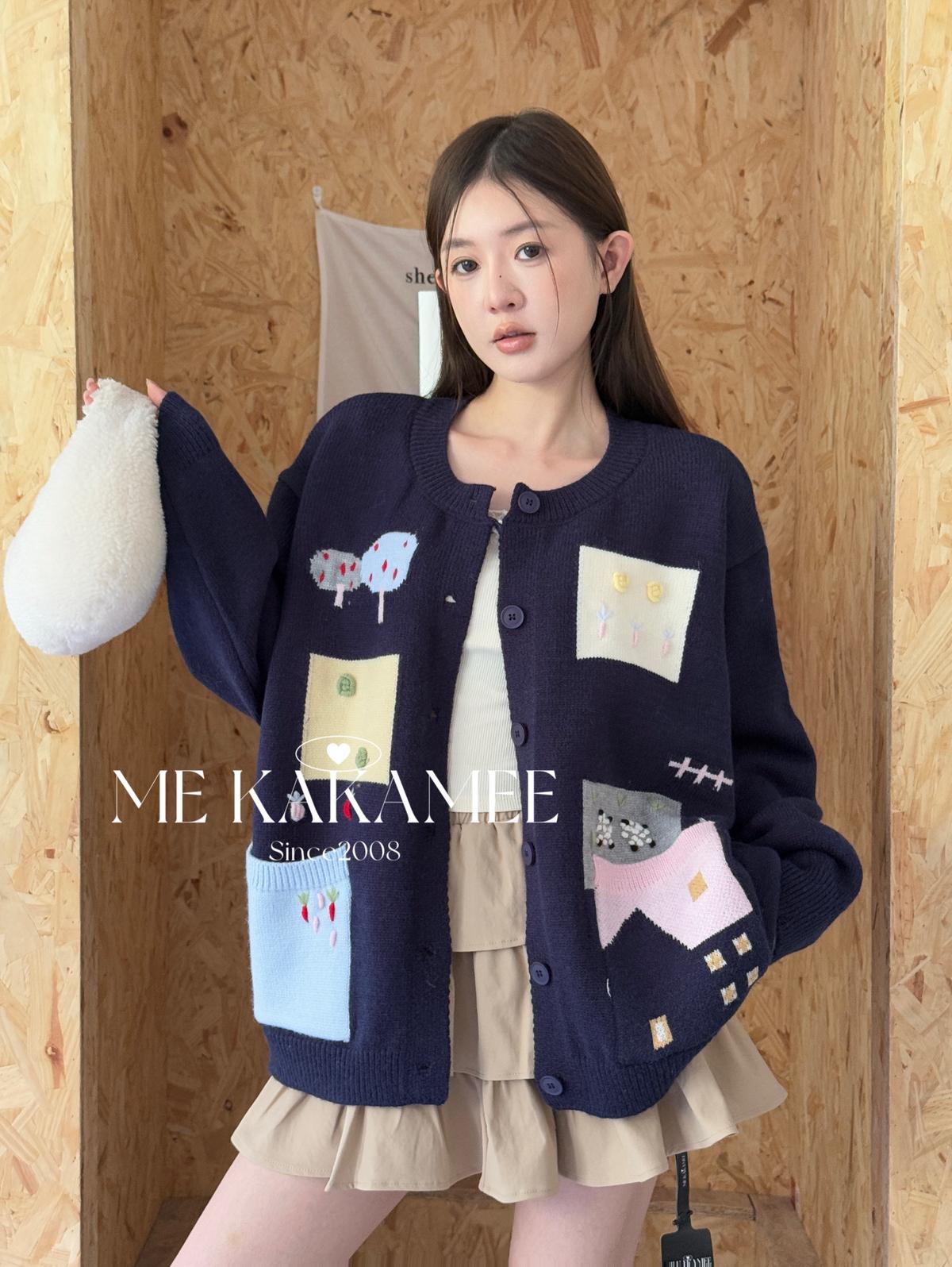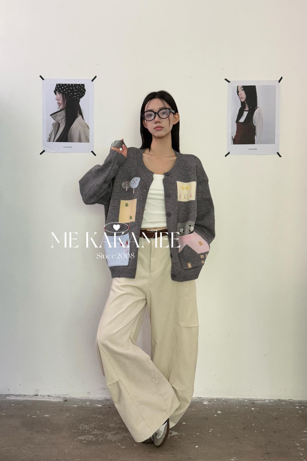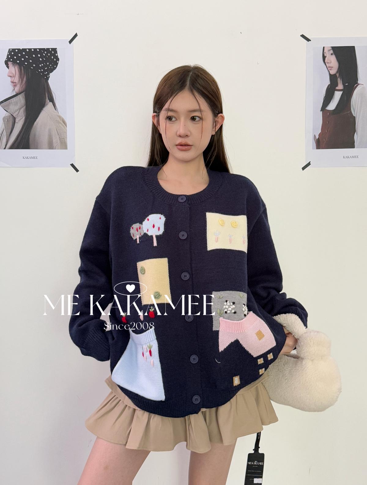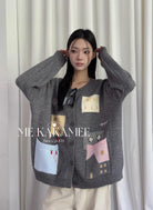 3. 【C7508】秋新品韓系甜美撞色立體提花寬鬆開衫保暖毛衣