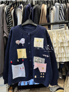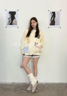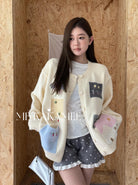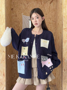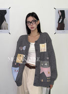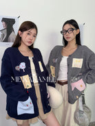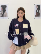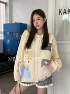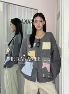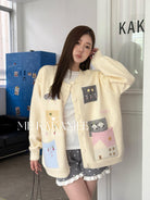 【C7508】秋新品韓系甜美撞色立體提花寬鬆開衫保暖毛衣