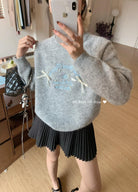 3. 【C7512】韓系圓領蝴蝶結套頭毛衣女秋新款慵懶風軟糯針織衫上衣保暖毛衣